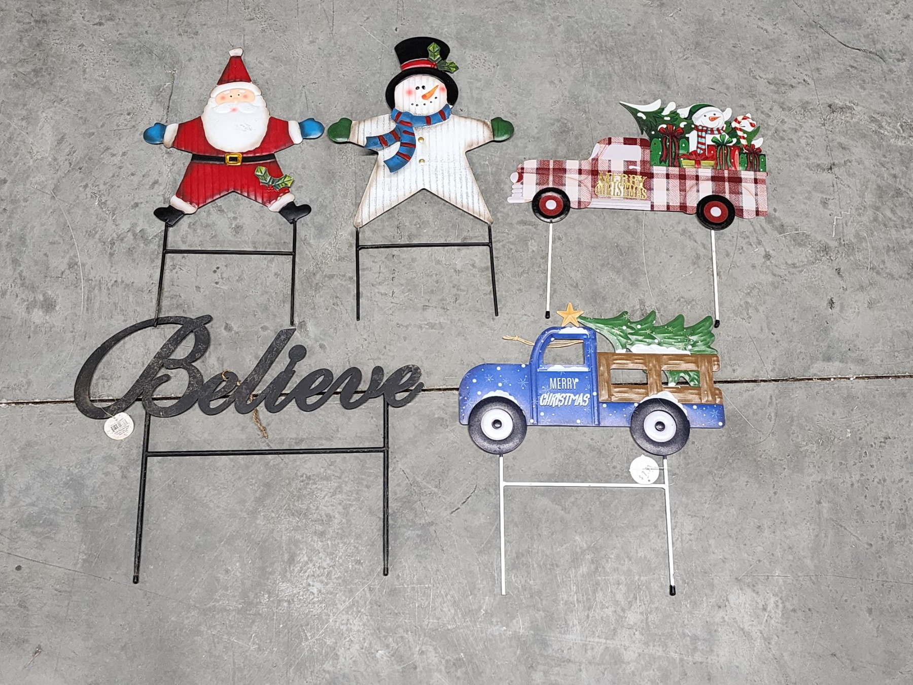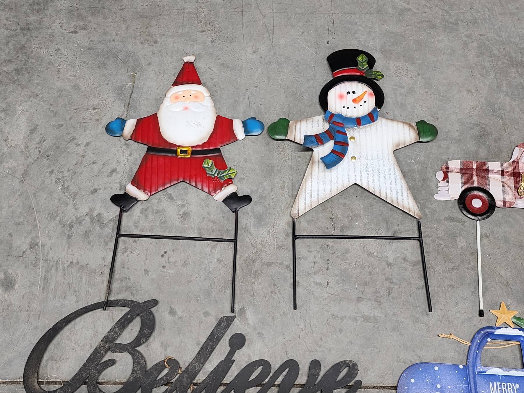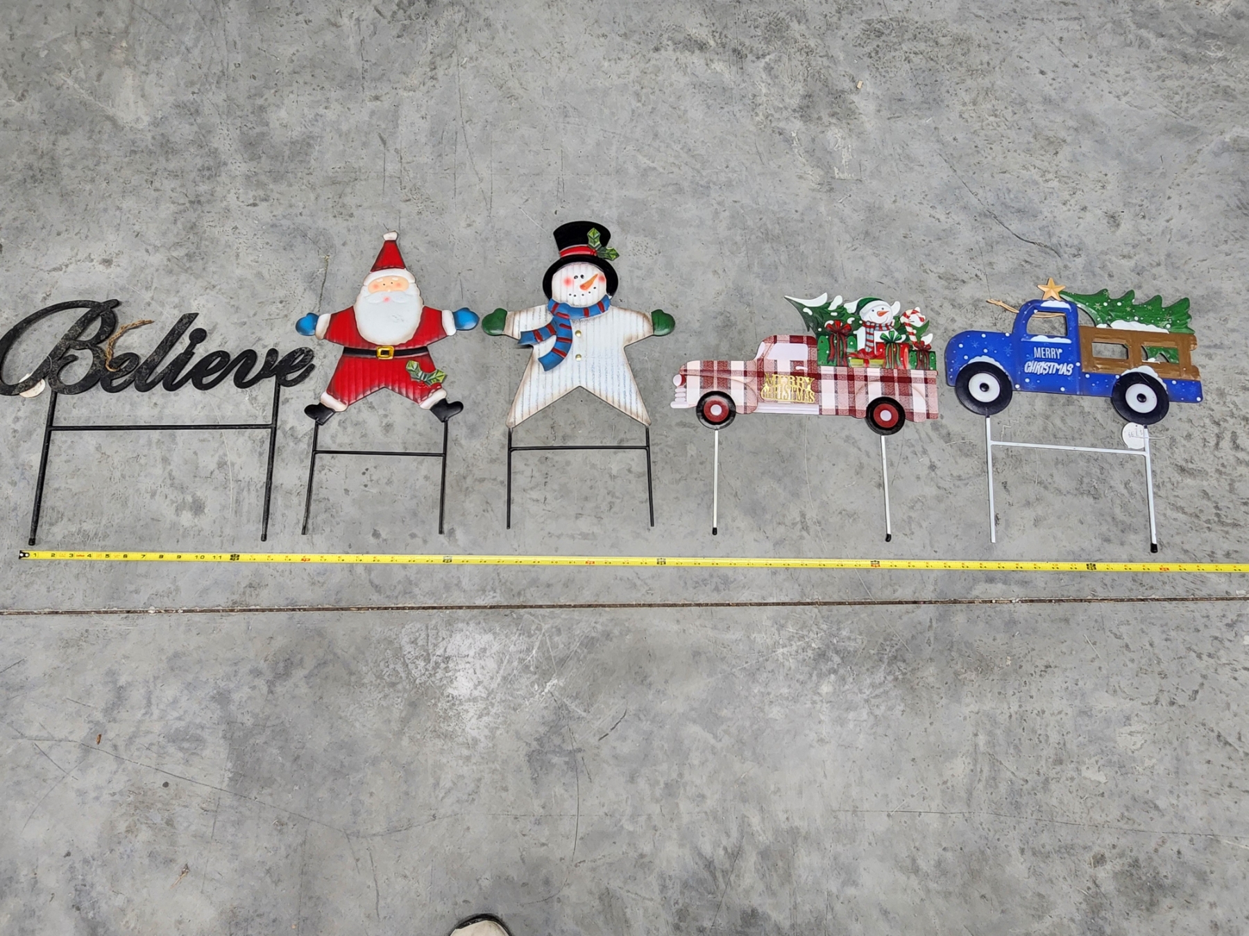 Lot of (5) Outdoor Christmas/Holiday Metal Signs/Stakes - See Photos/Description for Details!
