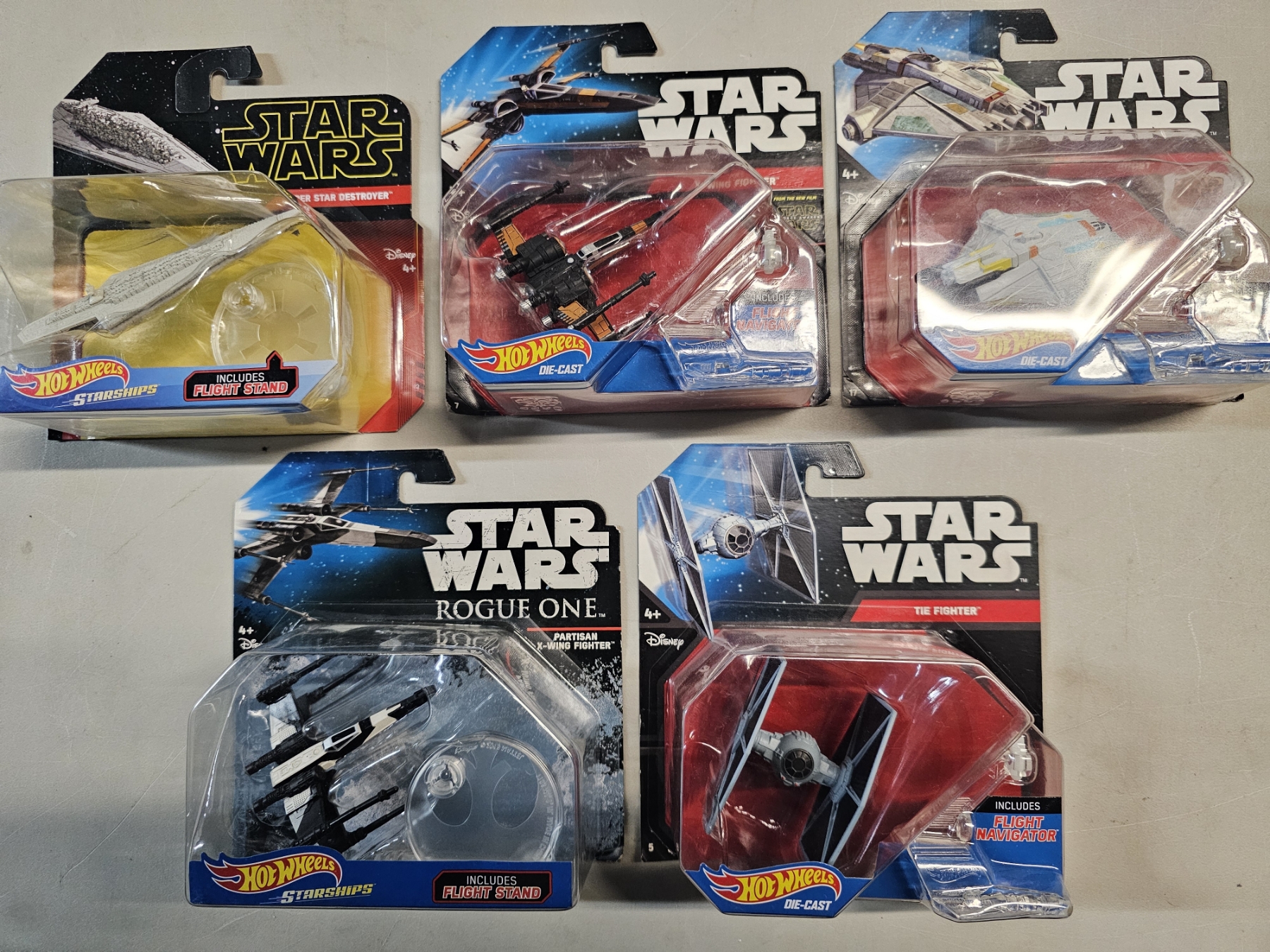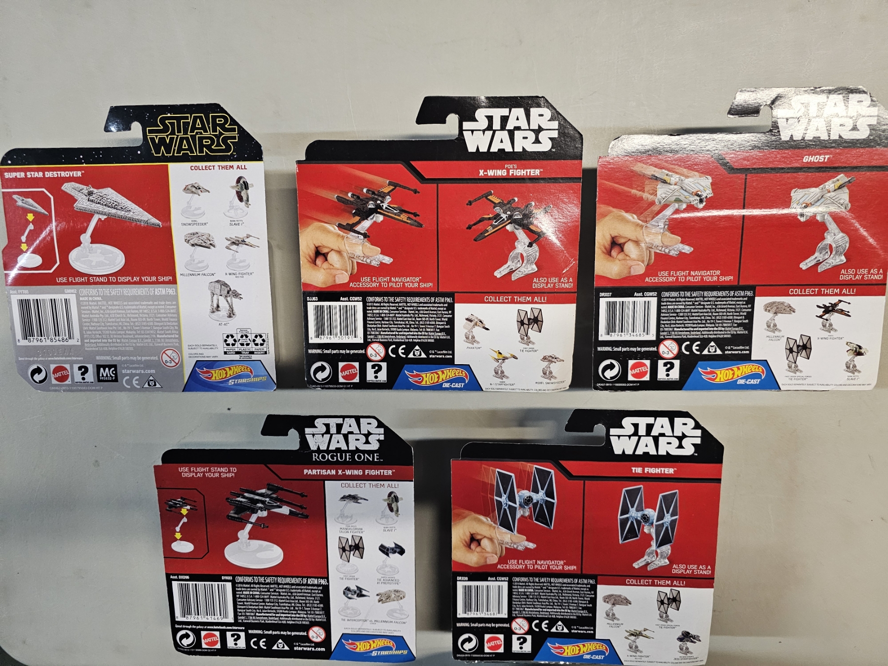 Lot of (5) Star Wars Aerial Vehicle Figures, Hot Wheels Brand, Package Dimensions 7x6, Figure Dimensions Vary