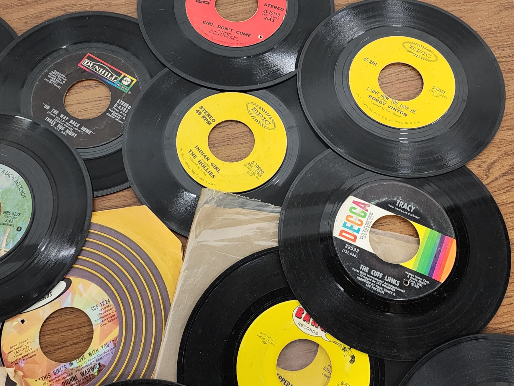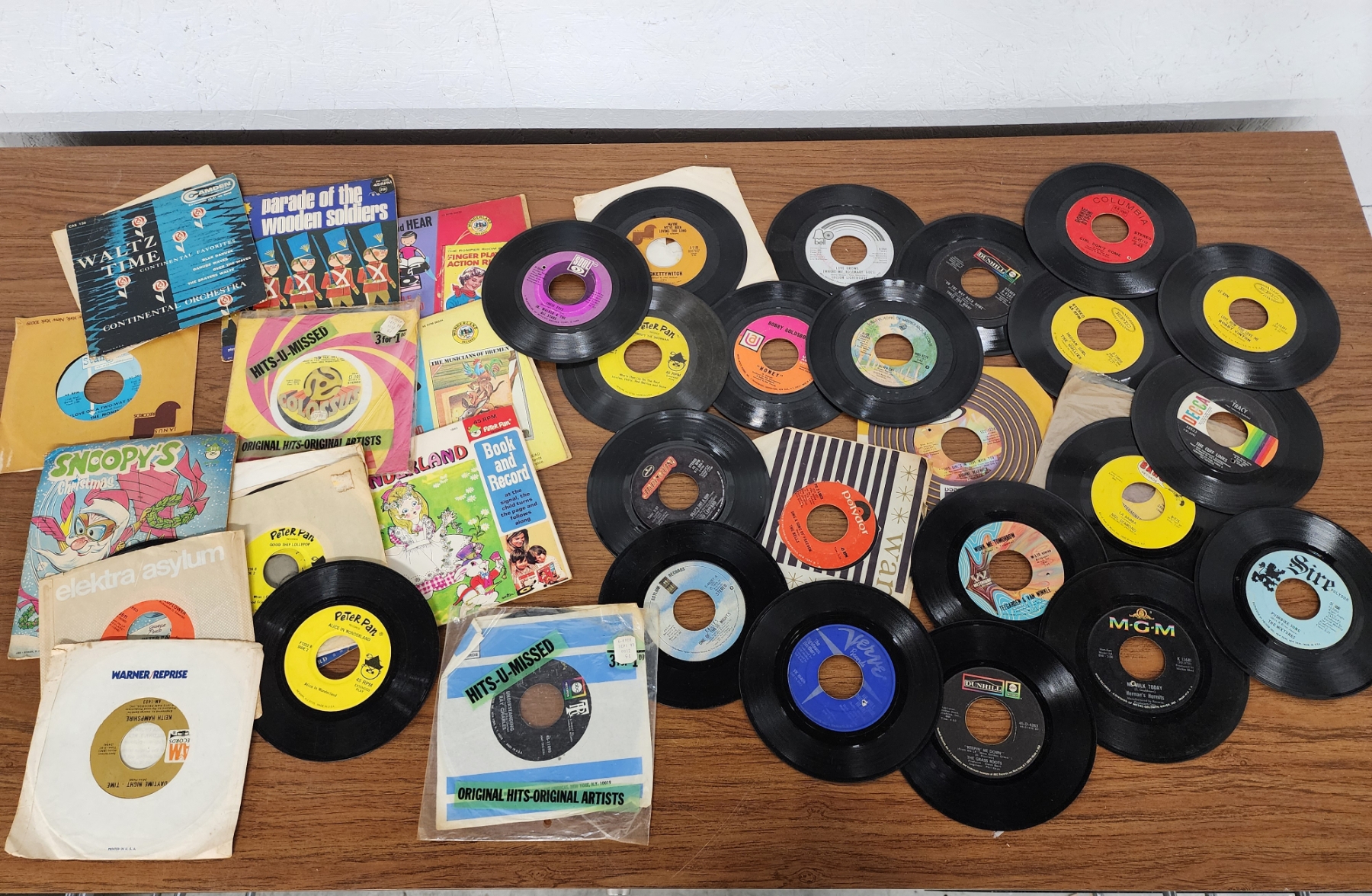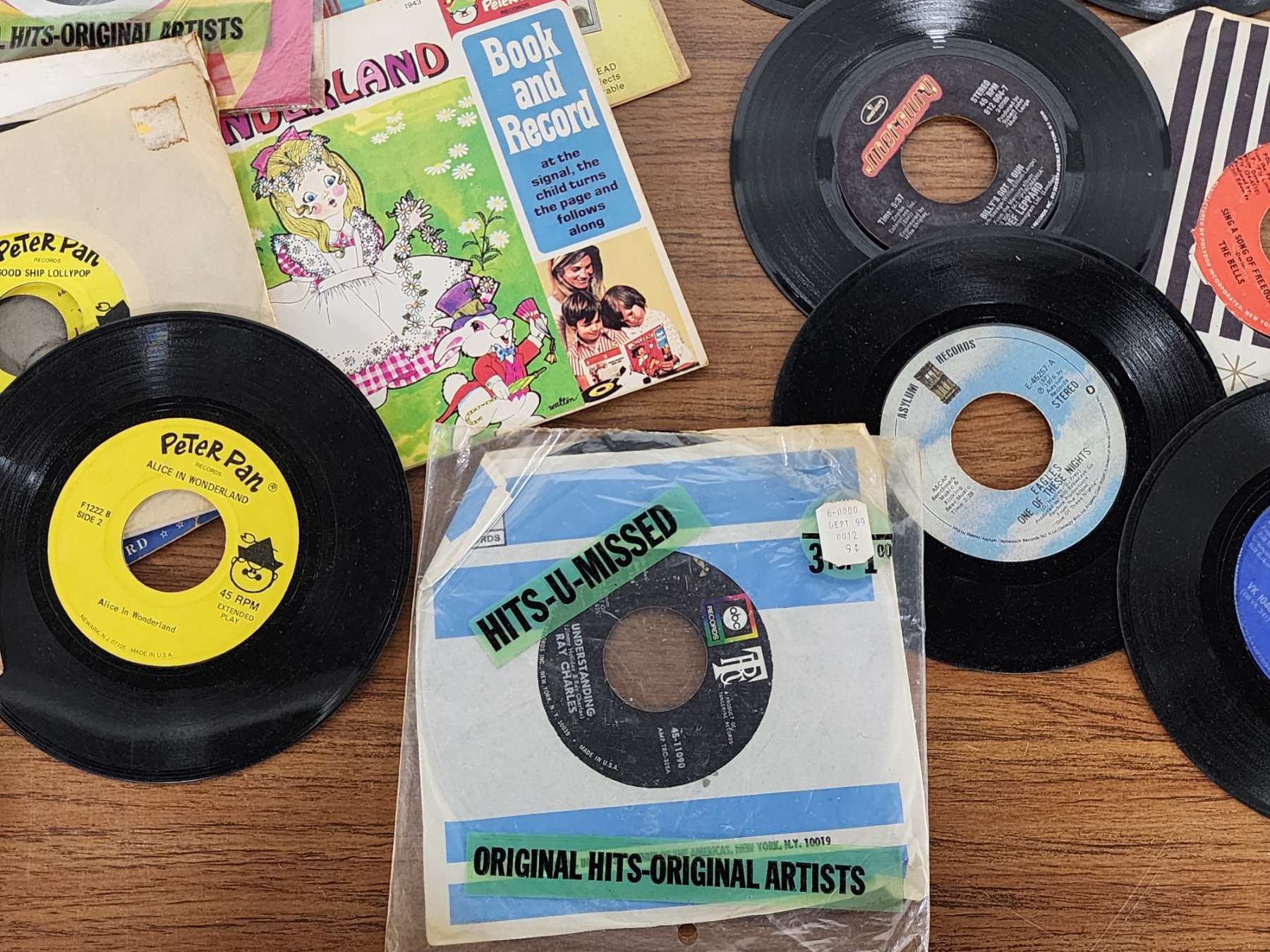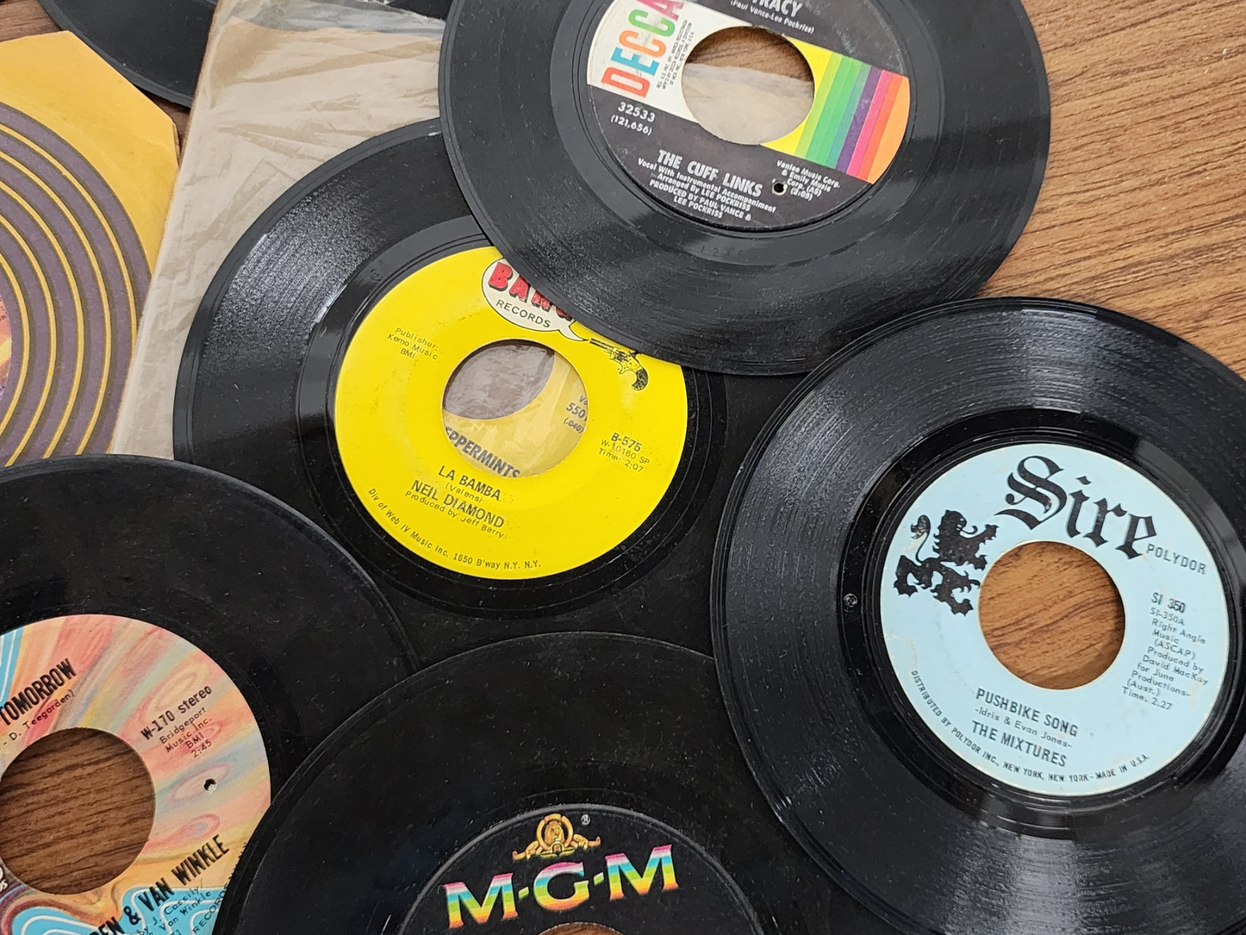Lot of Assorted 7in Vinyl Records Including Alice in Wonderland, Neil Diamond, The Cuff Links & More!
