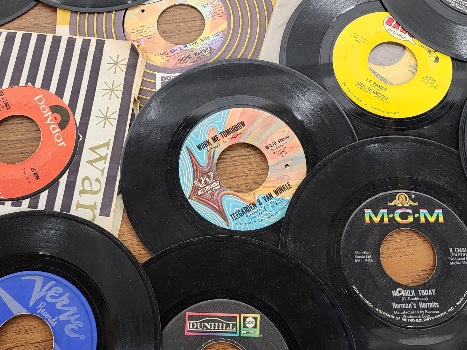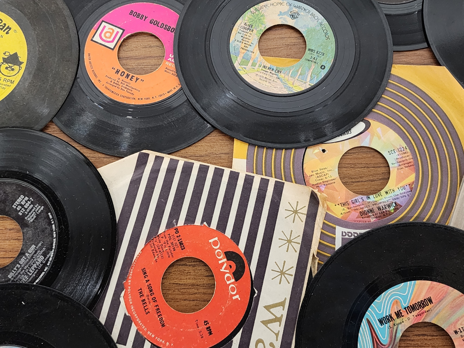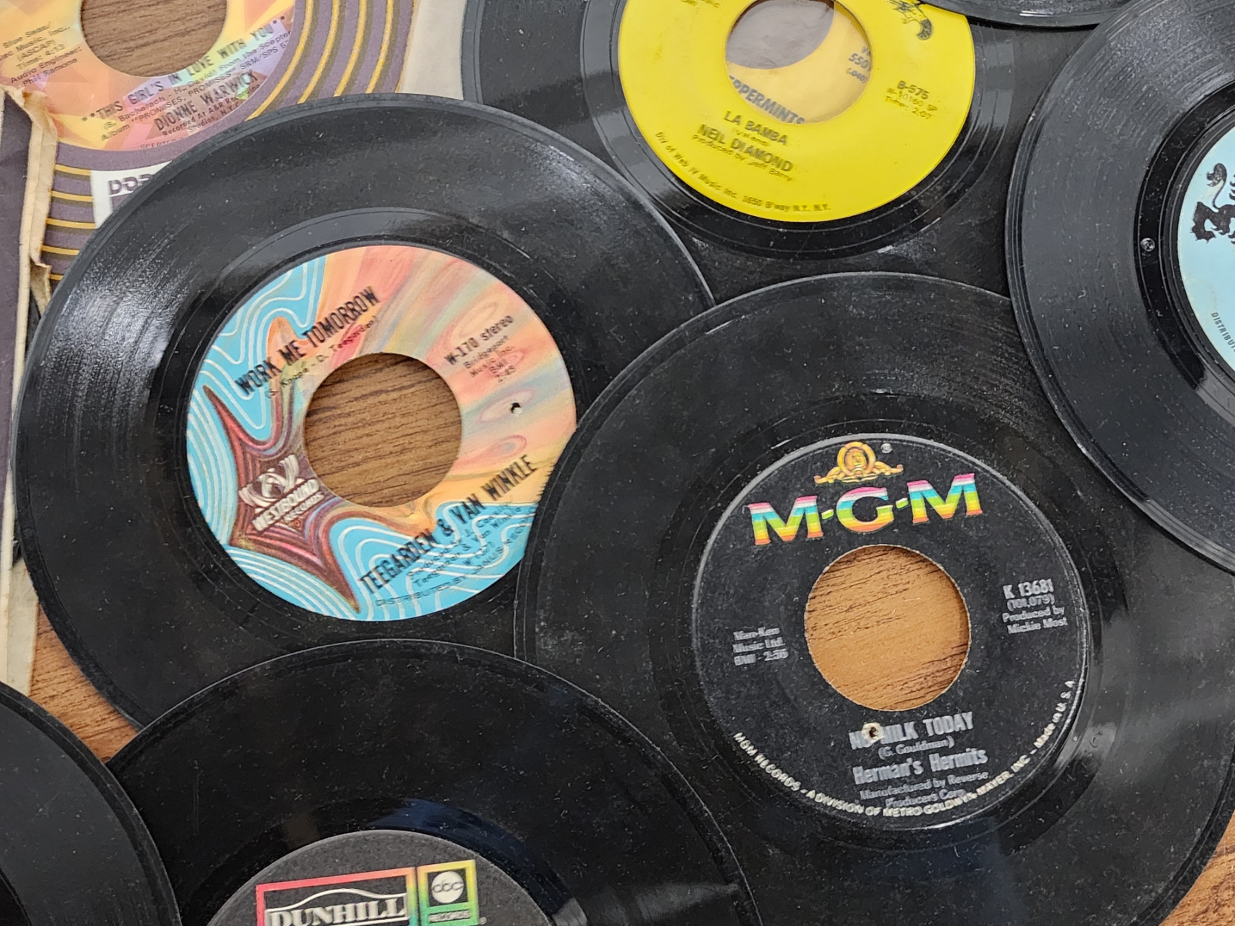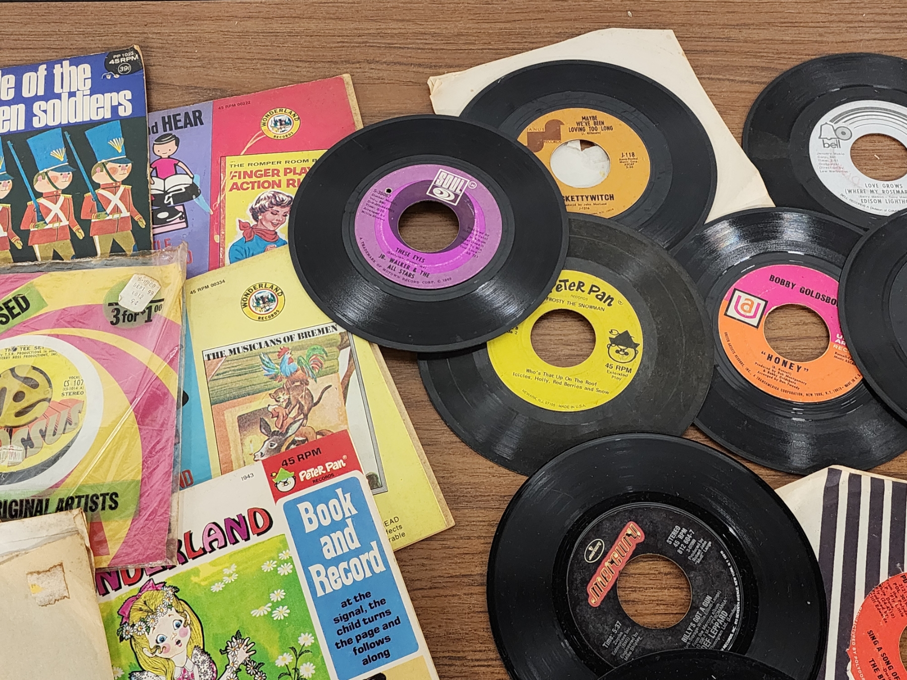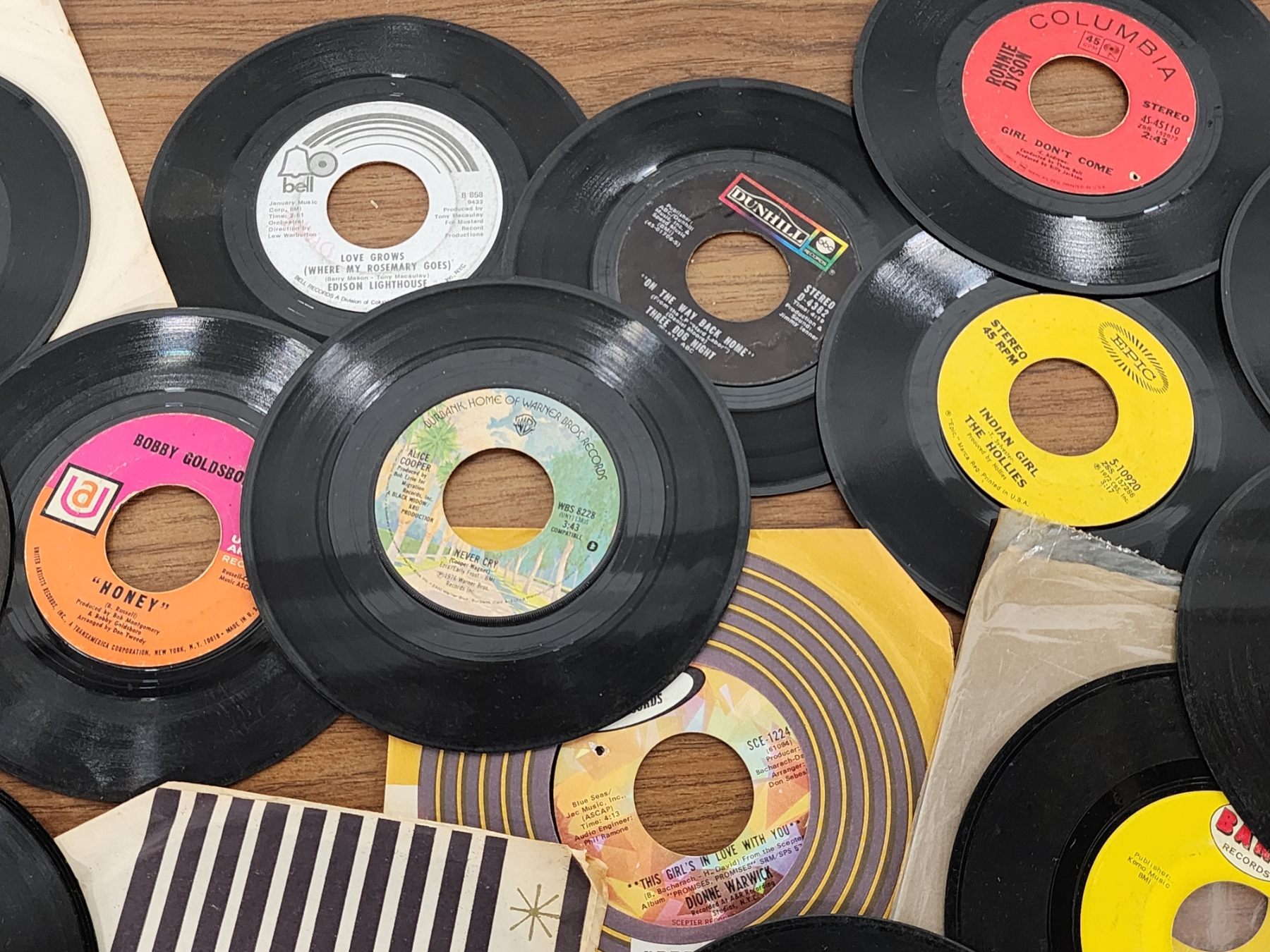 Lot of Assorted 7in Vinyl Records Including Alice in Wonderland, Neil Diamond, The Cuff Links & More!