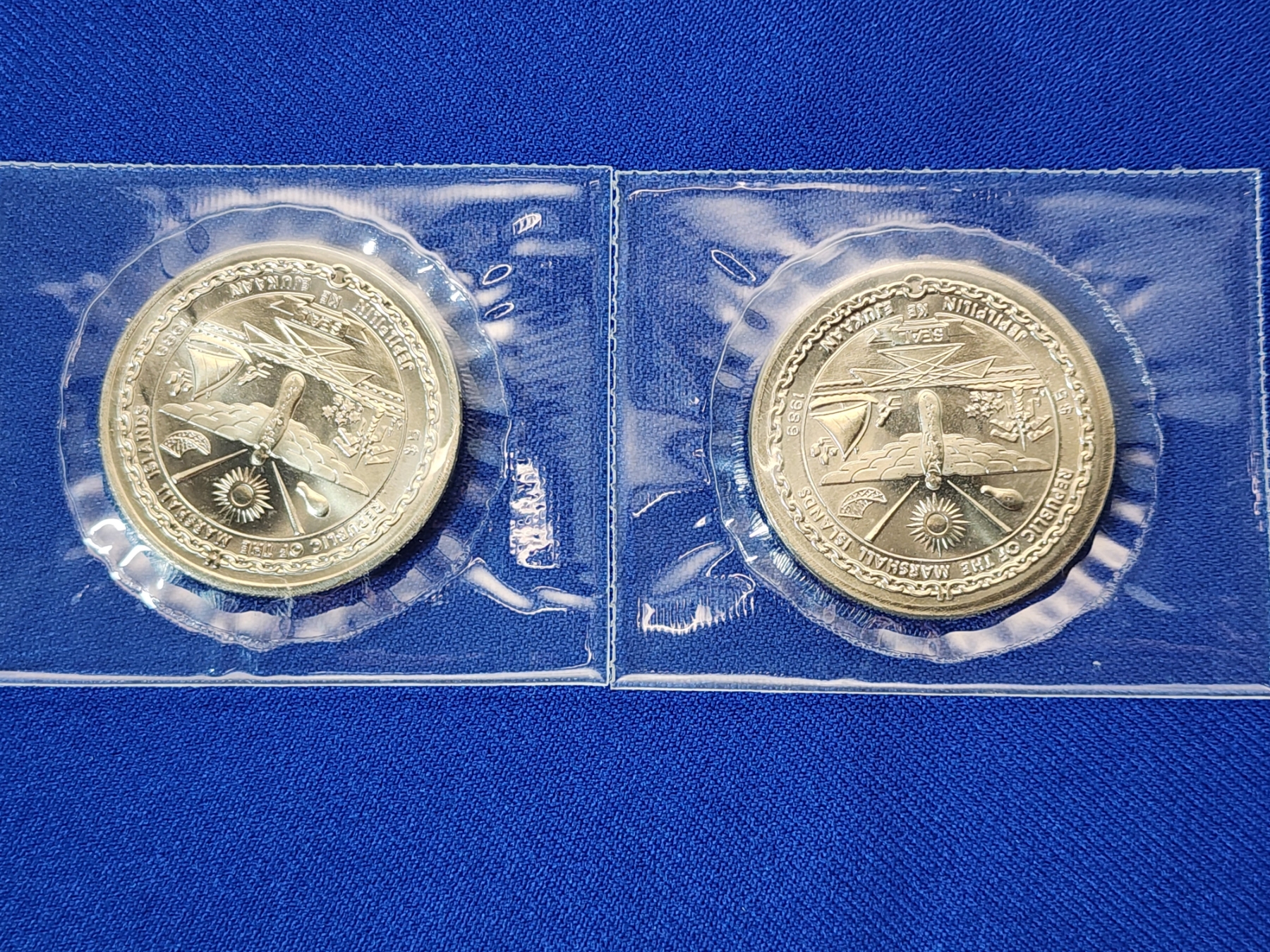 x2 Republic of the Marshall Islands First Men on the Moon $5 Commemorative Coin