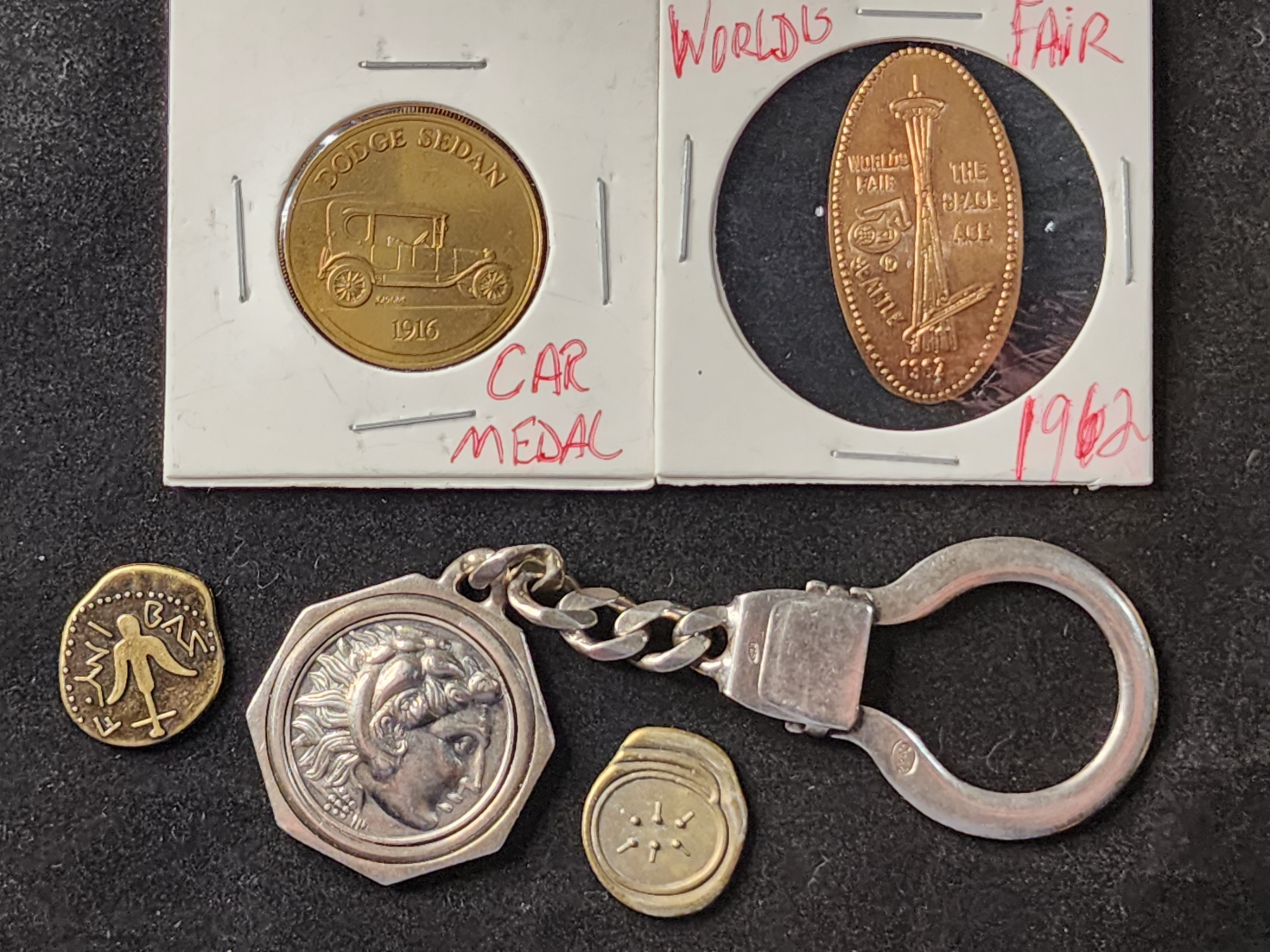 Lot of Assorted Coins & Tokens Ft. Replica Ancients, Keychain & World's Fair Flat Penny