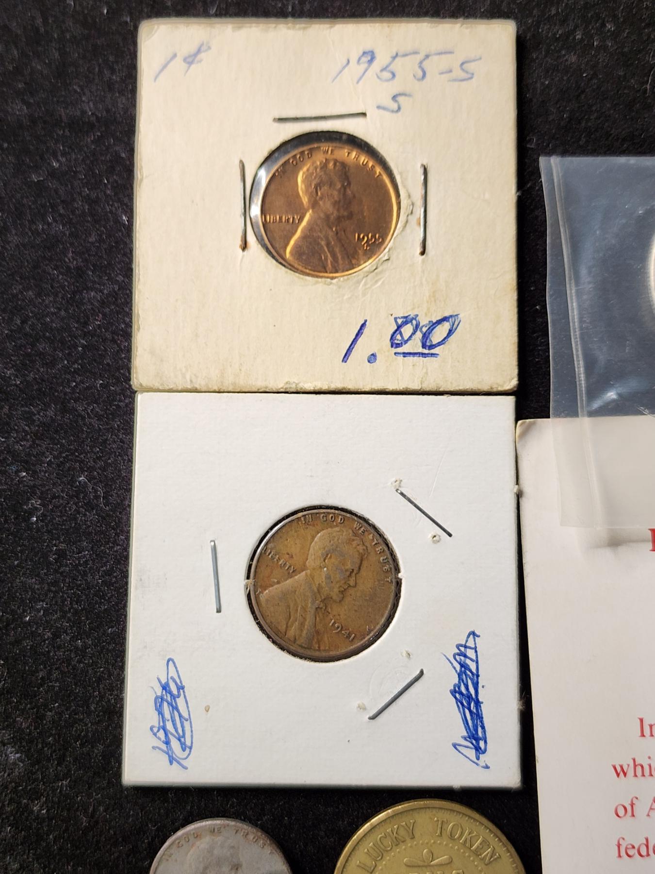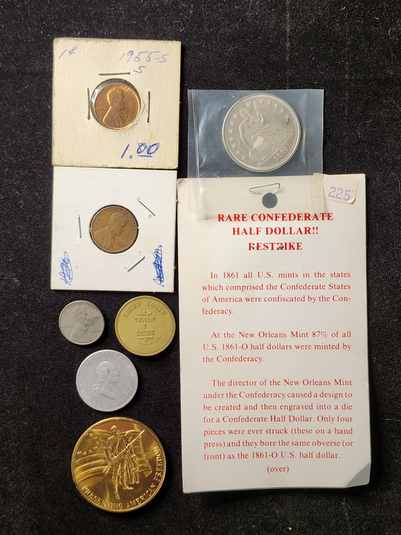 Lot of Assorted Coins & Tokens - Wheat & Steel Pennies, Tokens & A Copy Restrike Confederate Coin!
