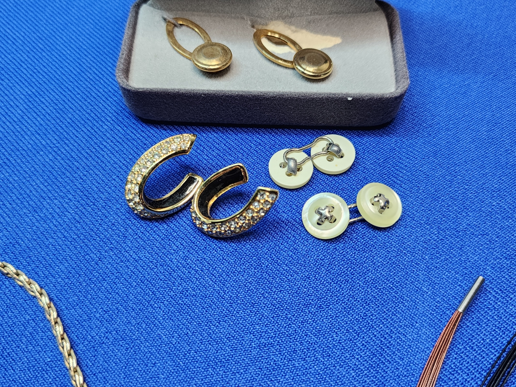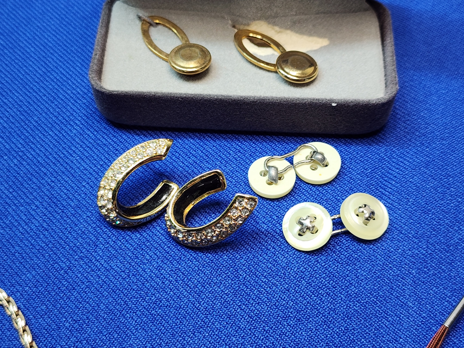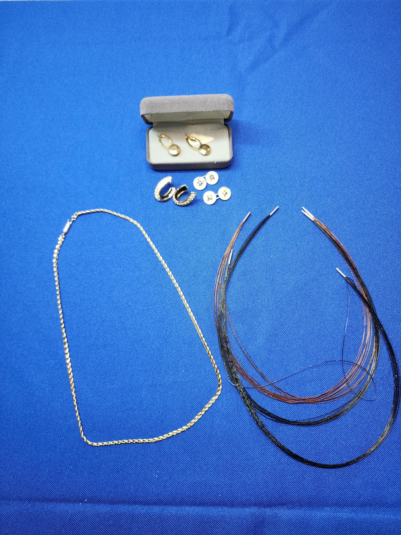 Lot of Assorted Costume Fashion Jewelry - Gold-Toned Necklace, Earrings, Cufflinks