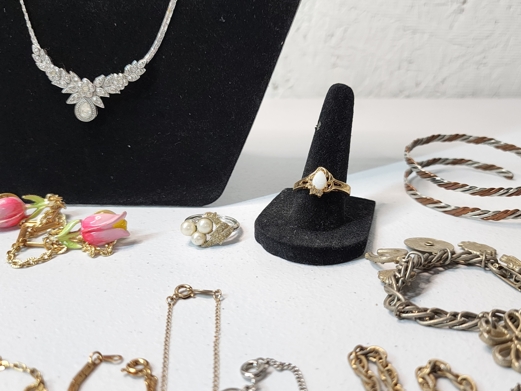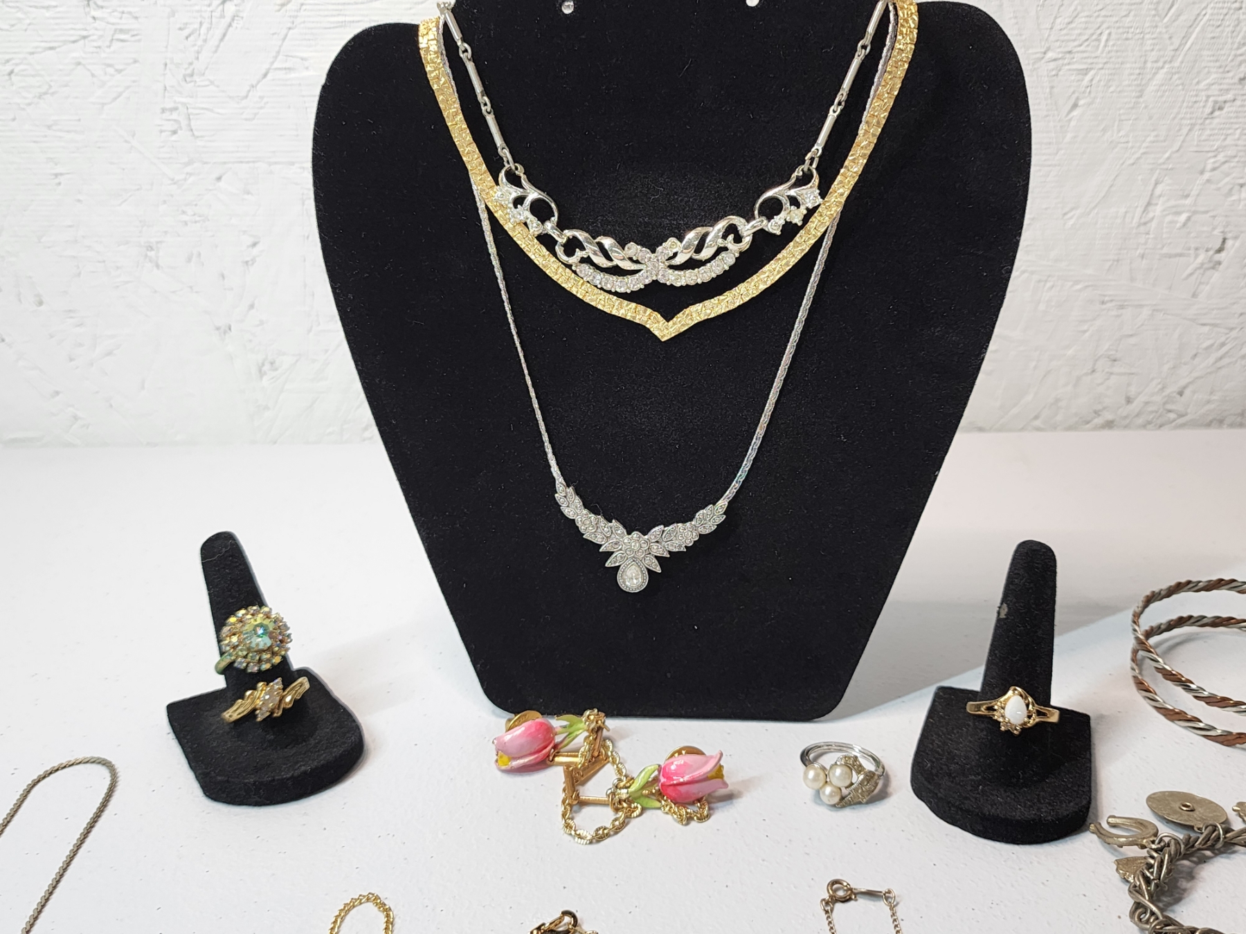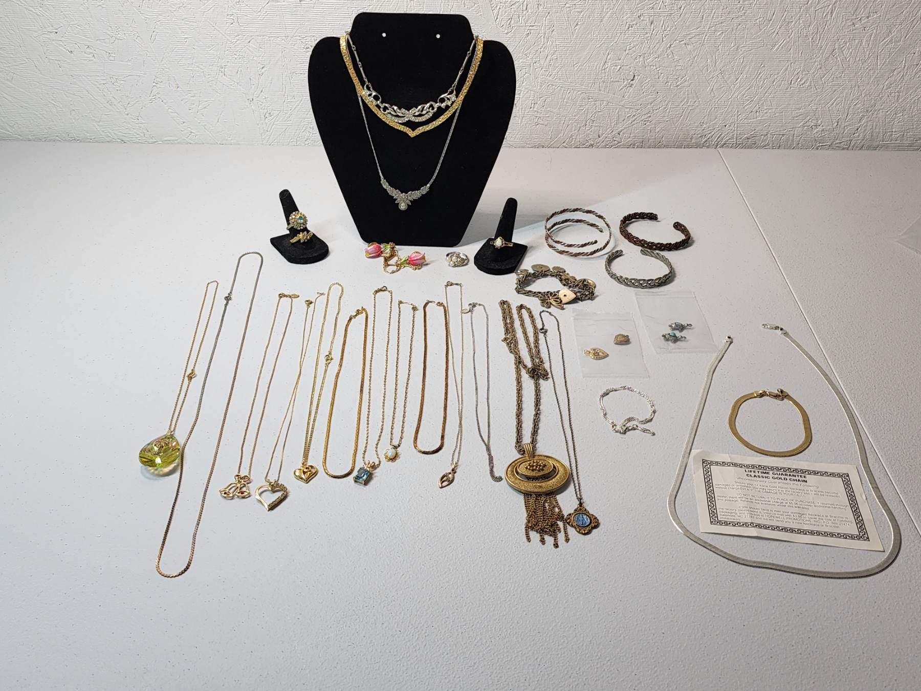 Lot of Assorted Costume Jewelry: Gold-Plated Pieces, Rings, Necklaces, Bracelets