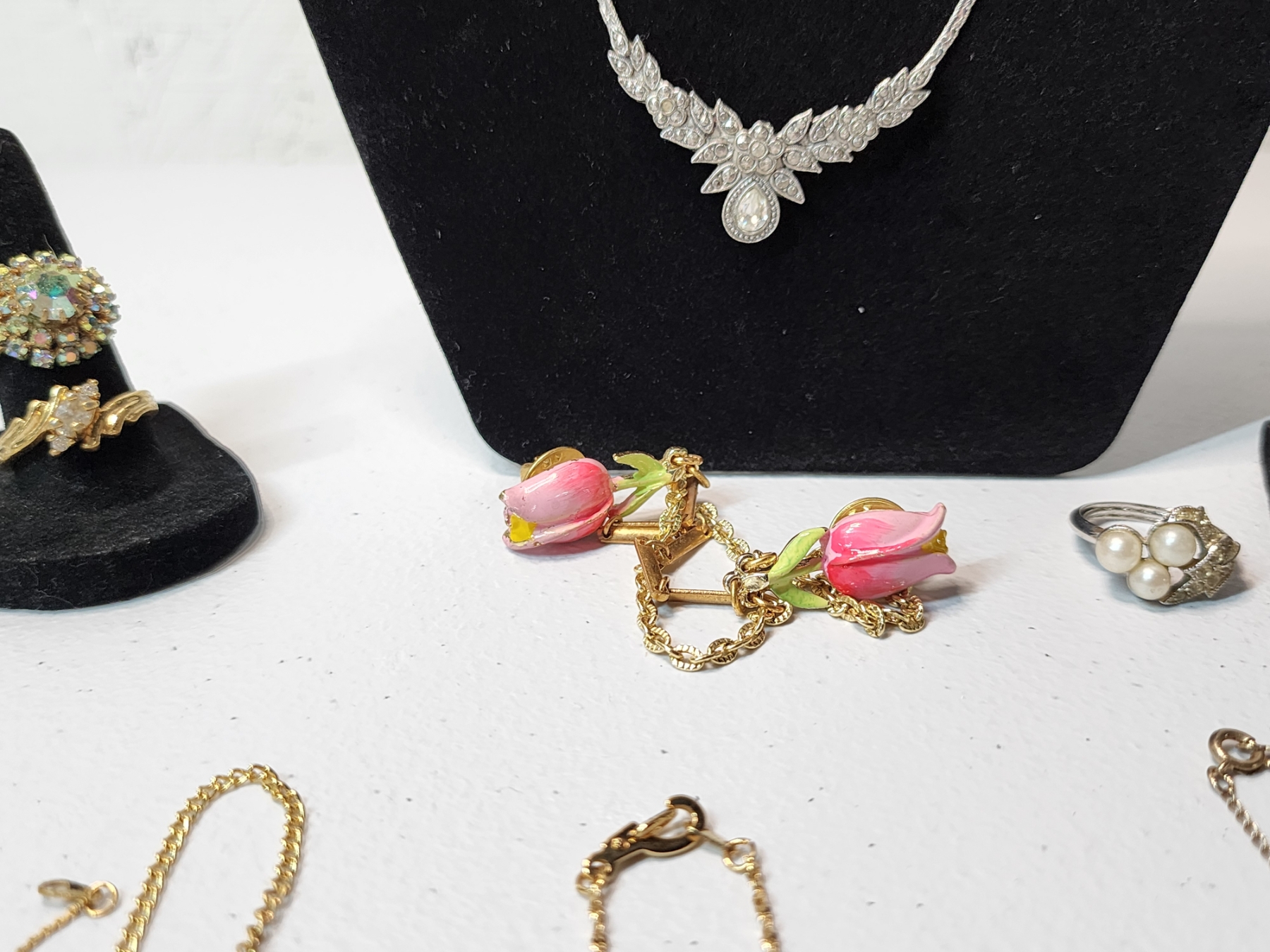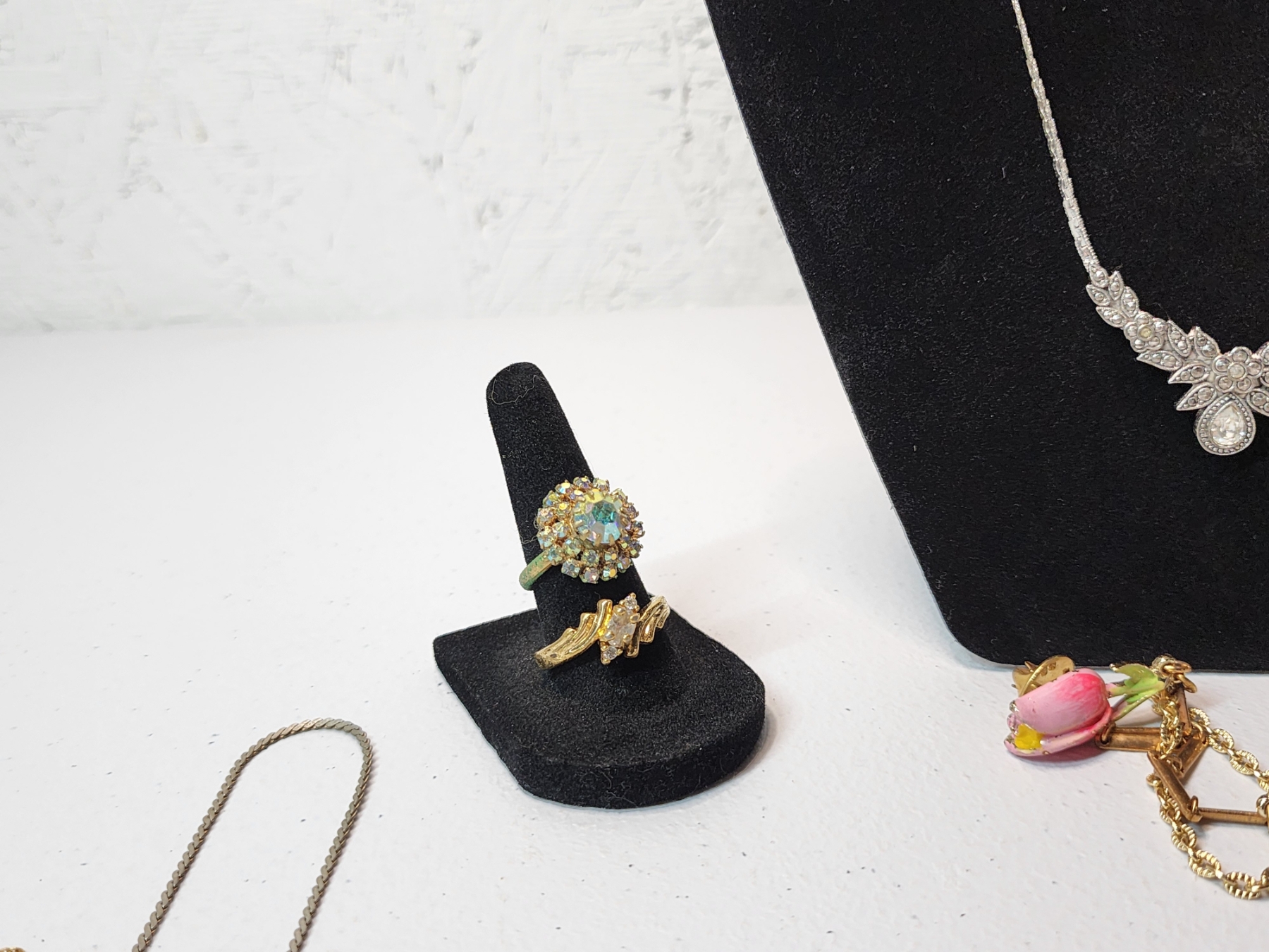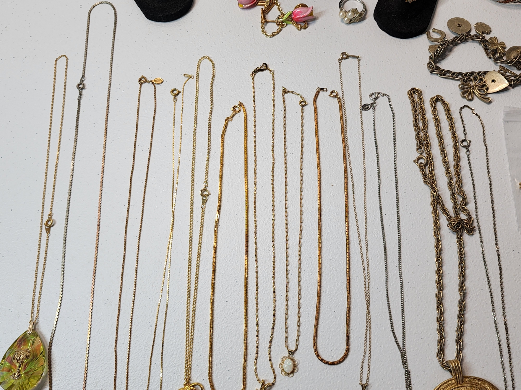 Lot of Assorted Costume Jewelry: Gold-Plated Pieces, Rings, Necklaces, Bracelets