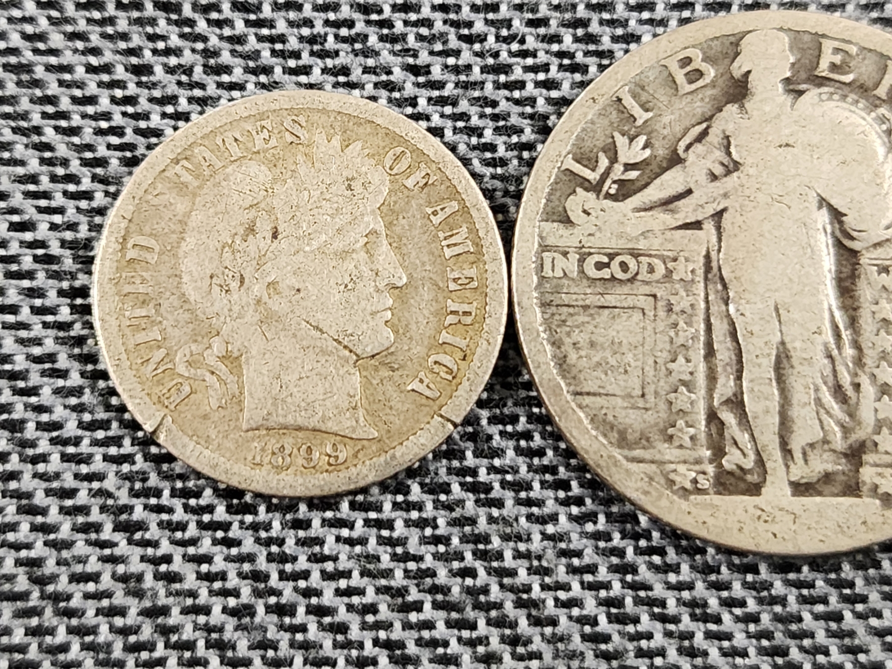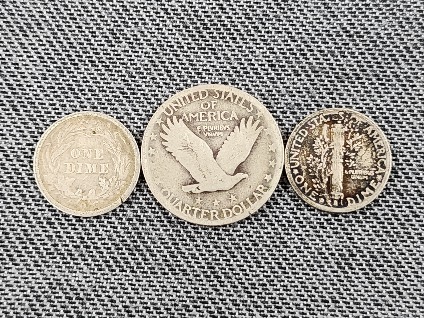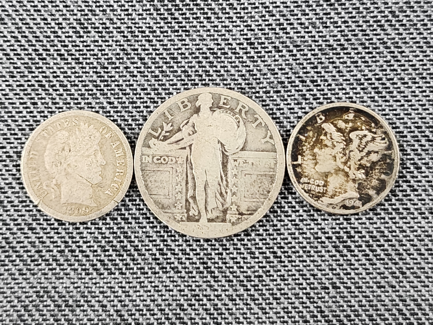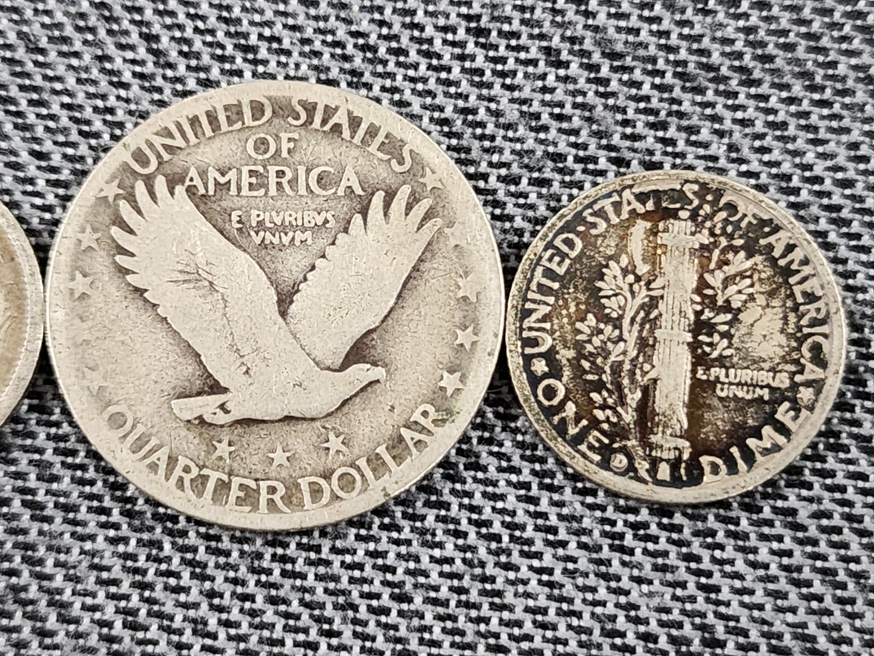 Lot of Assorted Early US 90% Silver Coins Ft. Barber & Mercury Dimes & Standing Liberty Quarter - $0.45 Face Value