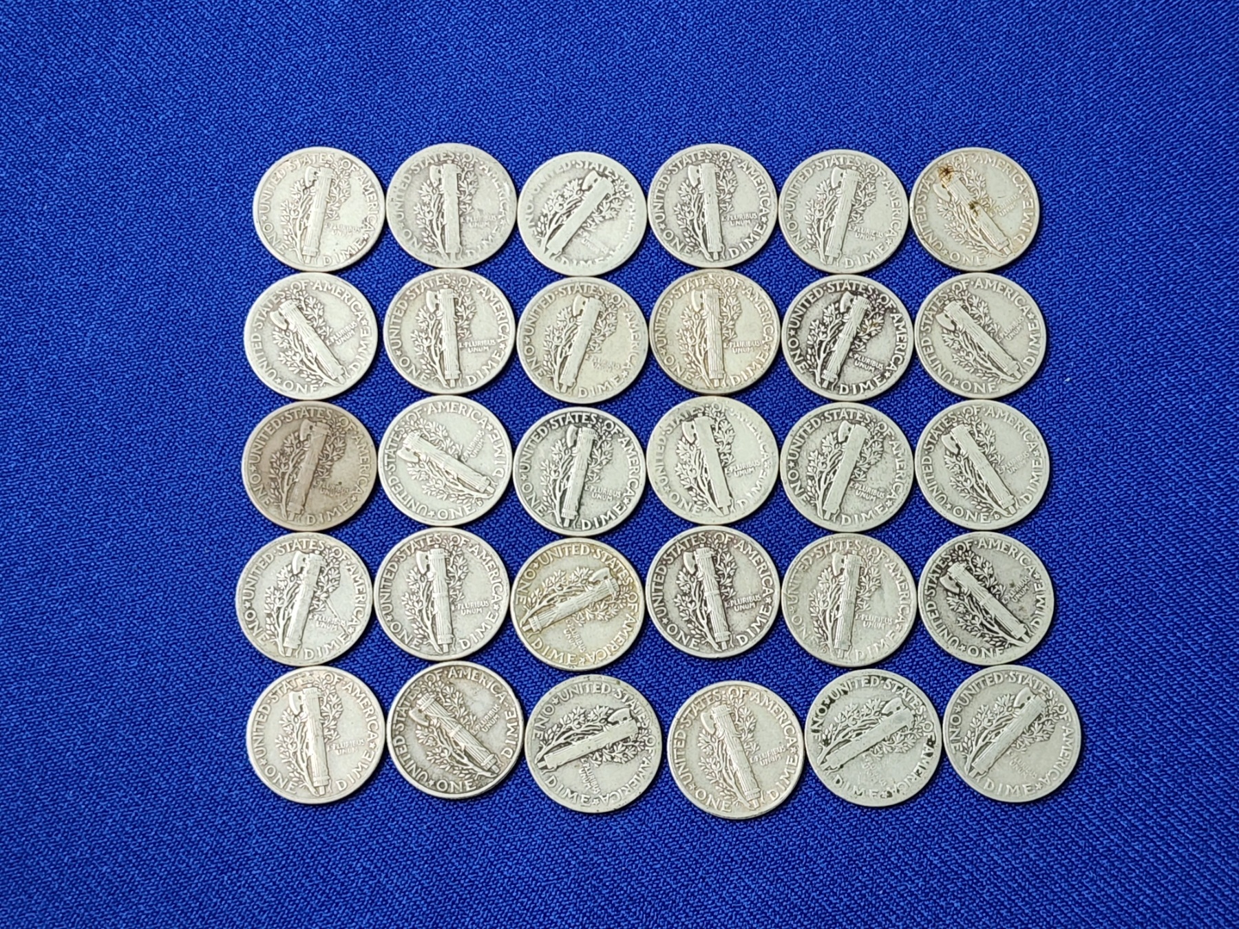 Lot of Assorted Mercury Silver Dimes - FV: $3.00