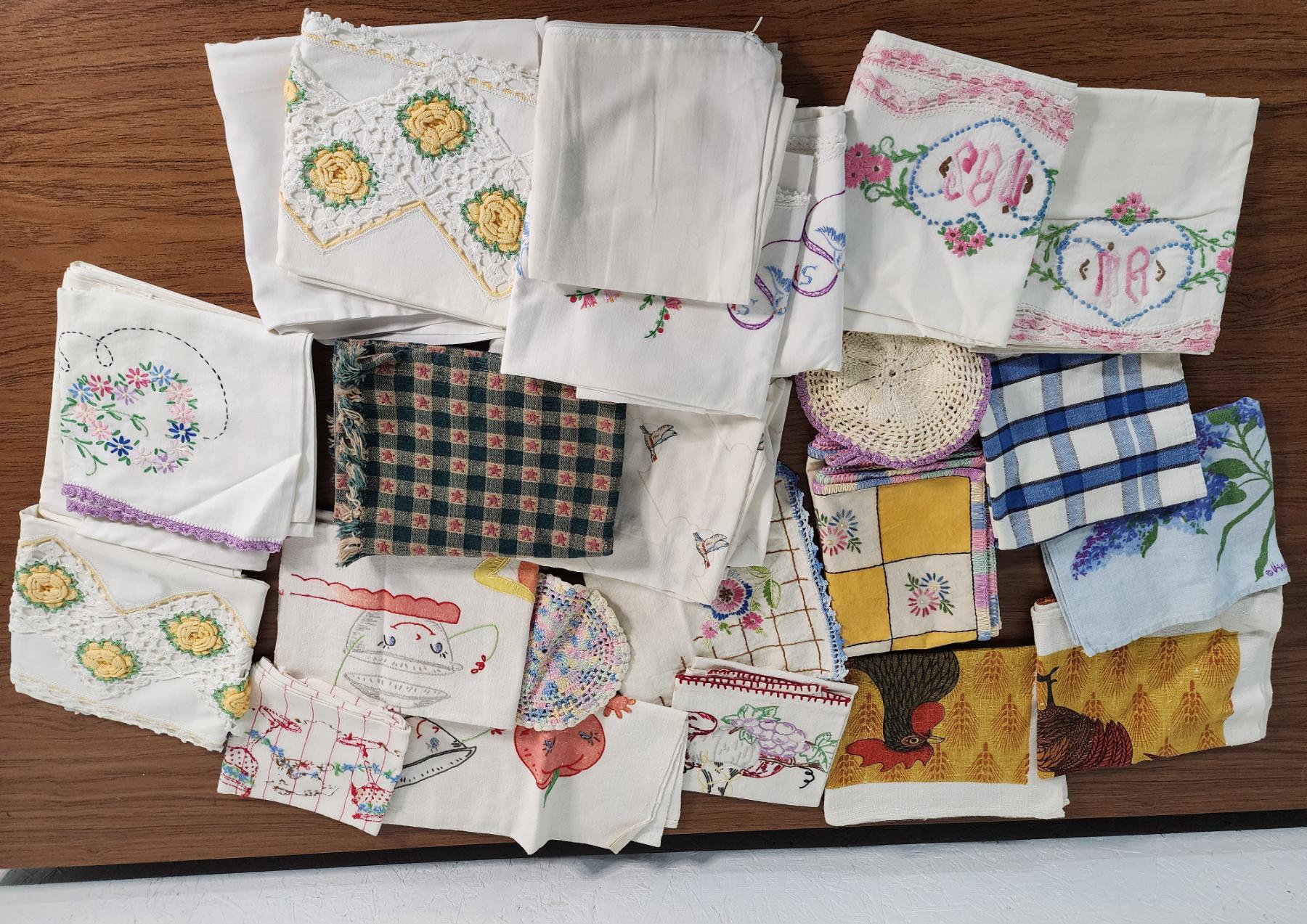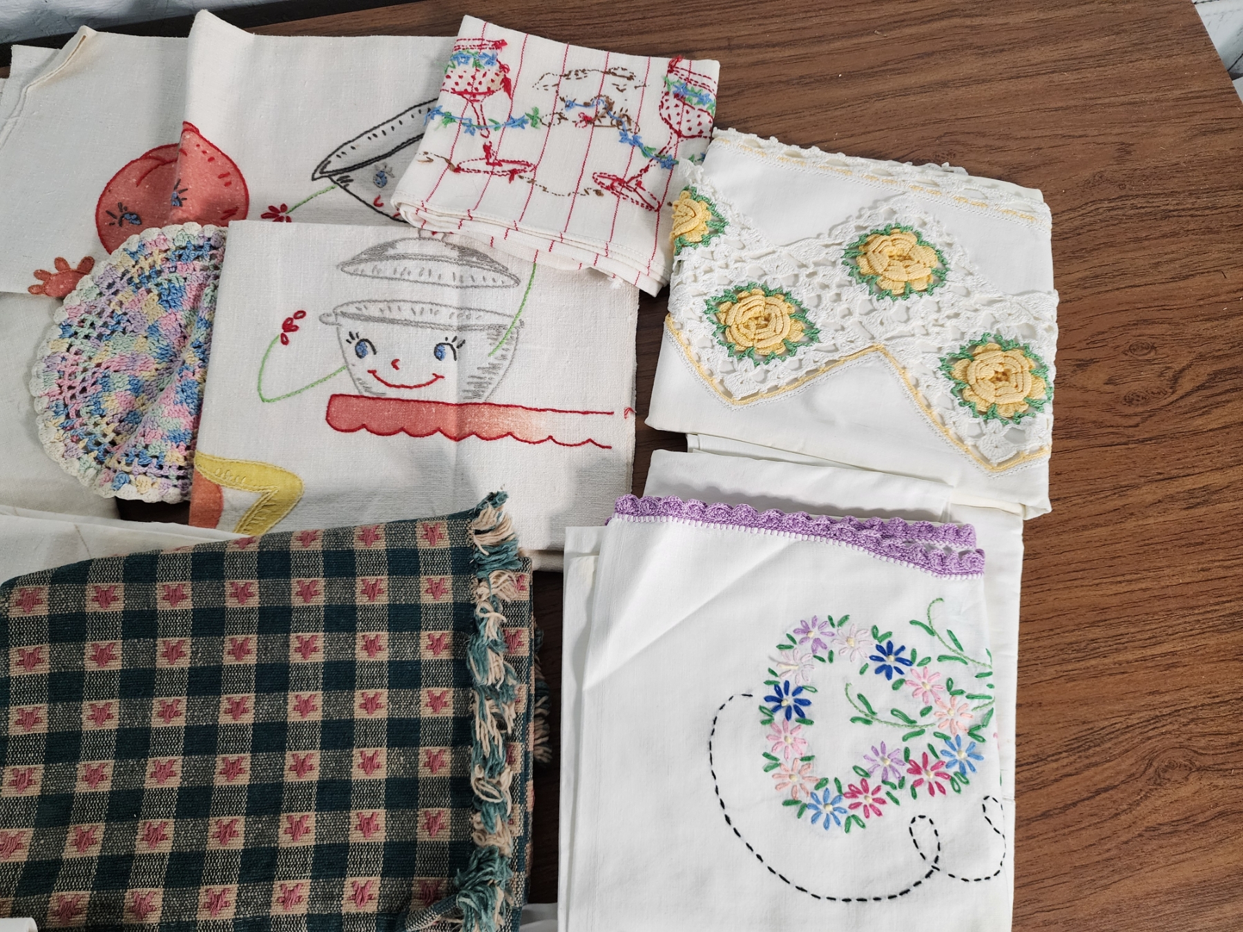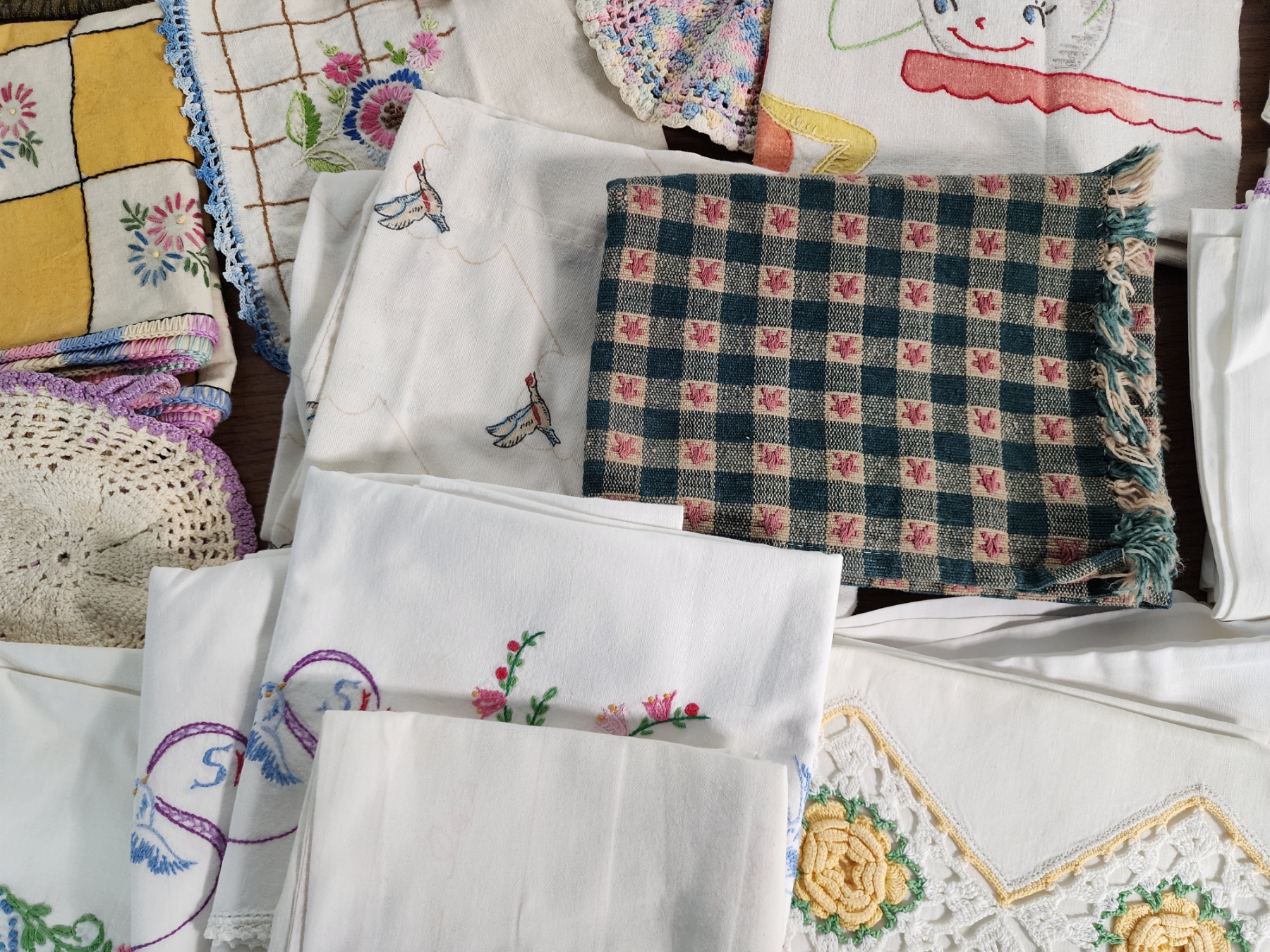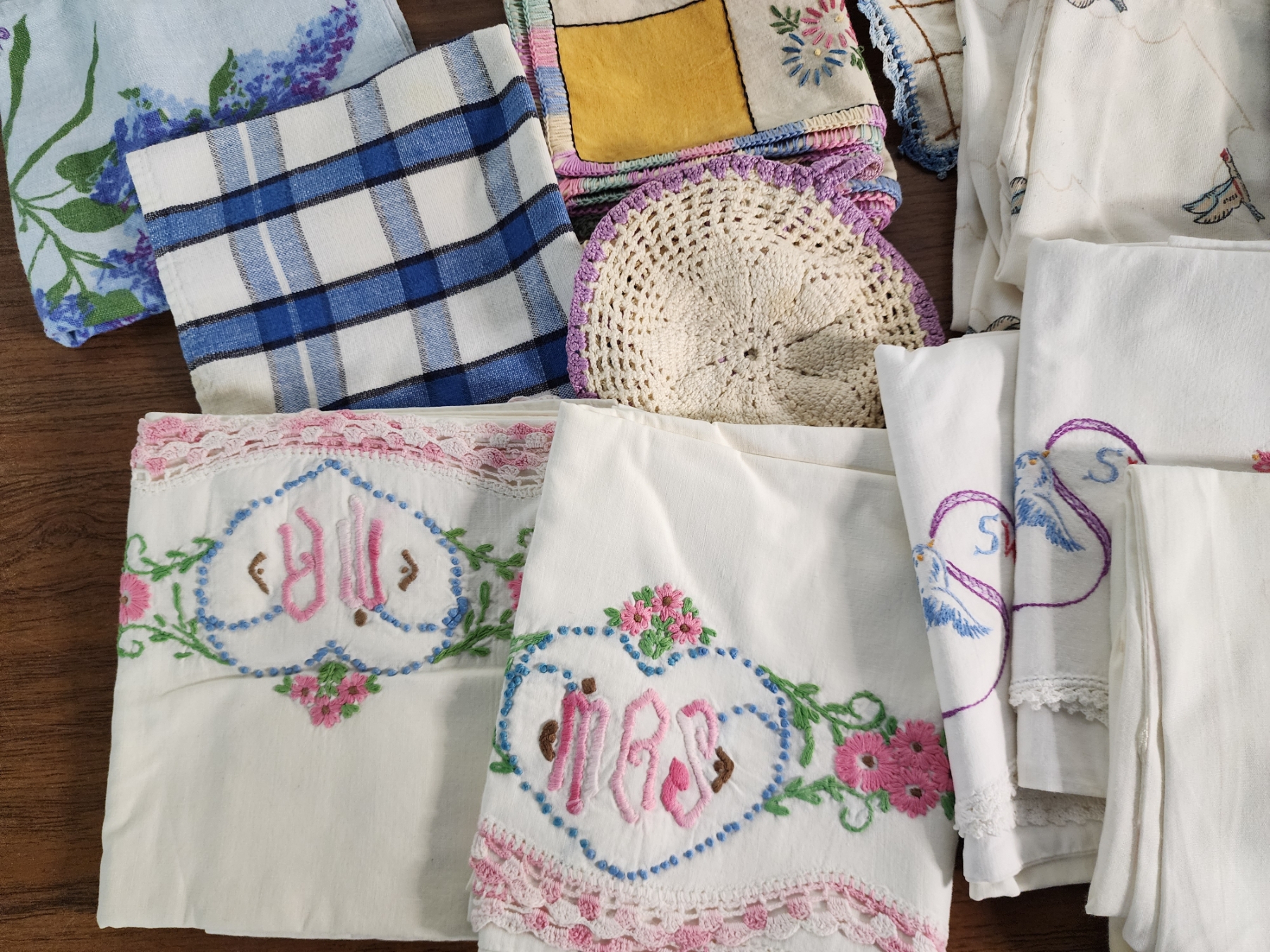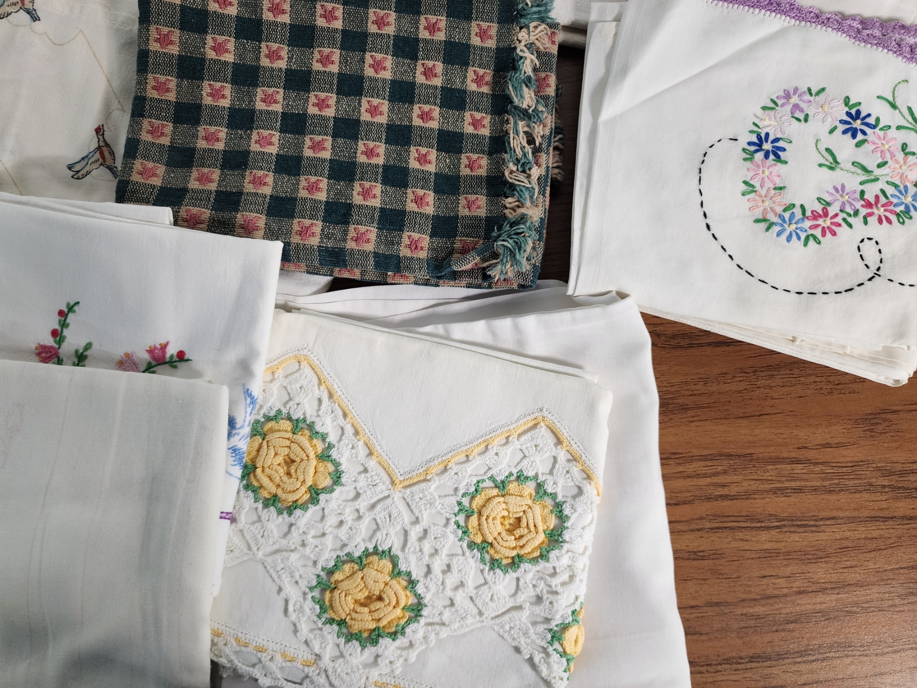 Lot of Assorted Teacloths, Pillowcases, Runners - Including Handmade