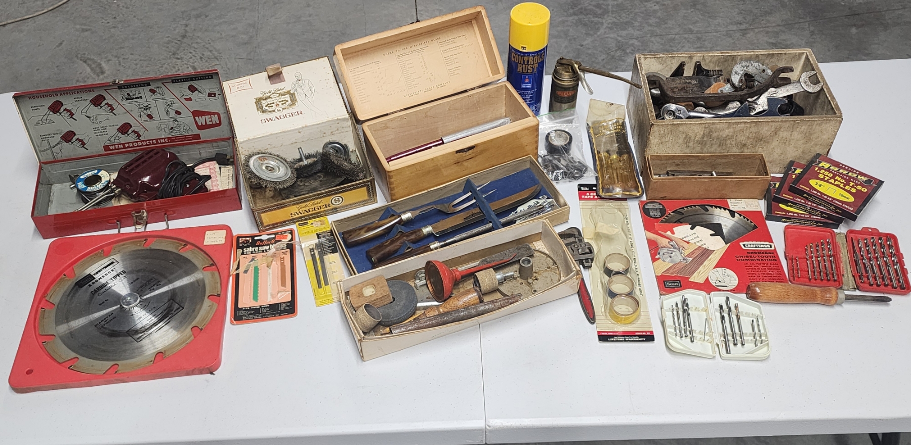 Lot of Assorted Tools, Parts, 10" Saw Blade, Vintage Soldering Gun, Drills Bits, & More!