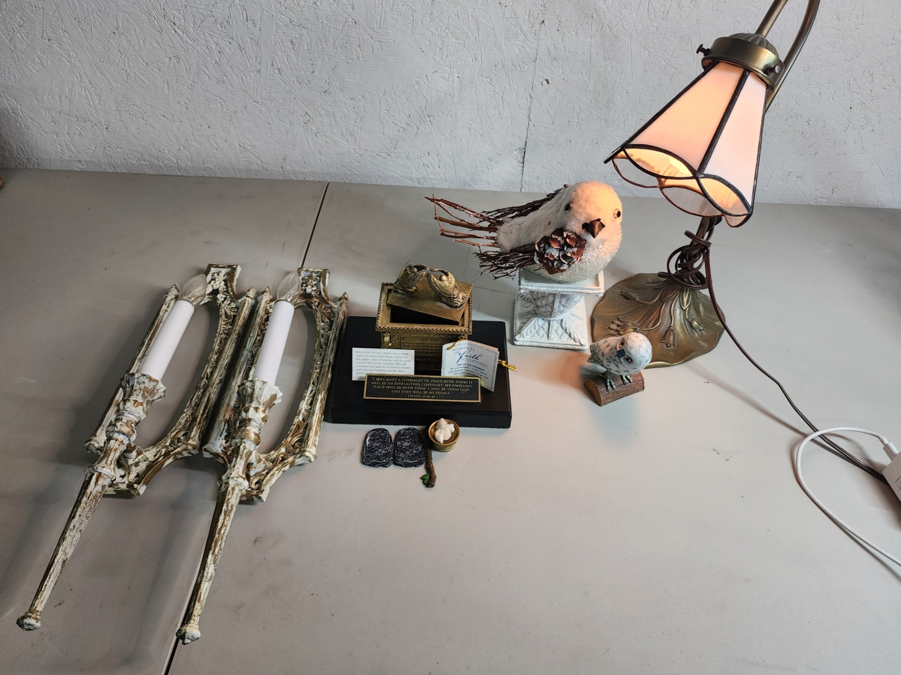 Lot of Home Decor Items: Wall Sconces, Working Lamp, Sculpture of the Ark of the Covenant, & more!