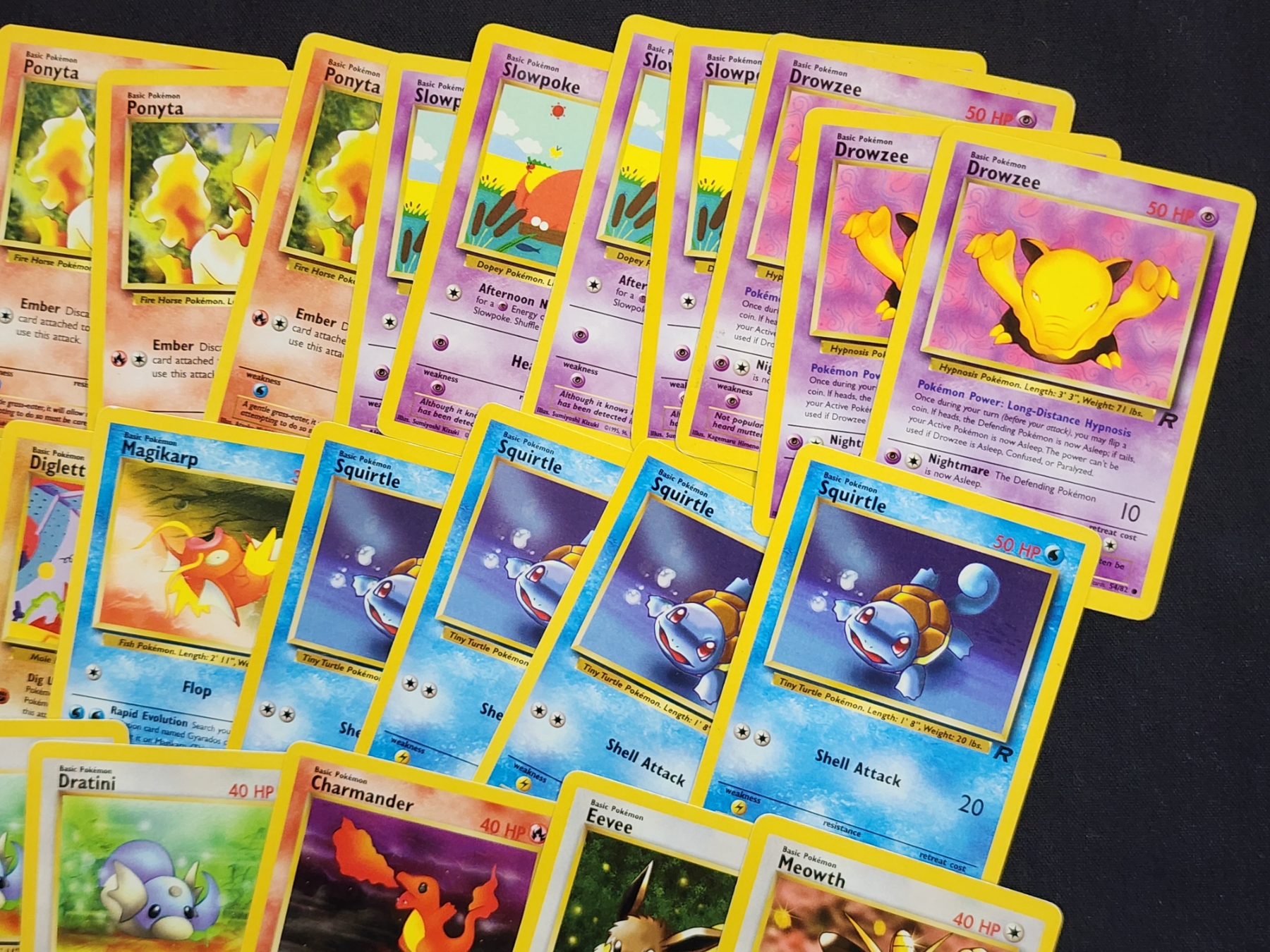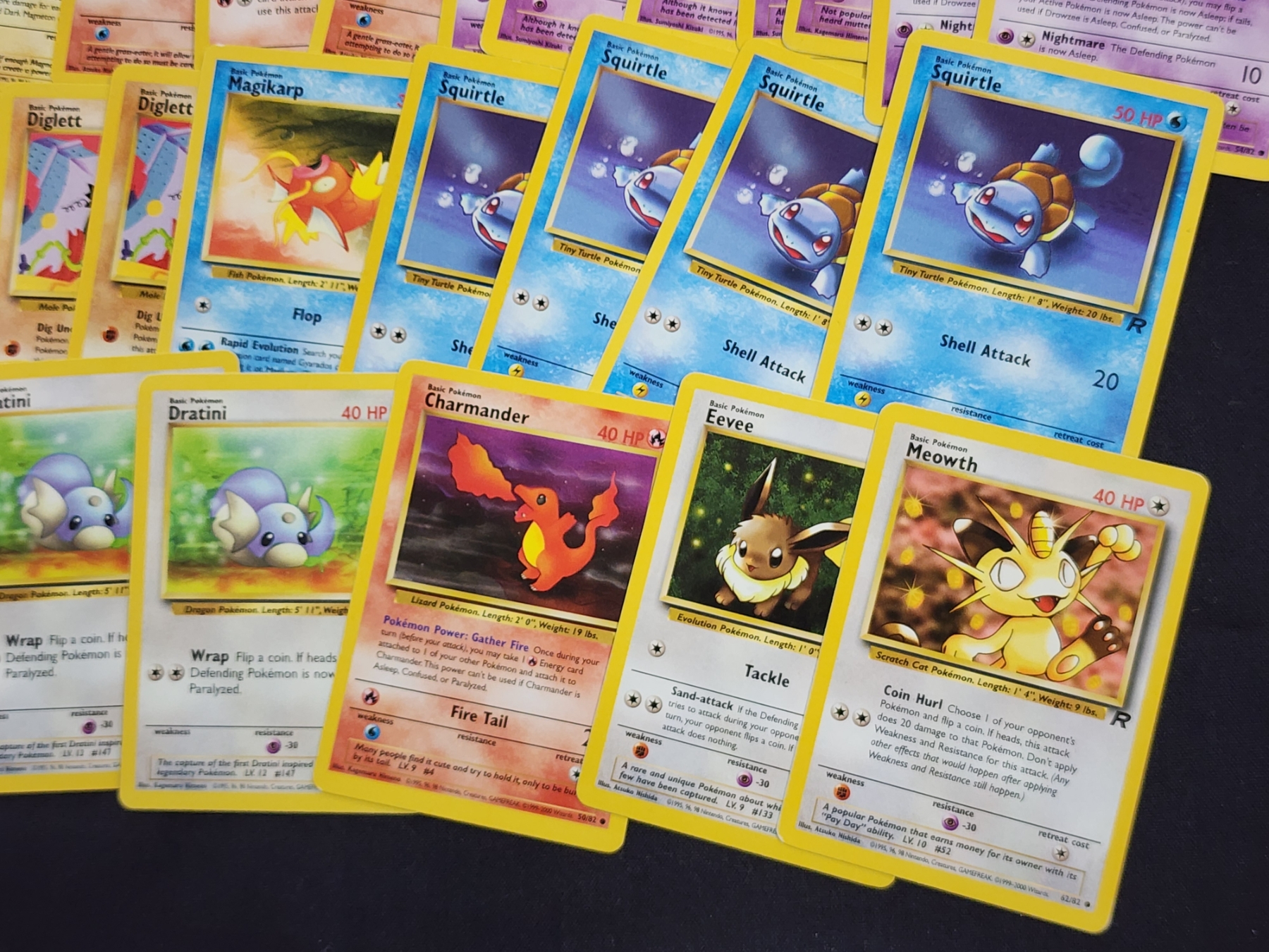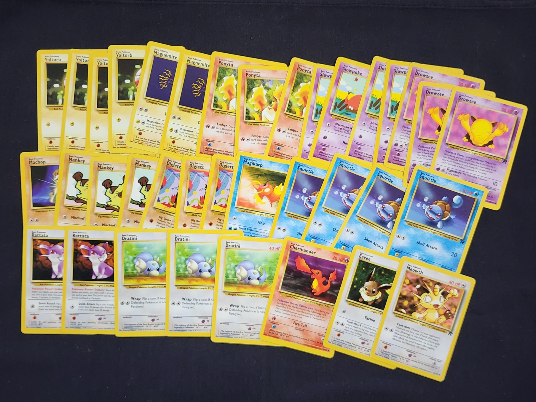 Lot of Over 30 Vintage Team Rocket Pokemon Trading Cards Including Squirtle & Charmander