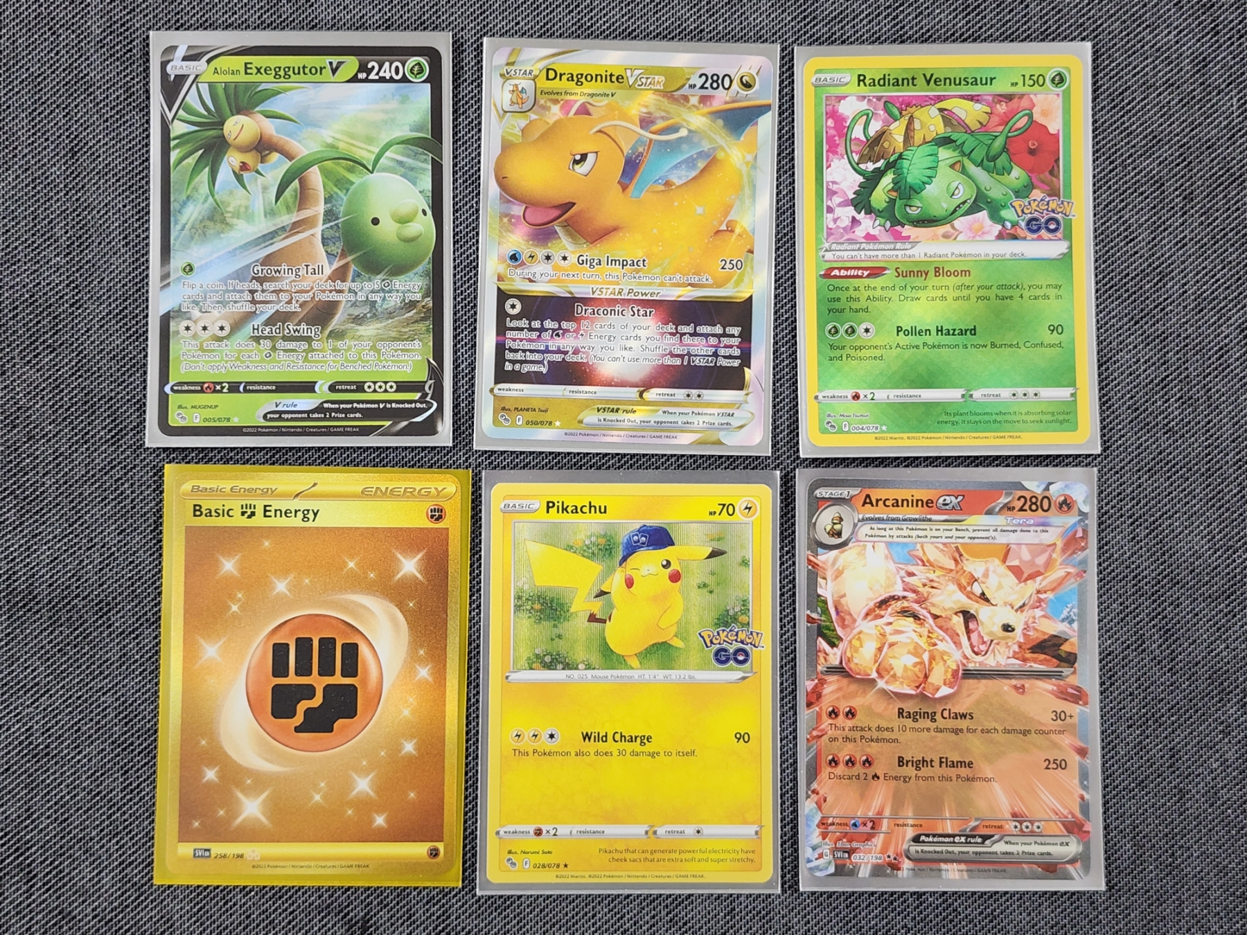 Lot of Six Assorted Holo Rare Pokemon Trading Cards Ft. Dragonite, Radiant Venusaur & Pikachu - Mostly NM