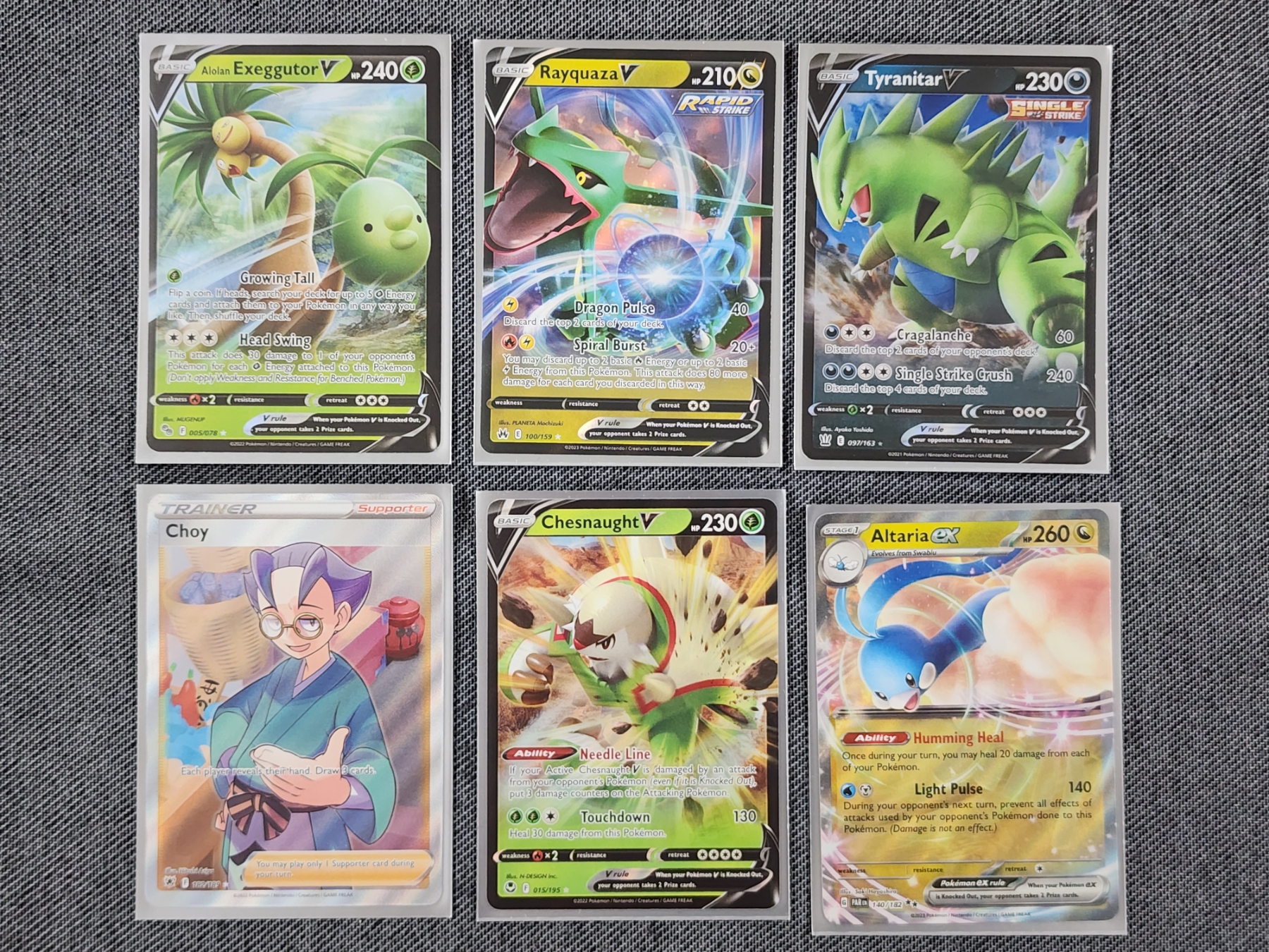 Lot of Six Assorted Holo Rare Pokemon Trading Cards Including Tyranitar & Rayquaza - Mostly NM