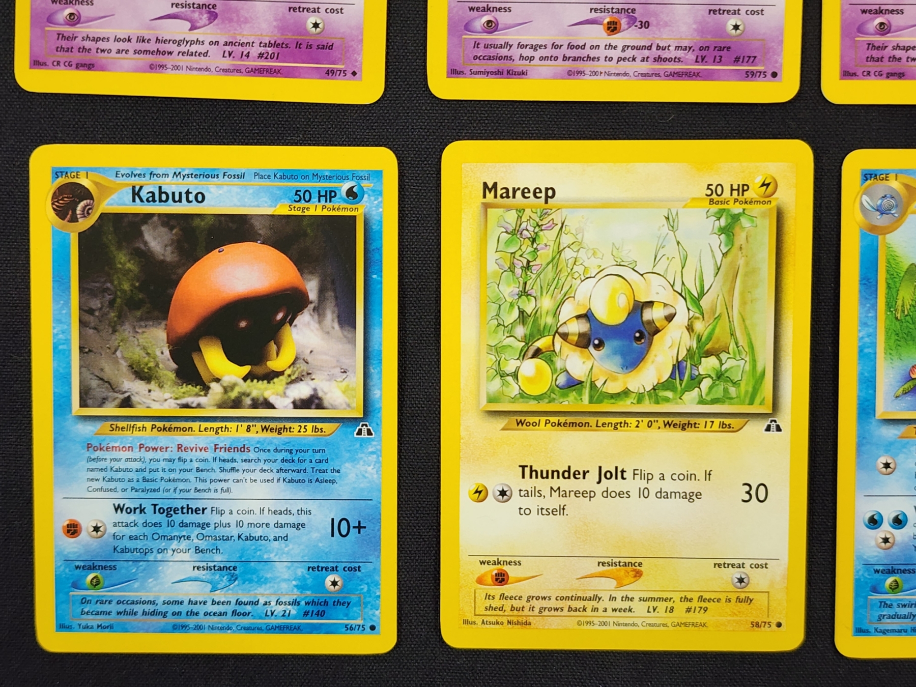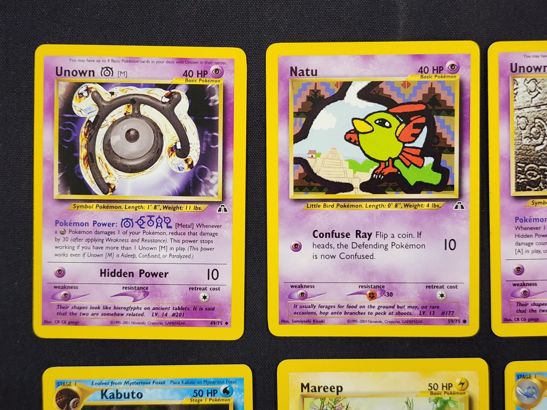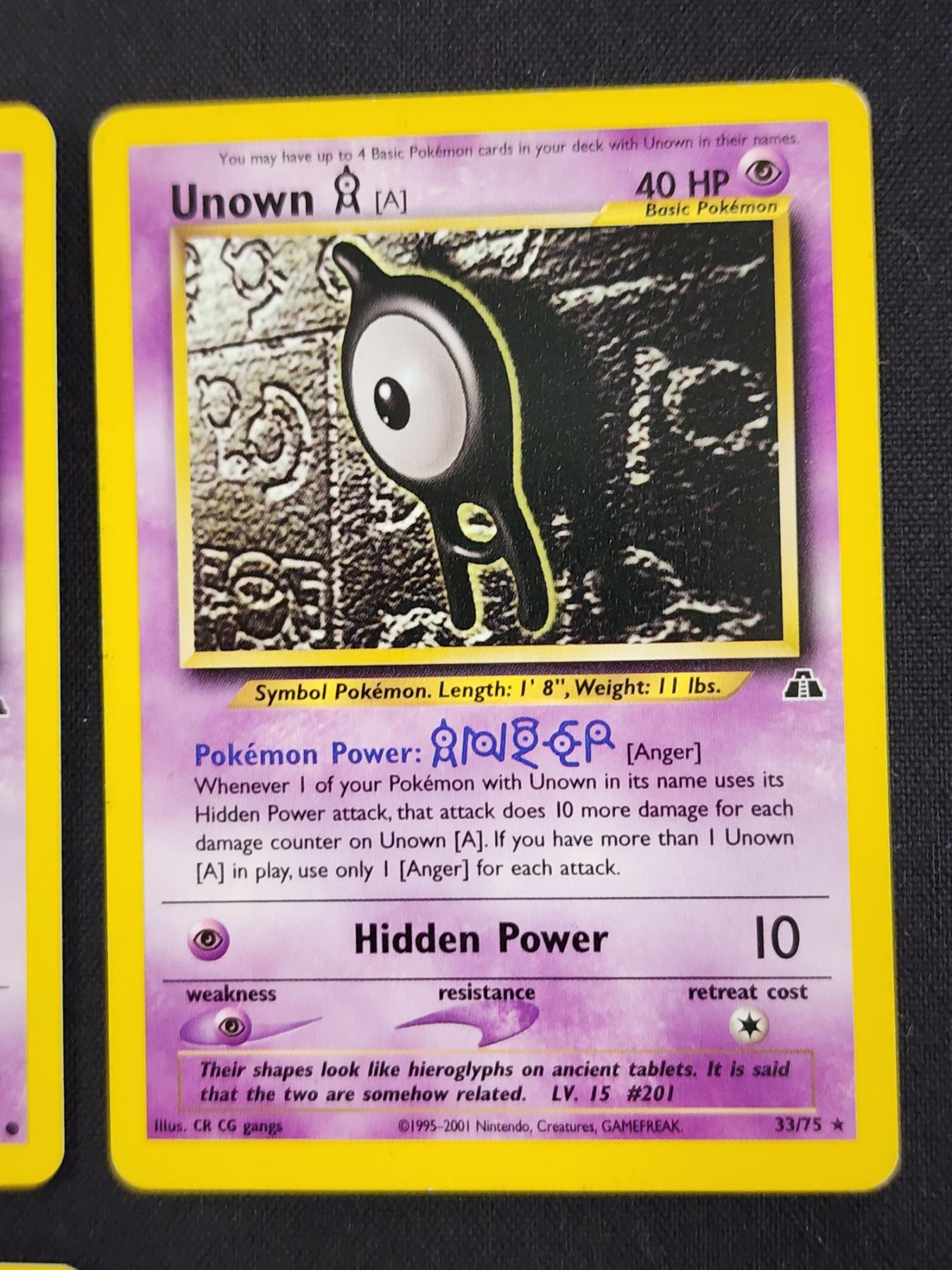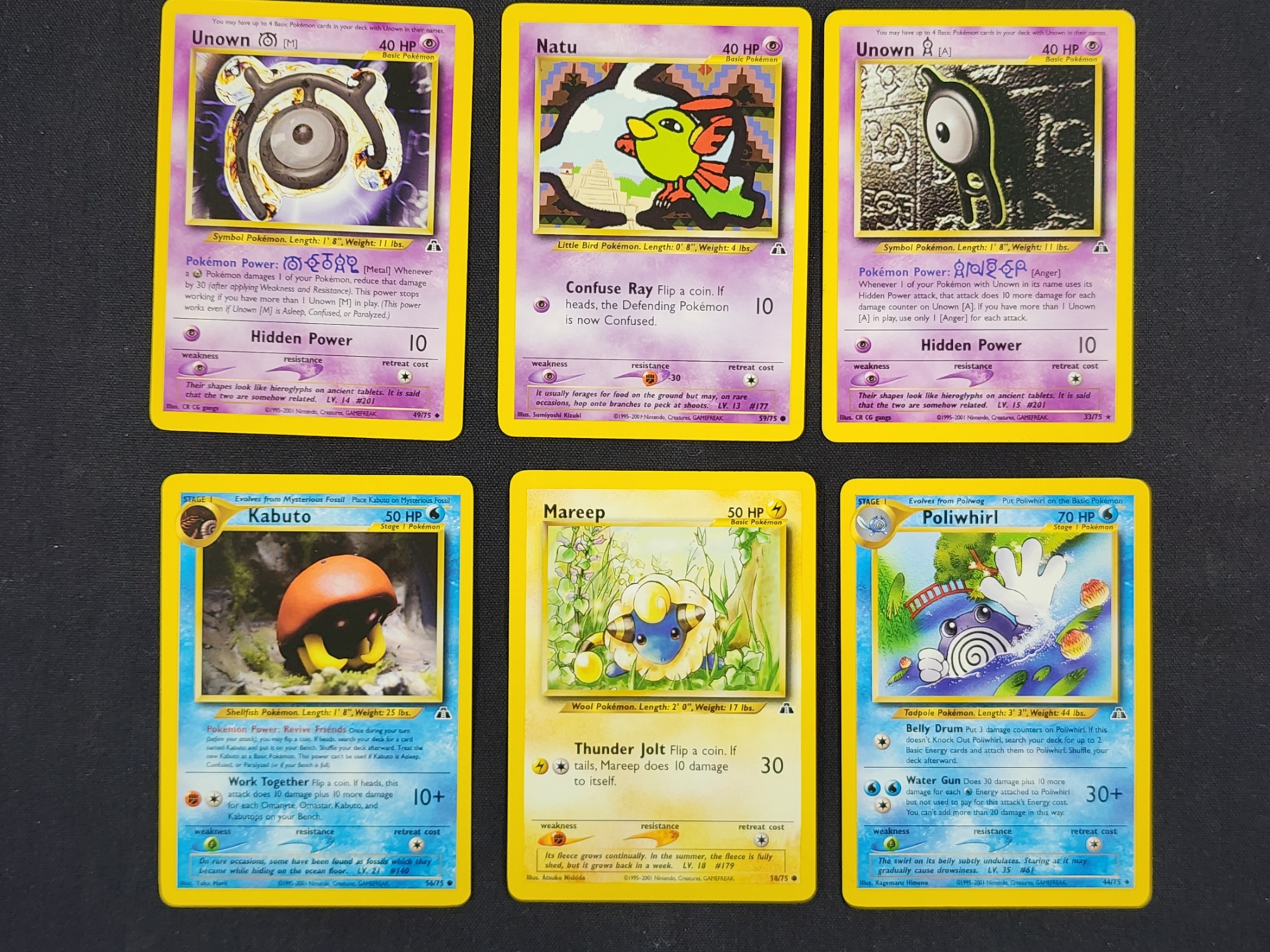 Lot of Six Assorted Neo Discovery Pokemon Trading Cards Including Unown & Poliwhirl