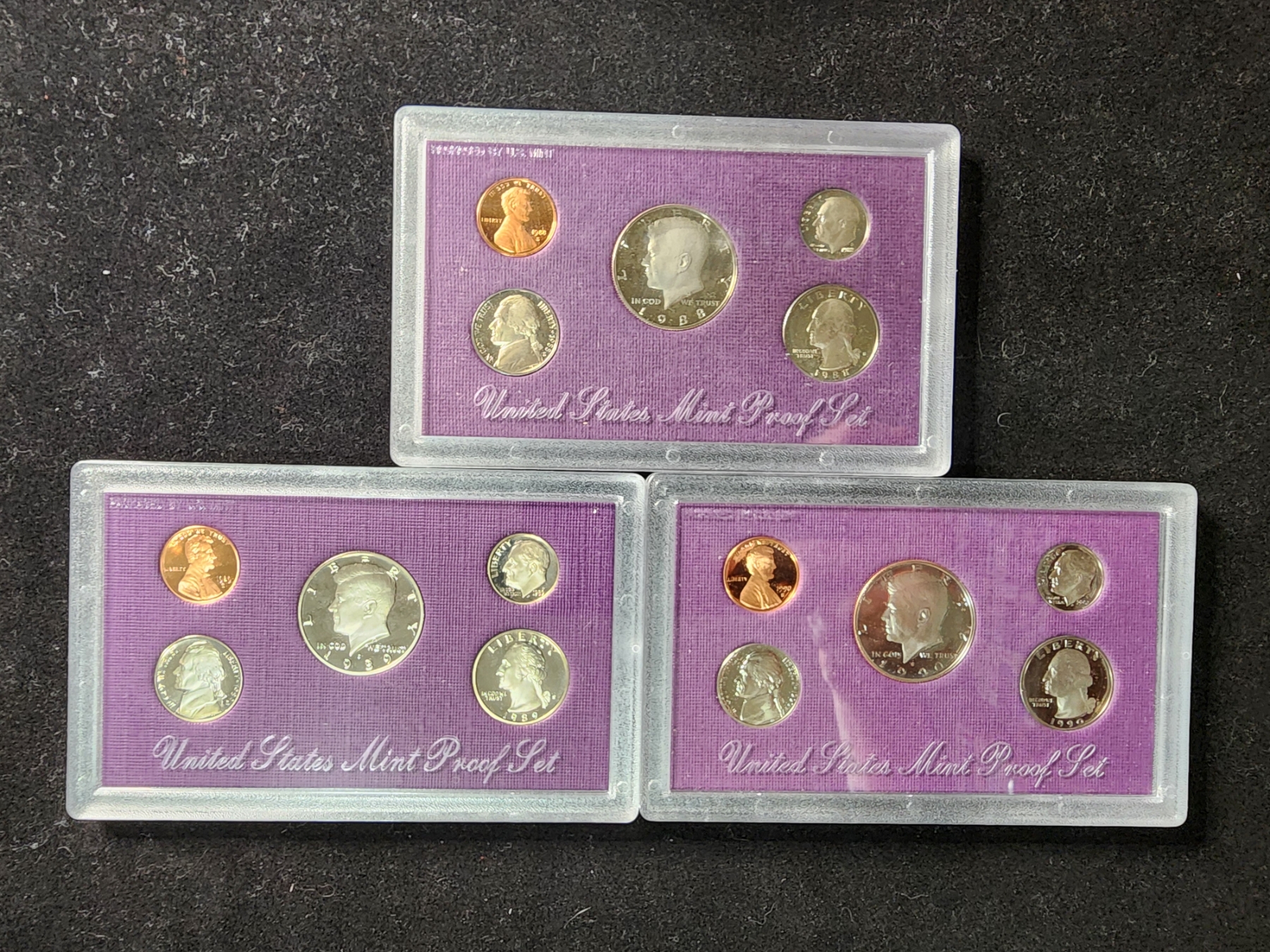Lot of Three United States Mint Proof Sets - 1988, 1989 & 1990