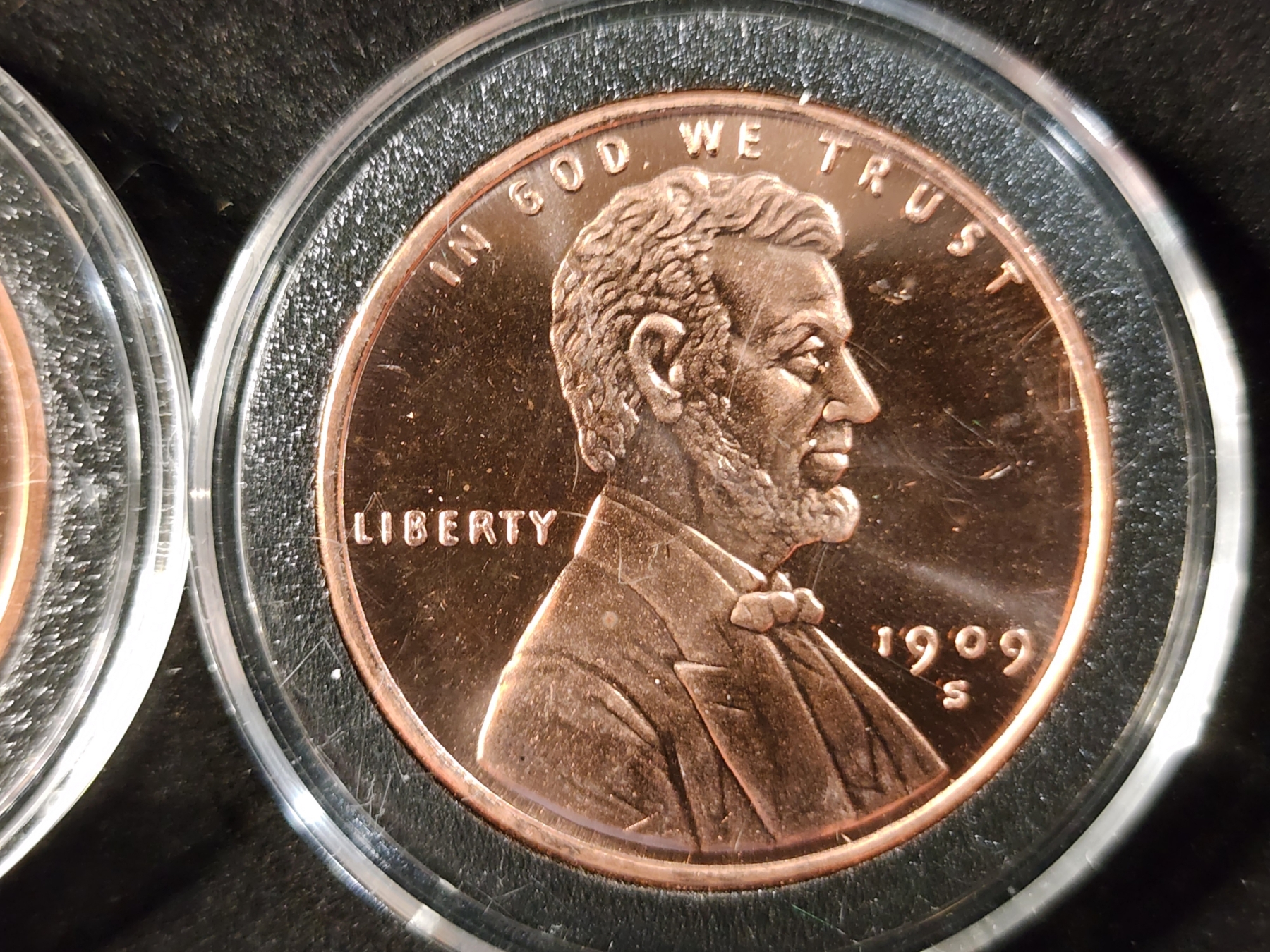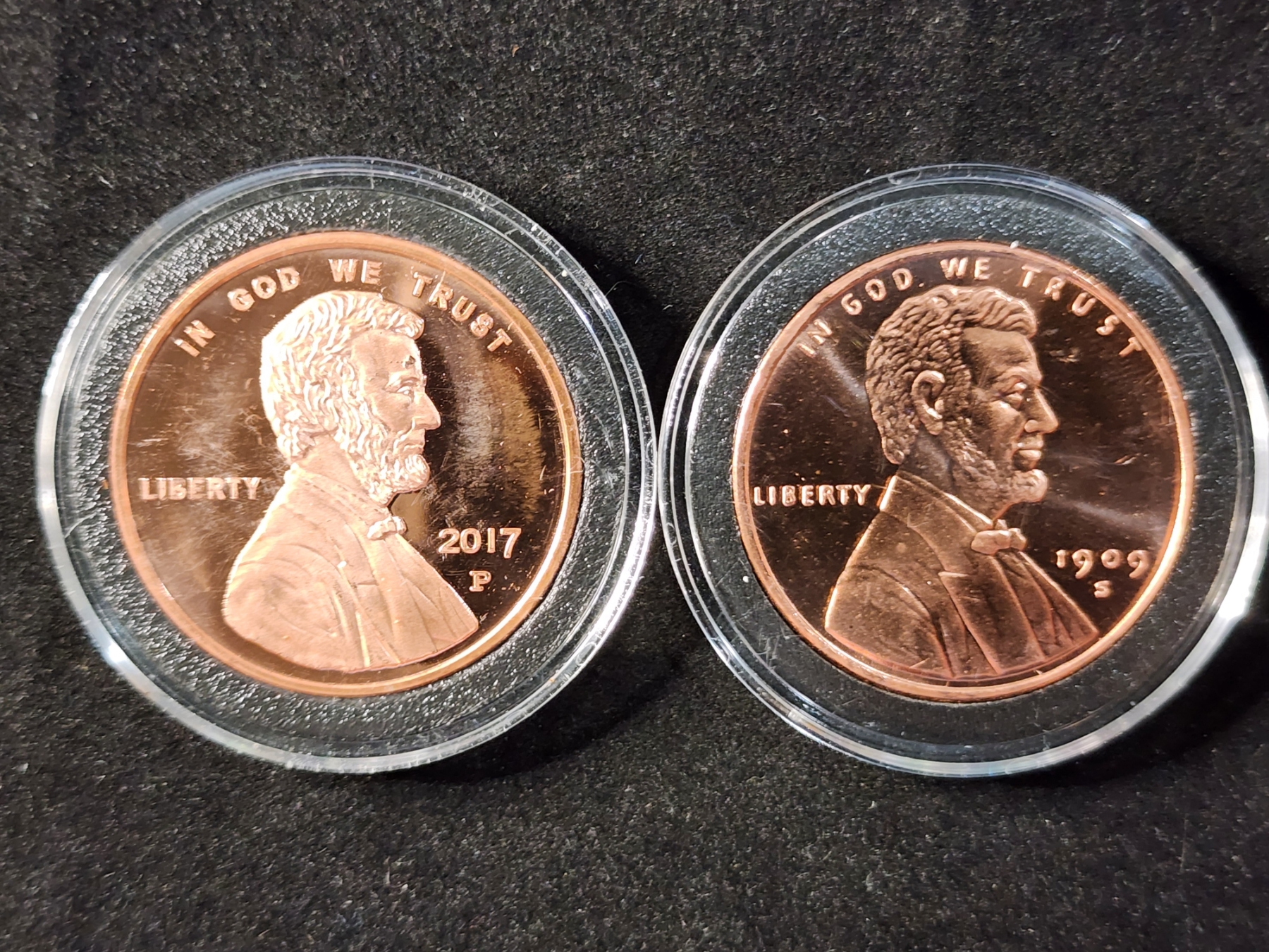 Lot of Two .999 Fine Copper AVDP Ounces in Protective Cases - 2017-P & 1909-S VDB Penny DESIGNS