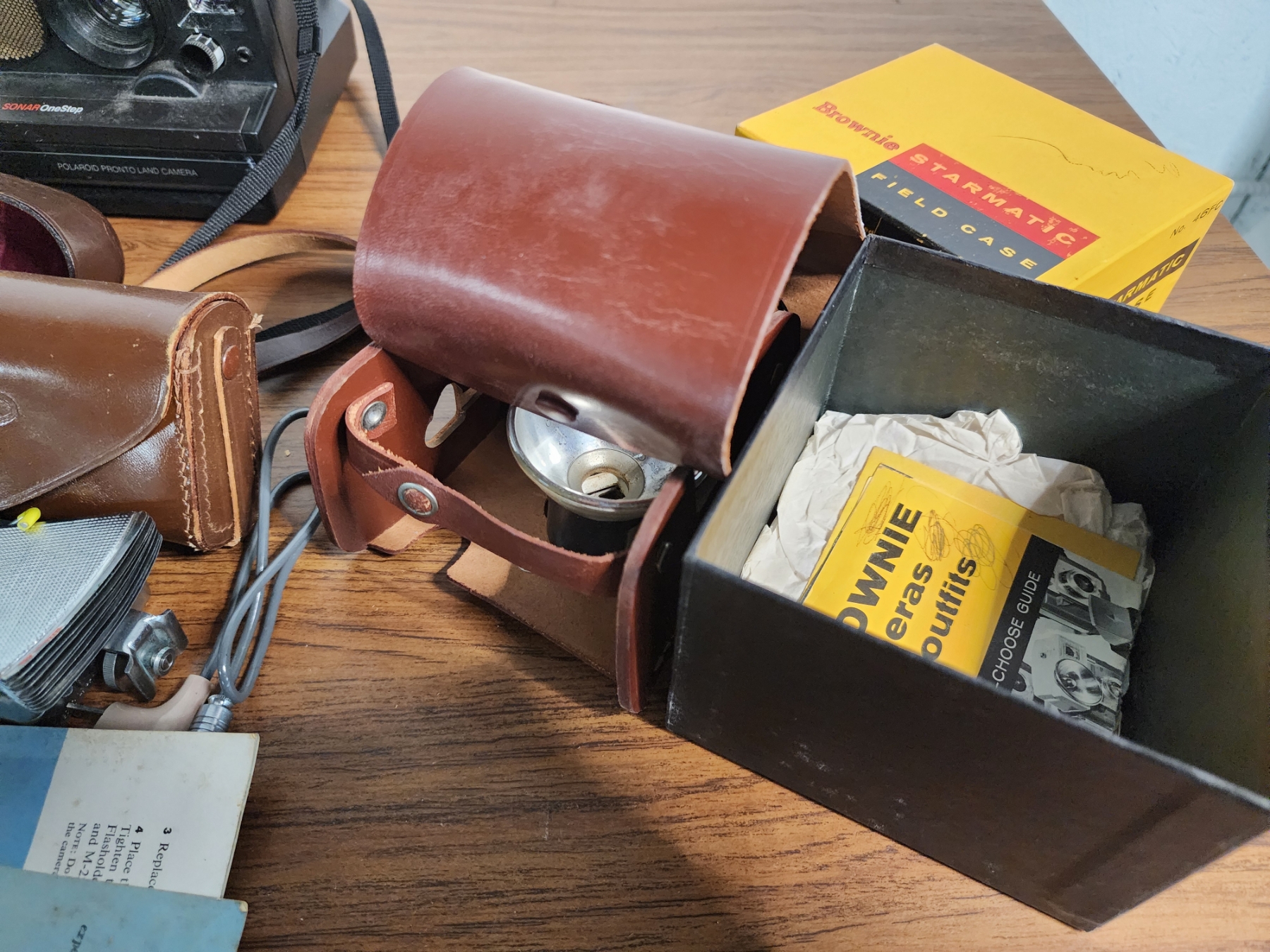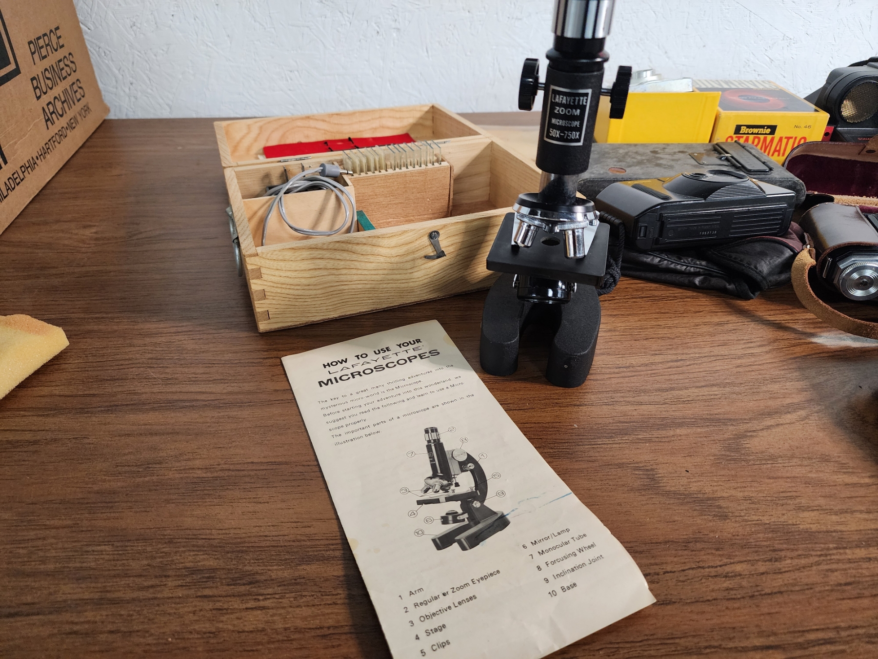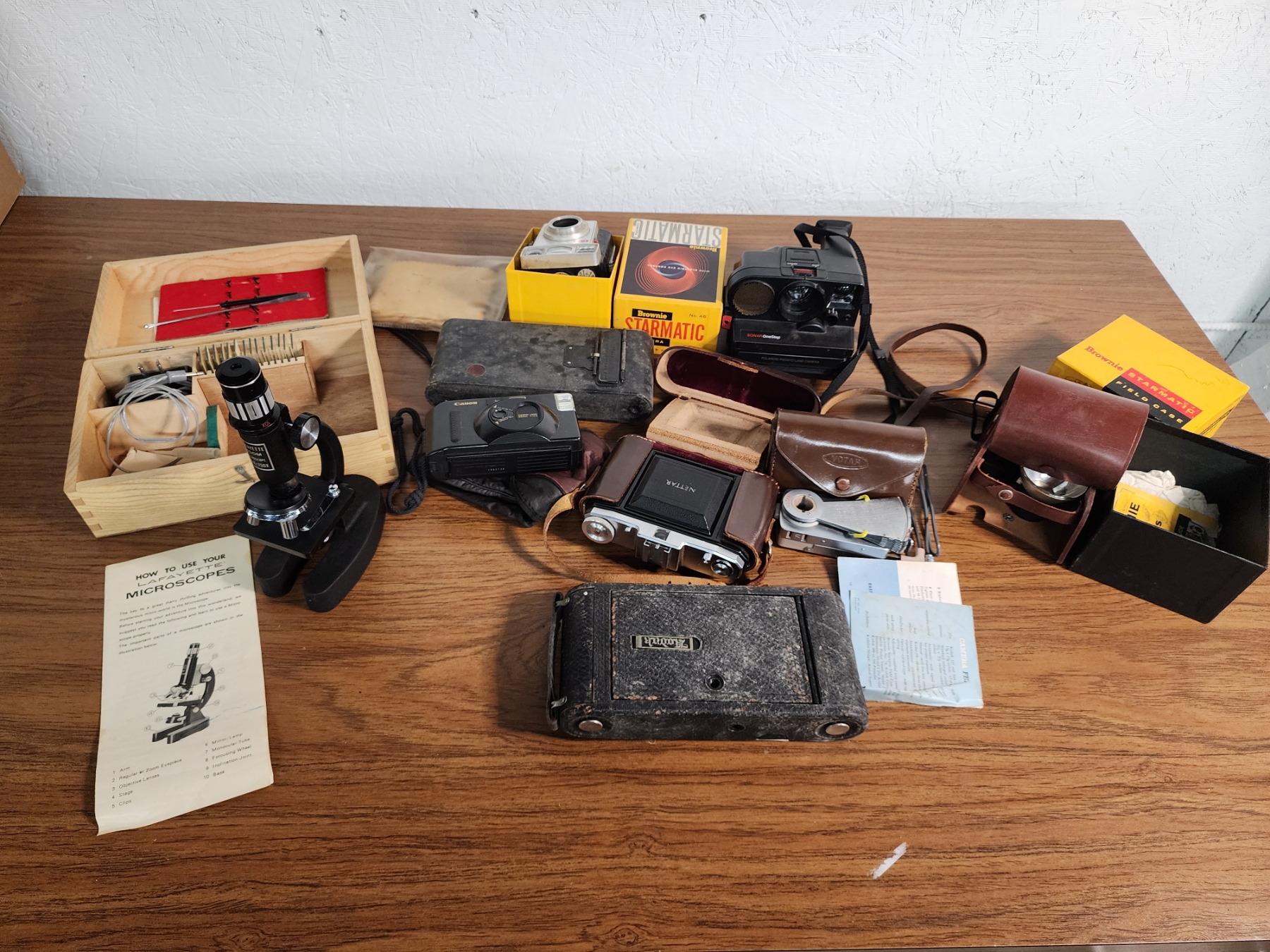 Lot of Vintage Cameras, Cases, and Vintage Lafayette Microscope - Like New!