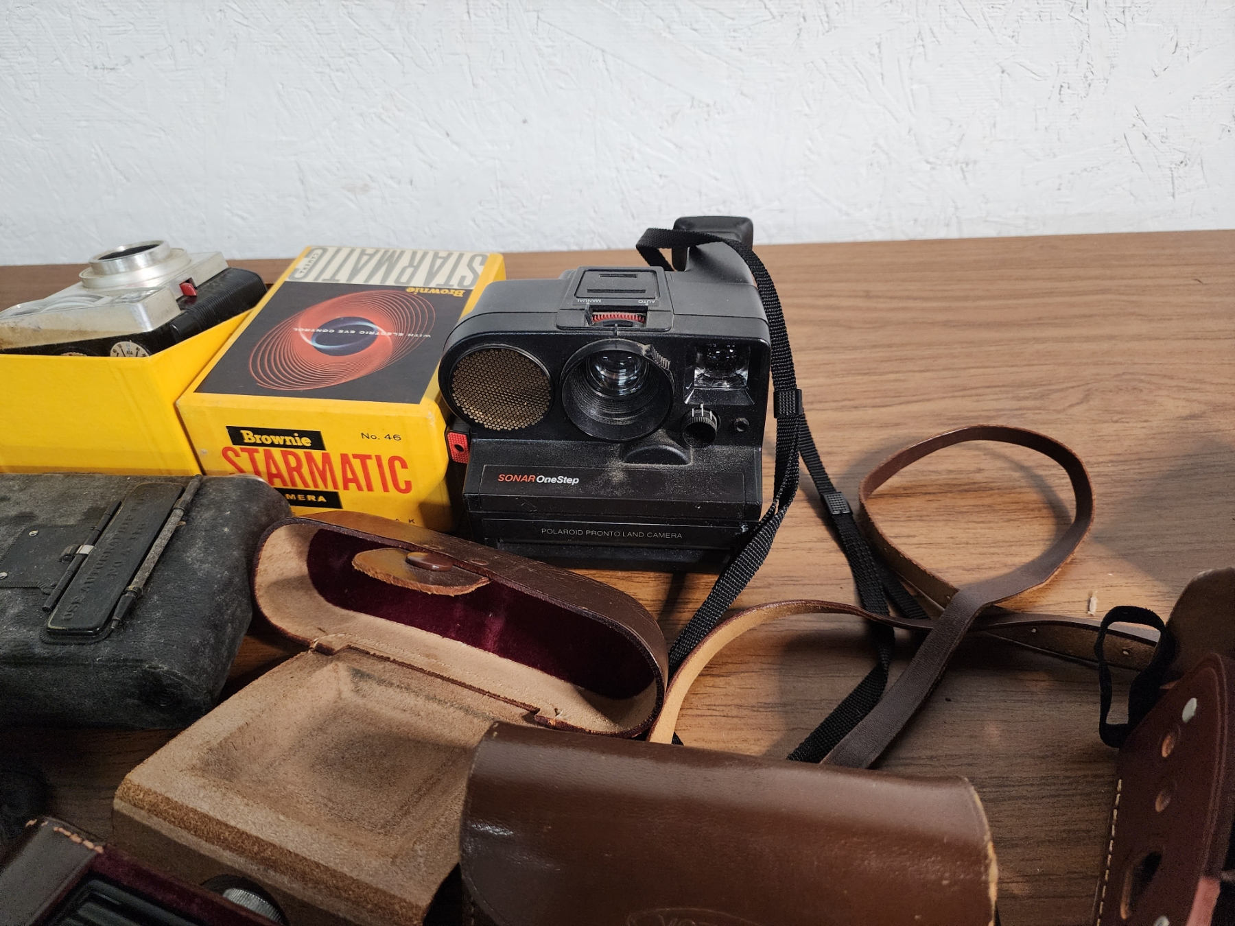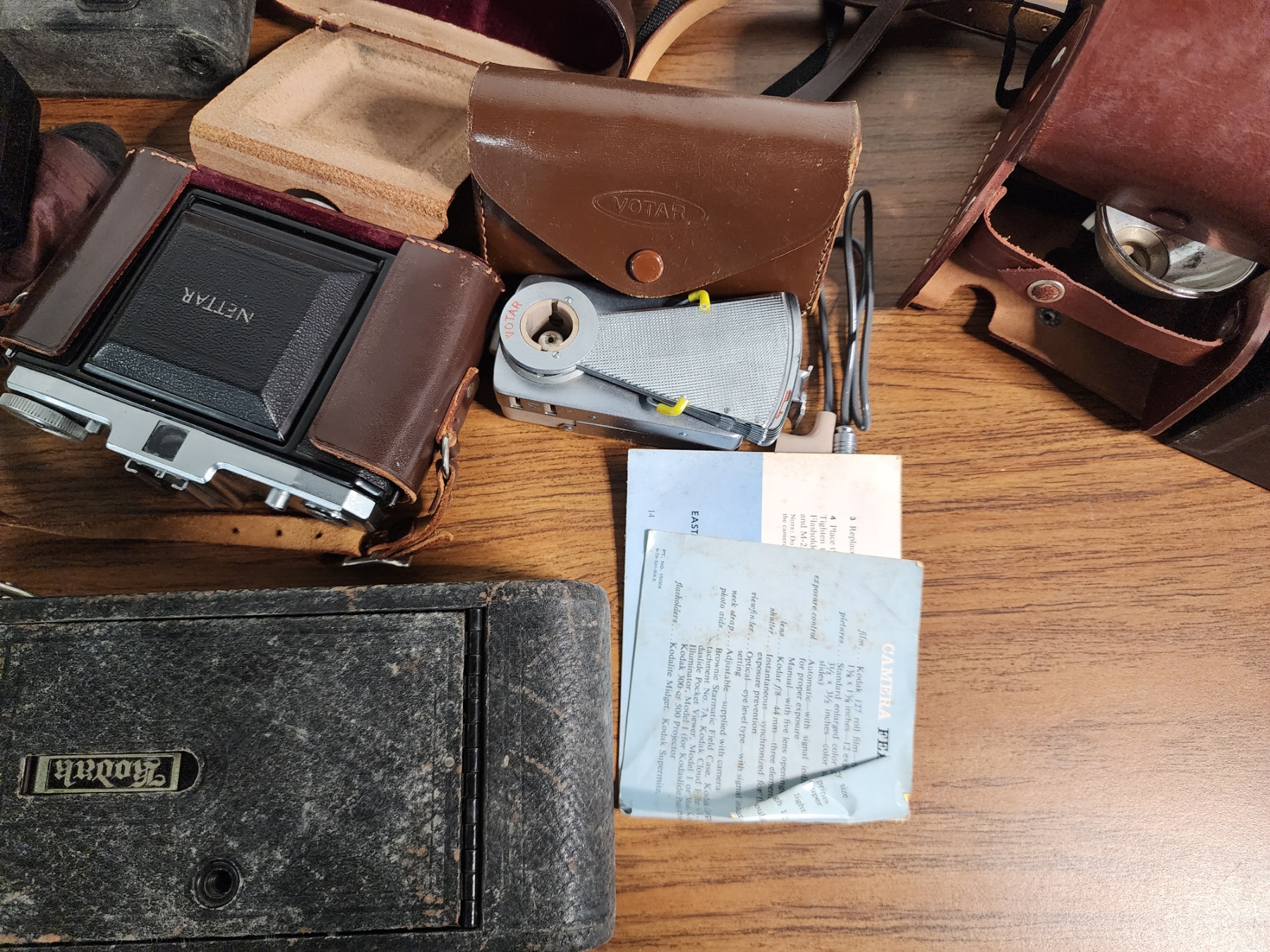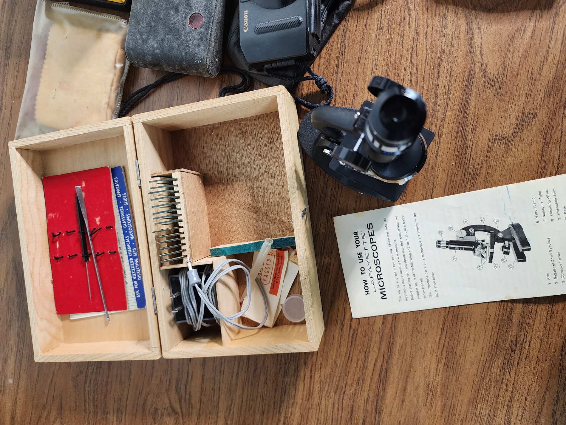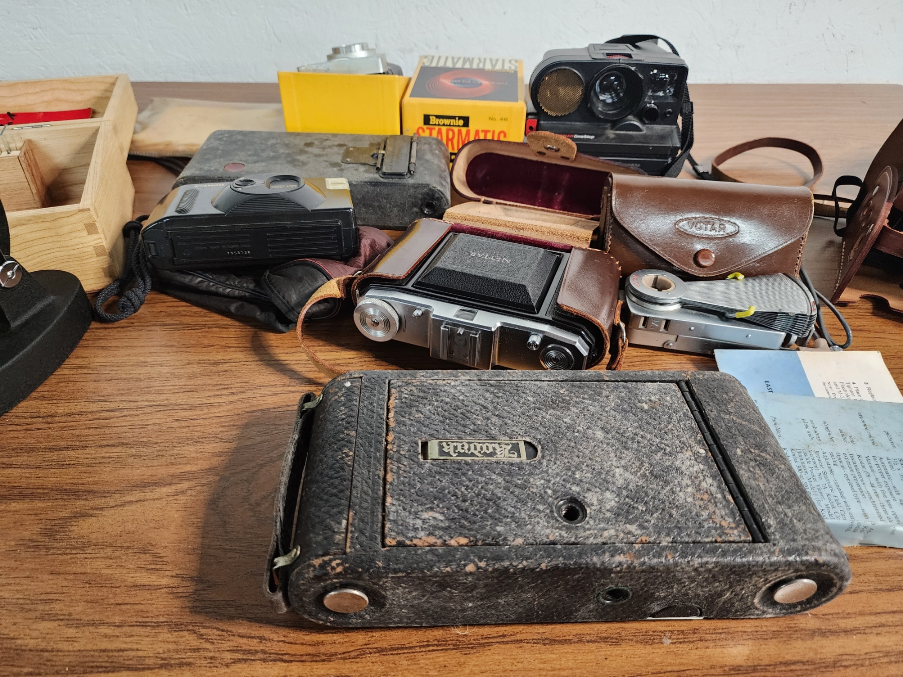 Lot of Vintage Cameras, Cases, and Vintage Lafayette Microscope - Like New!