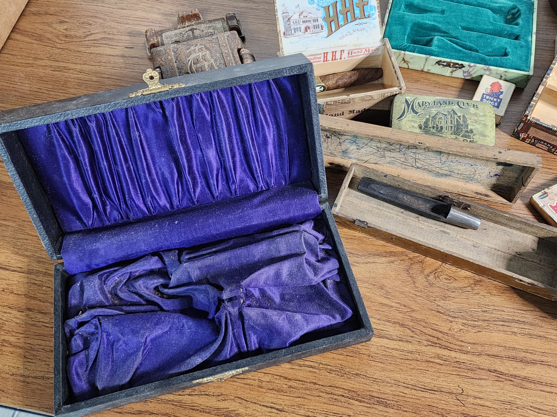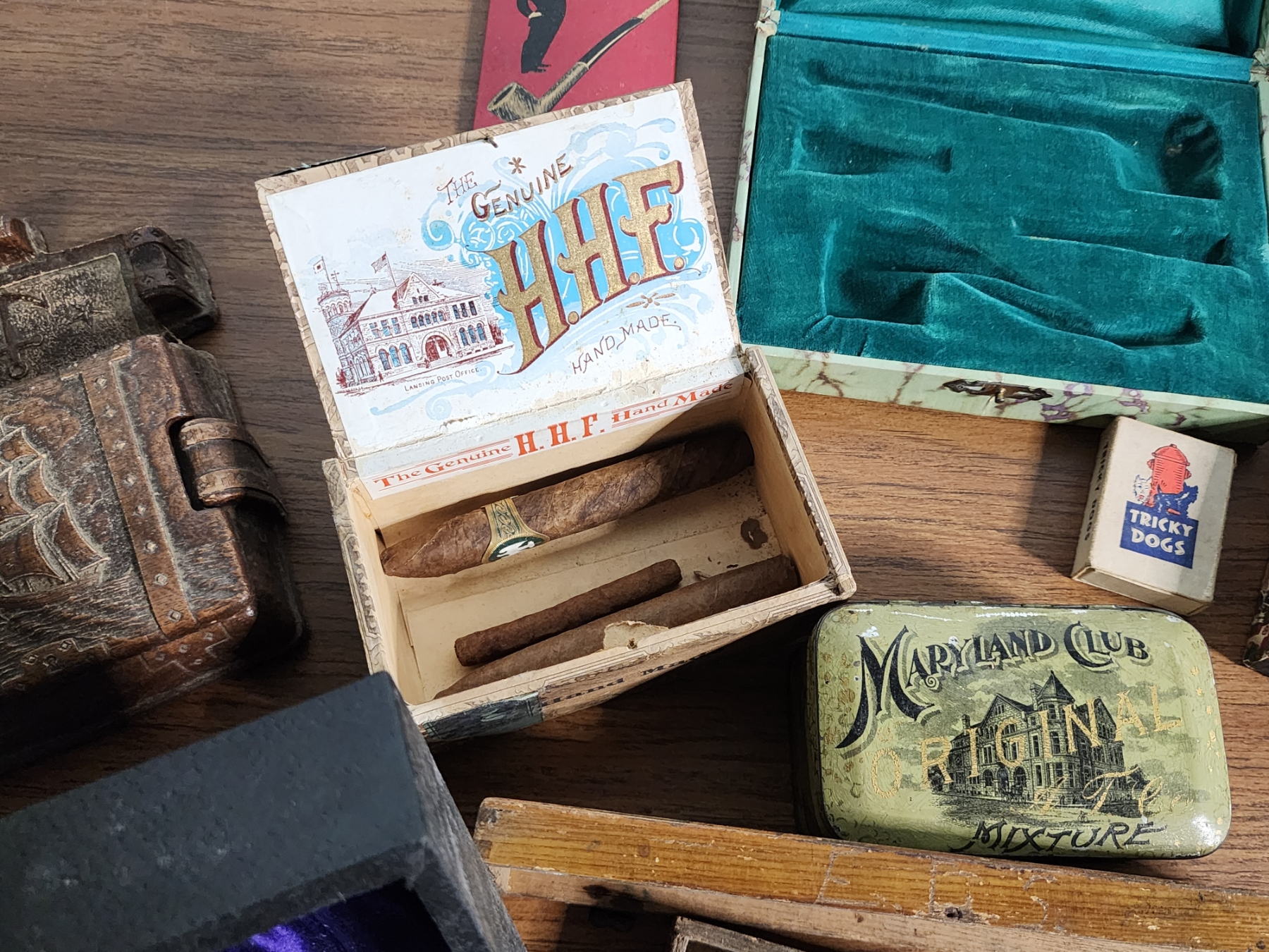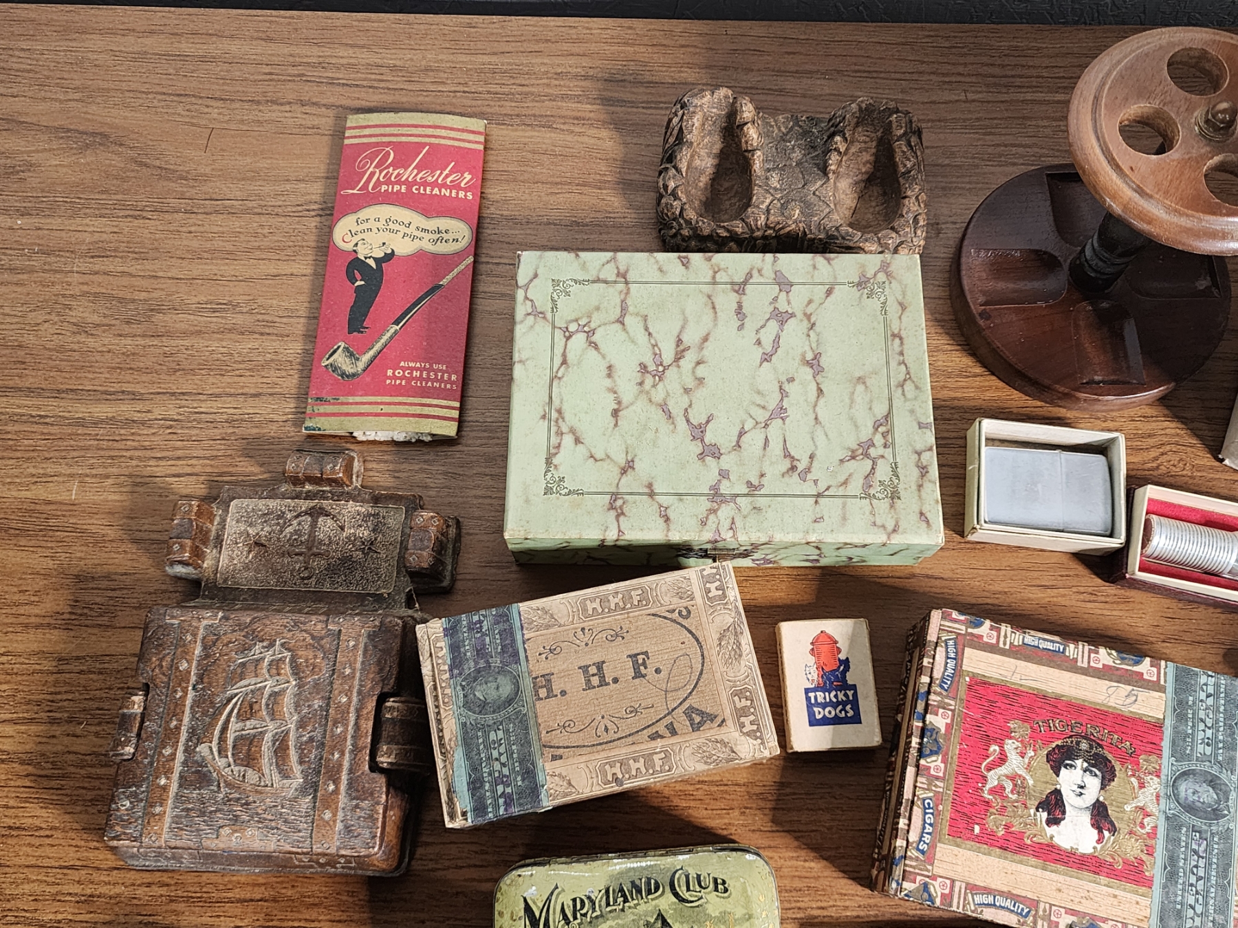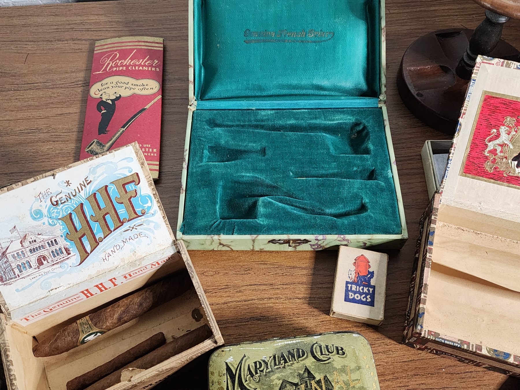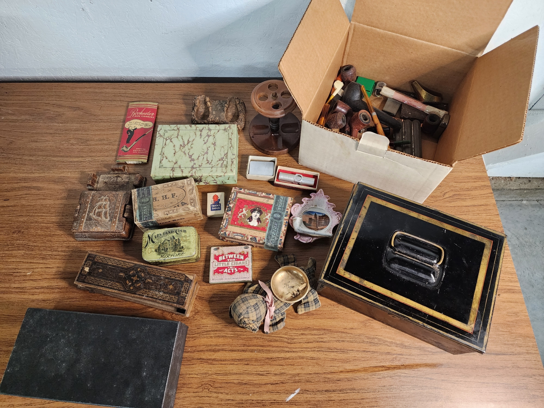 Lot of Vintage Cigar Boxes, Pipes, and Accessories