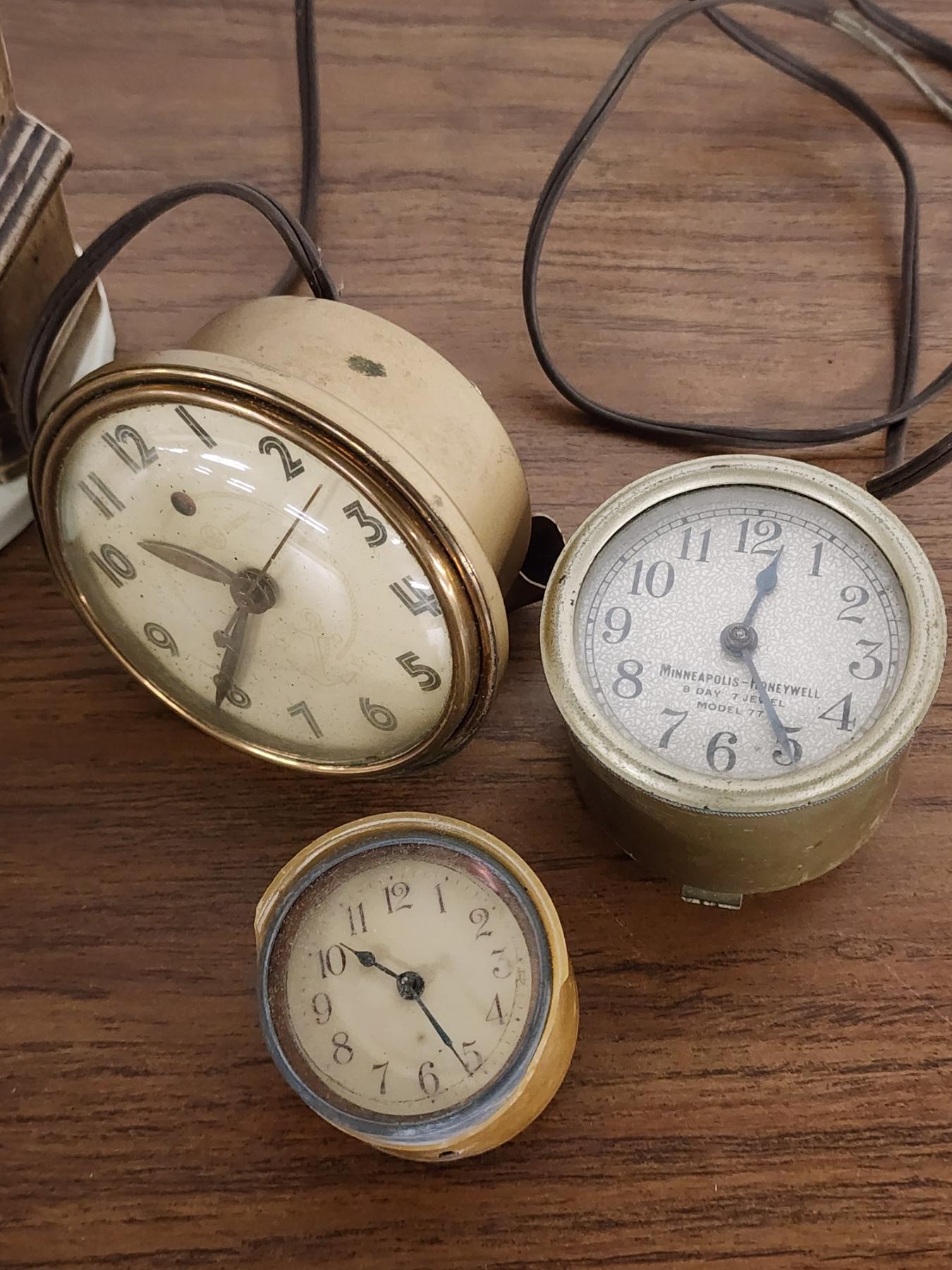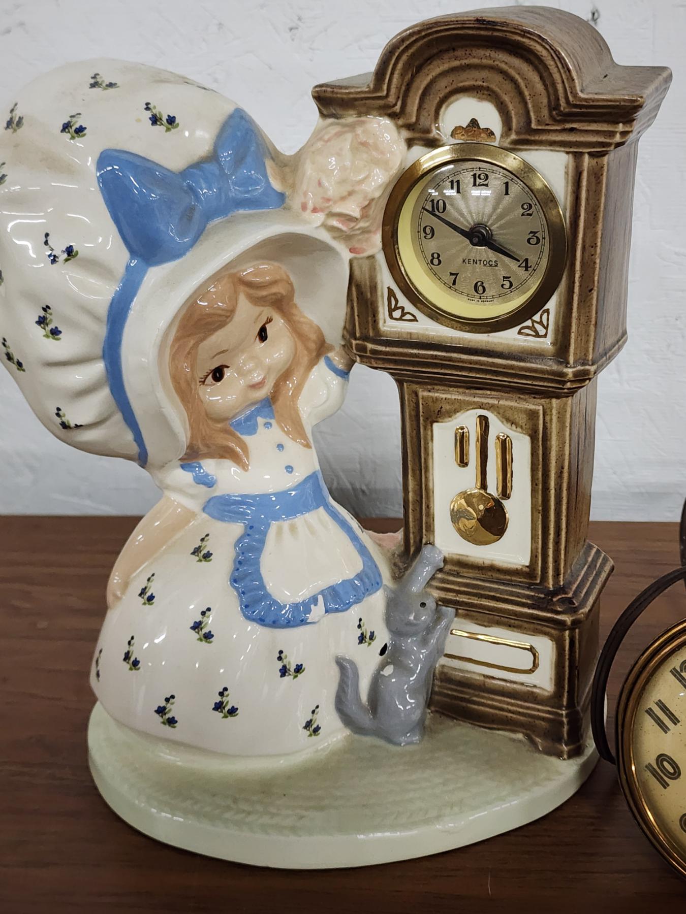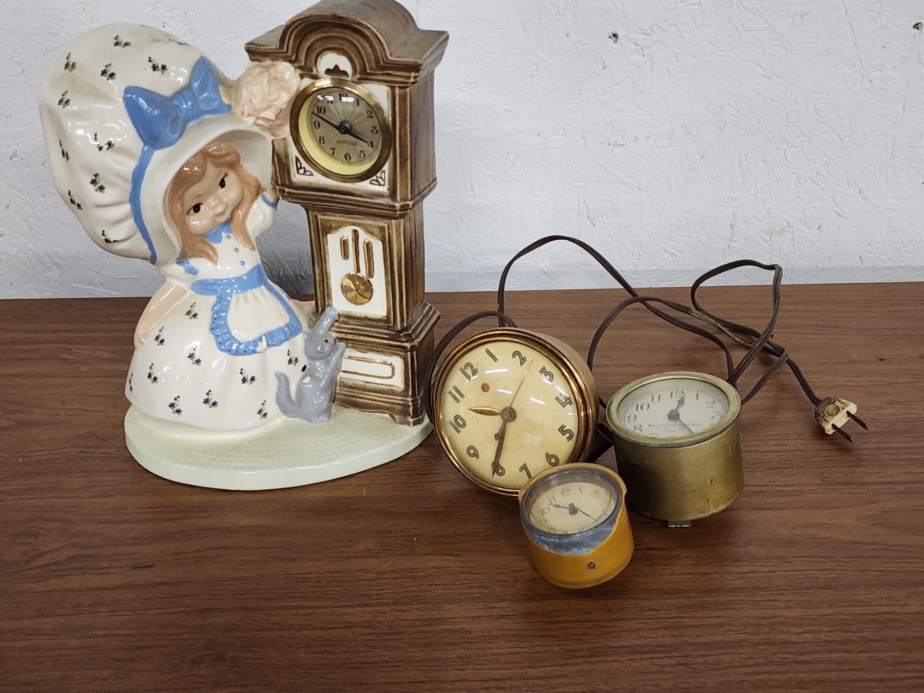 Lot of Vintage Clocks and Grandfather Clock Figurine