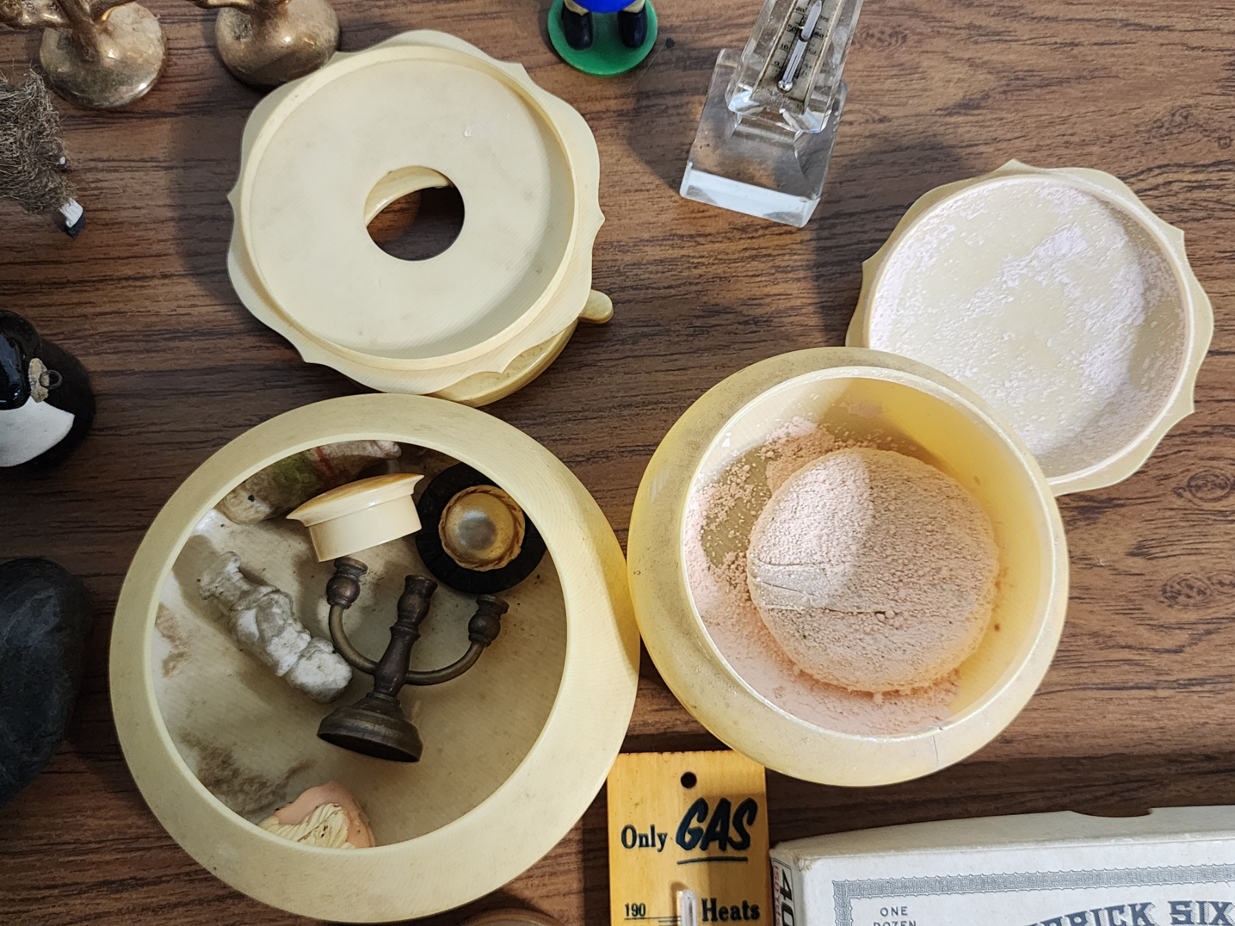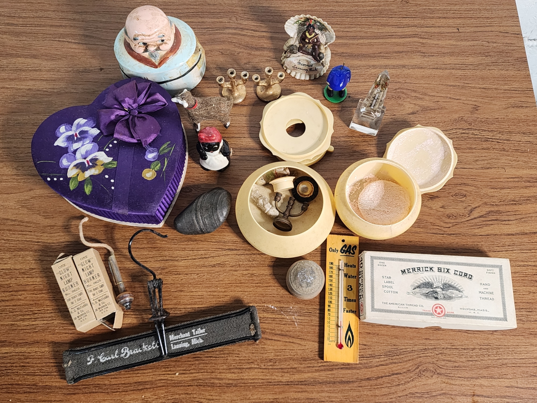Lot of Vintage Collectibles Including Cigar Box, Advertising Thermometer, Figurines & More!