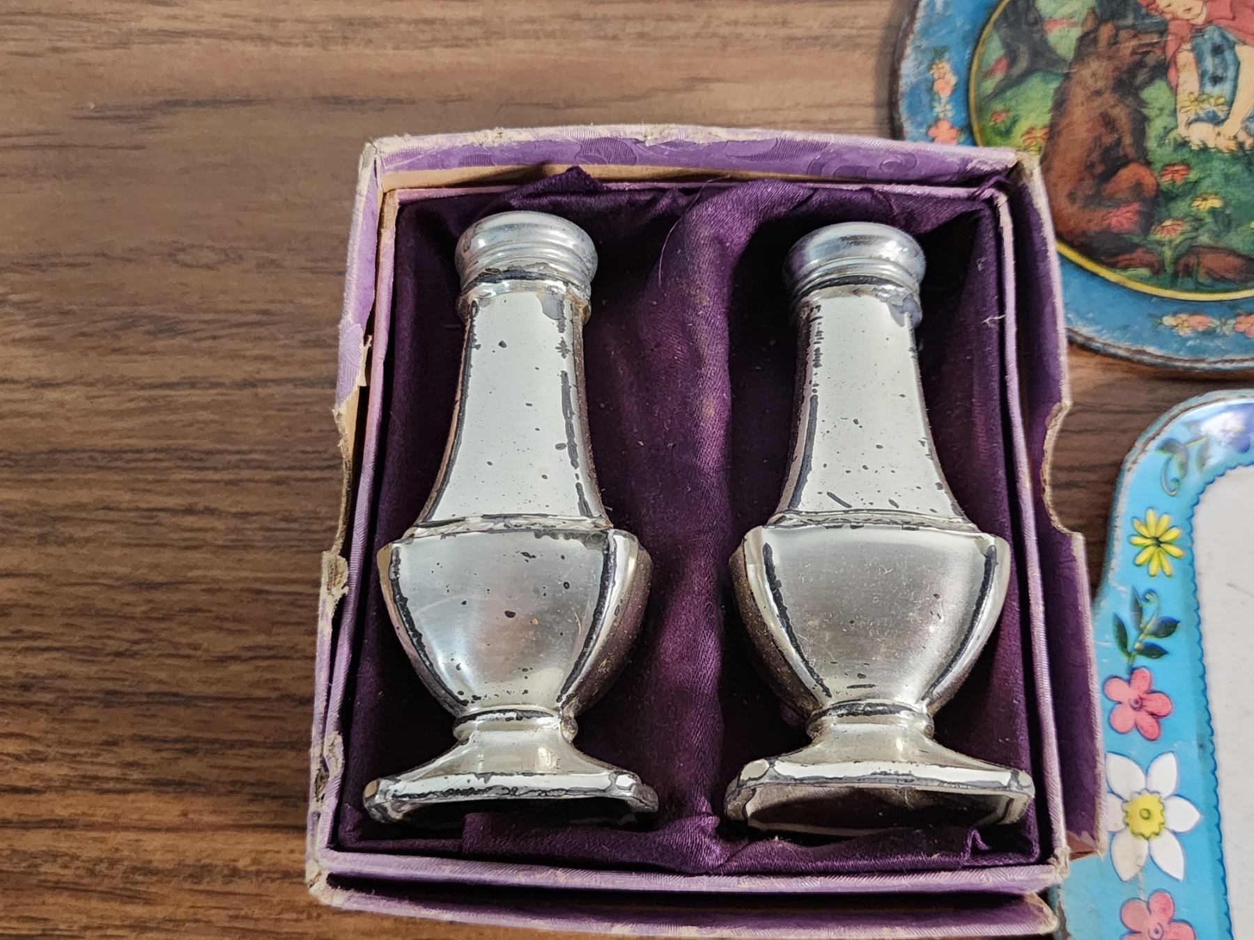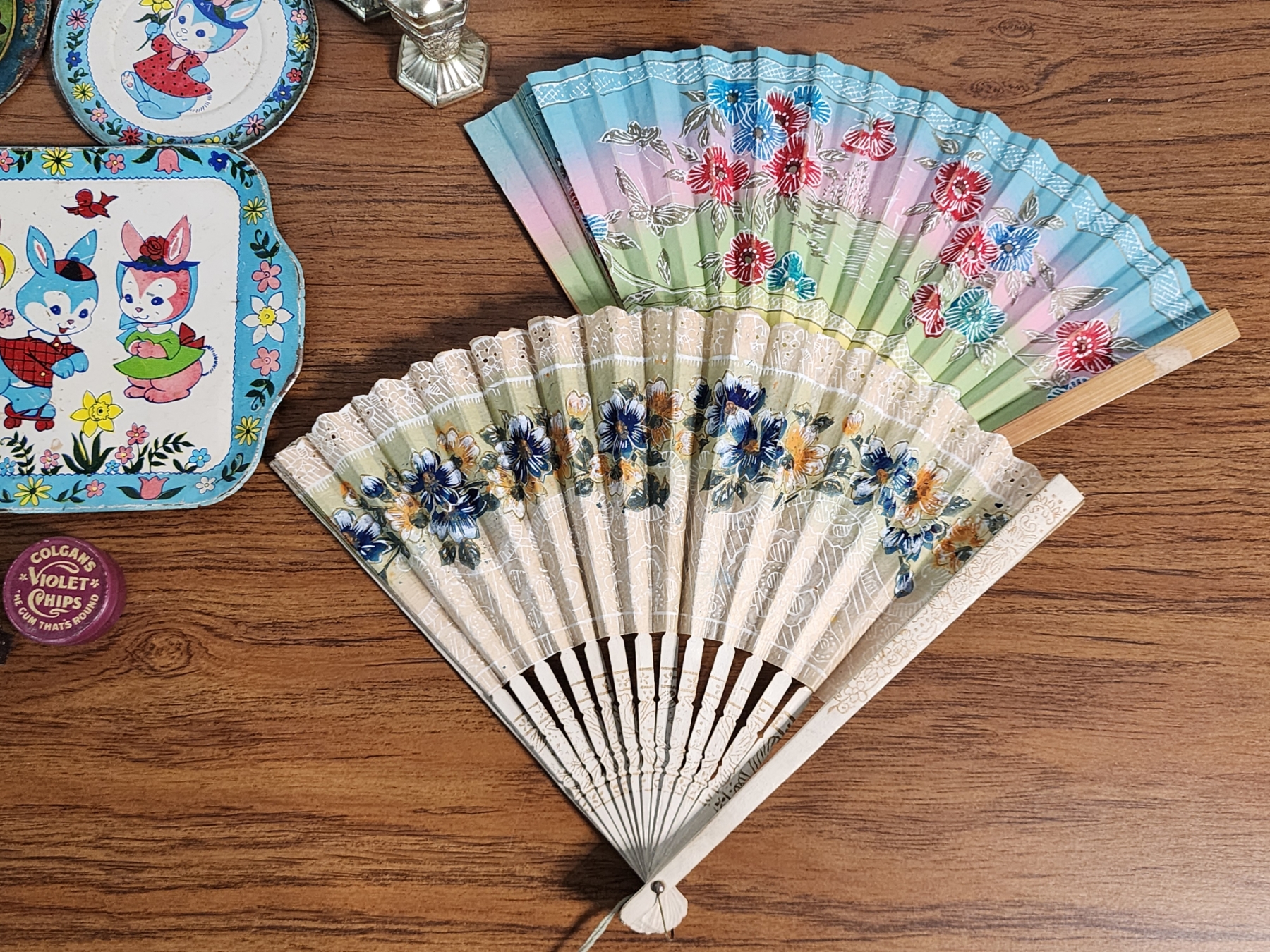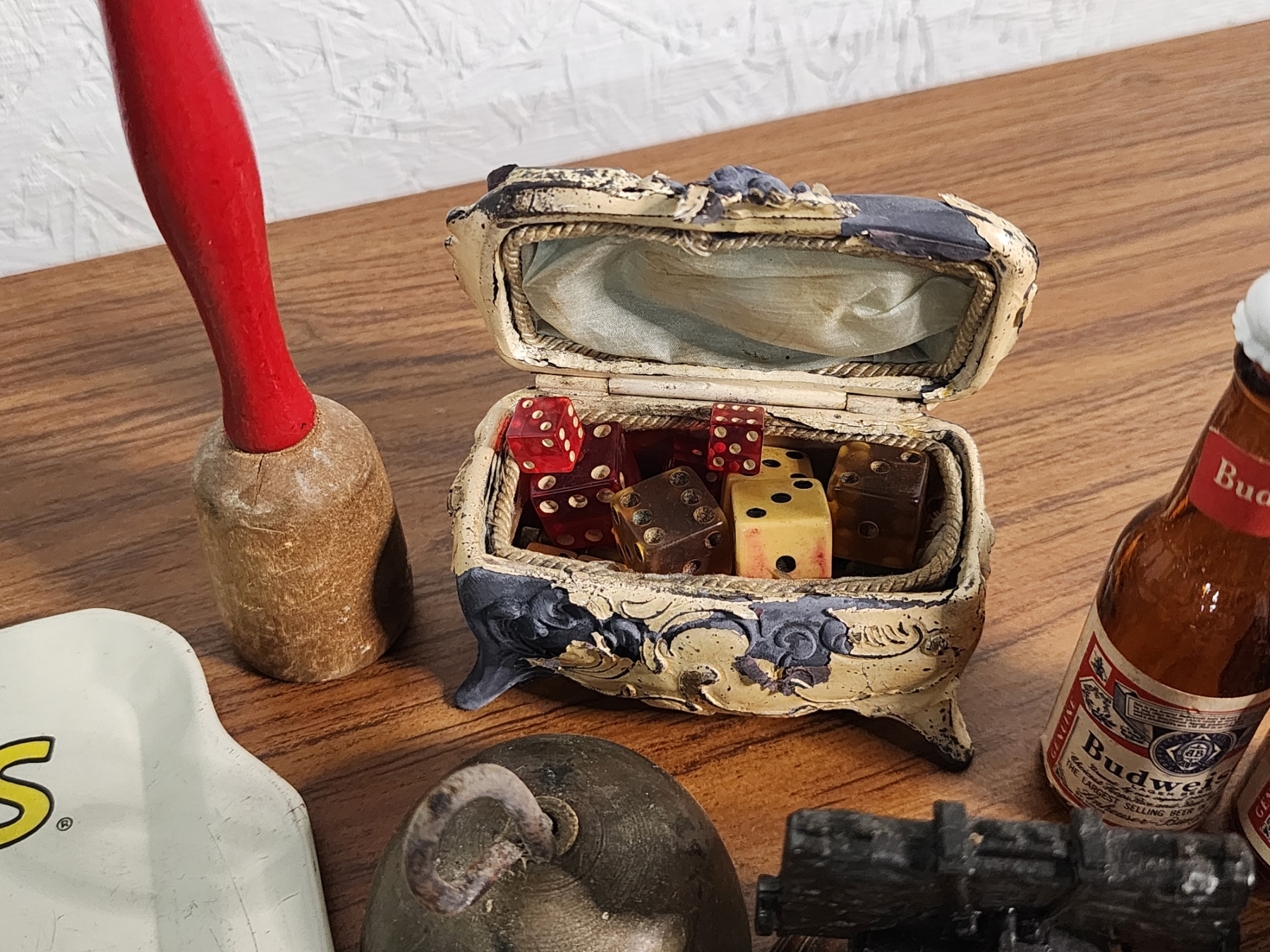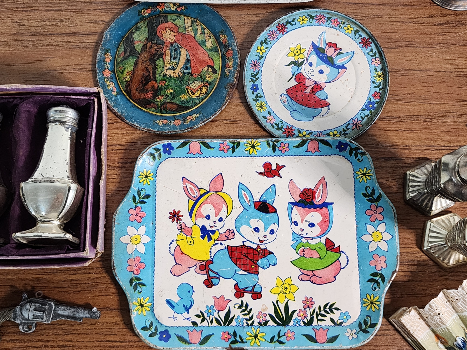 Lot of Vintage Collectibles Including Trays, S&P Shakers, Hand Fans, Dice, Bells