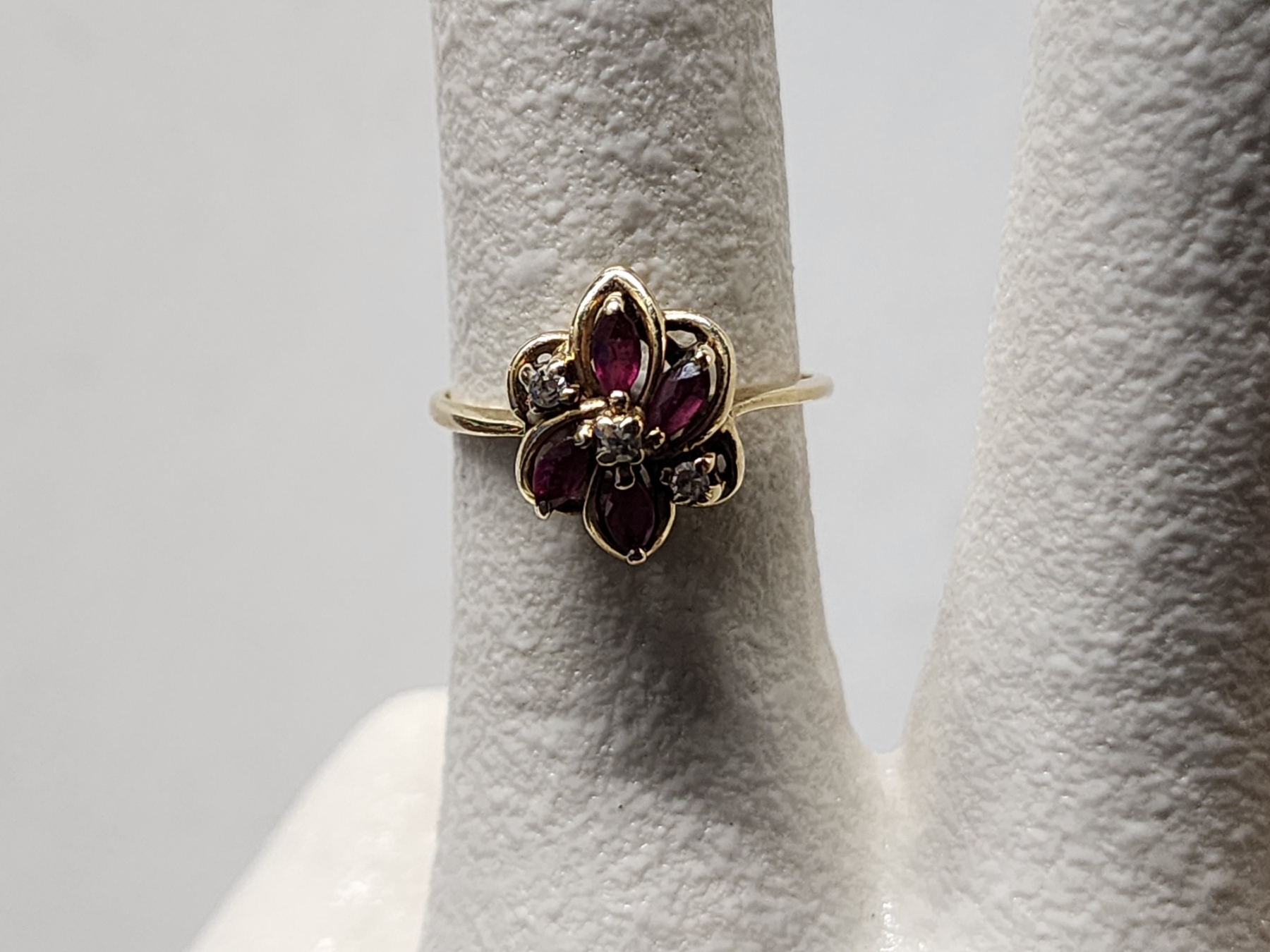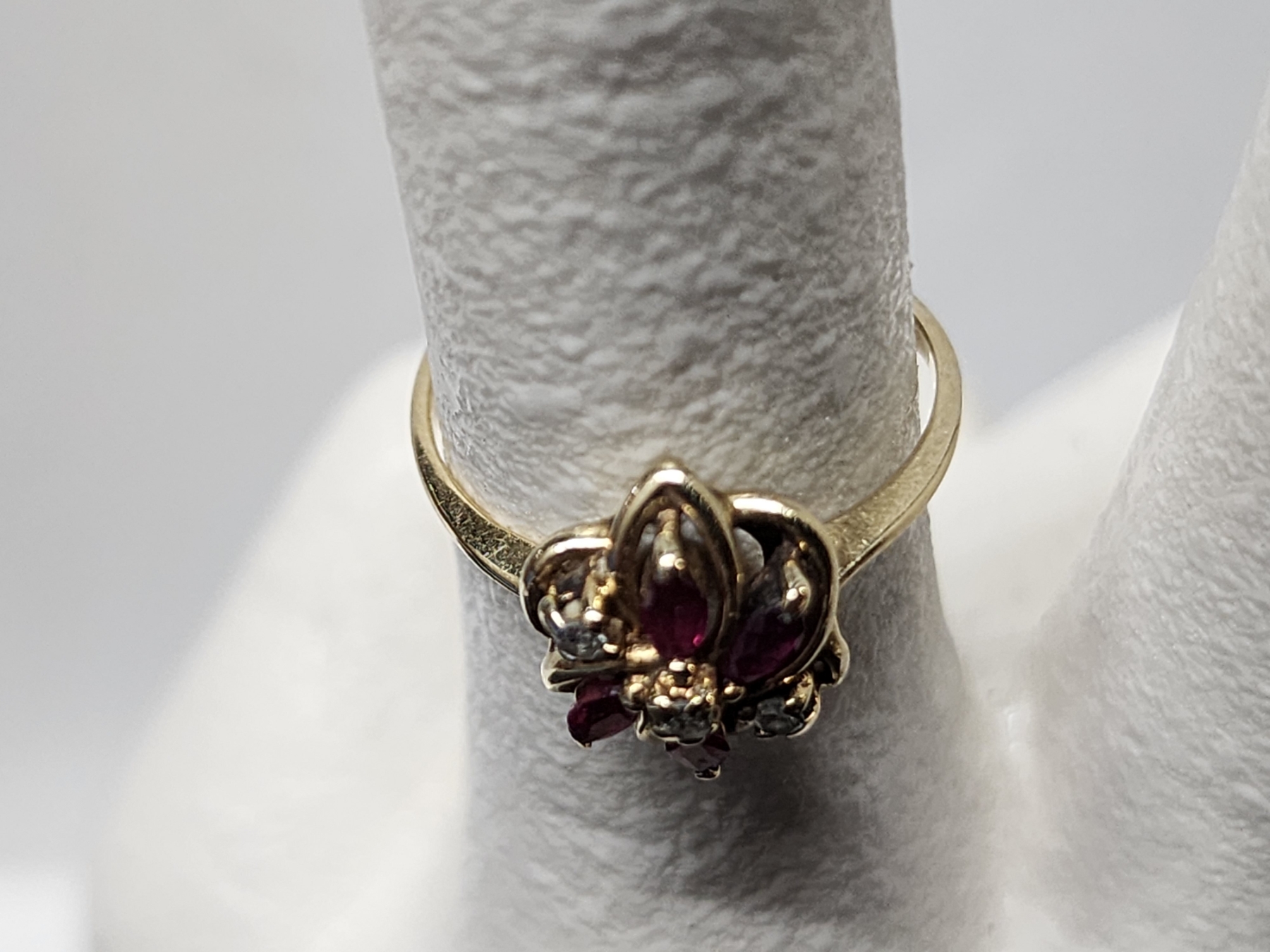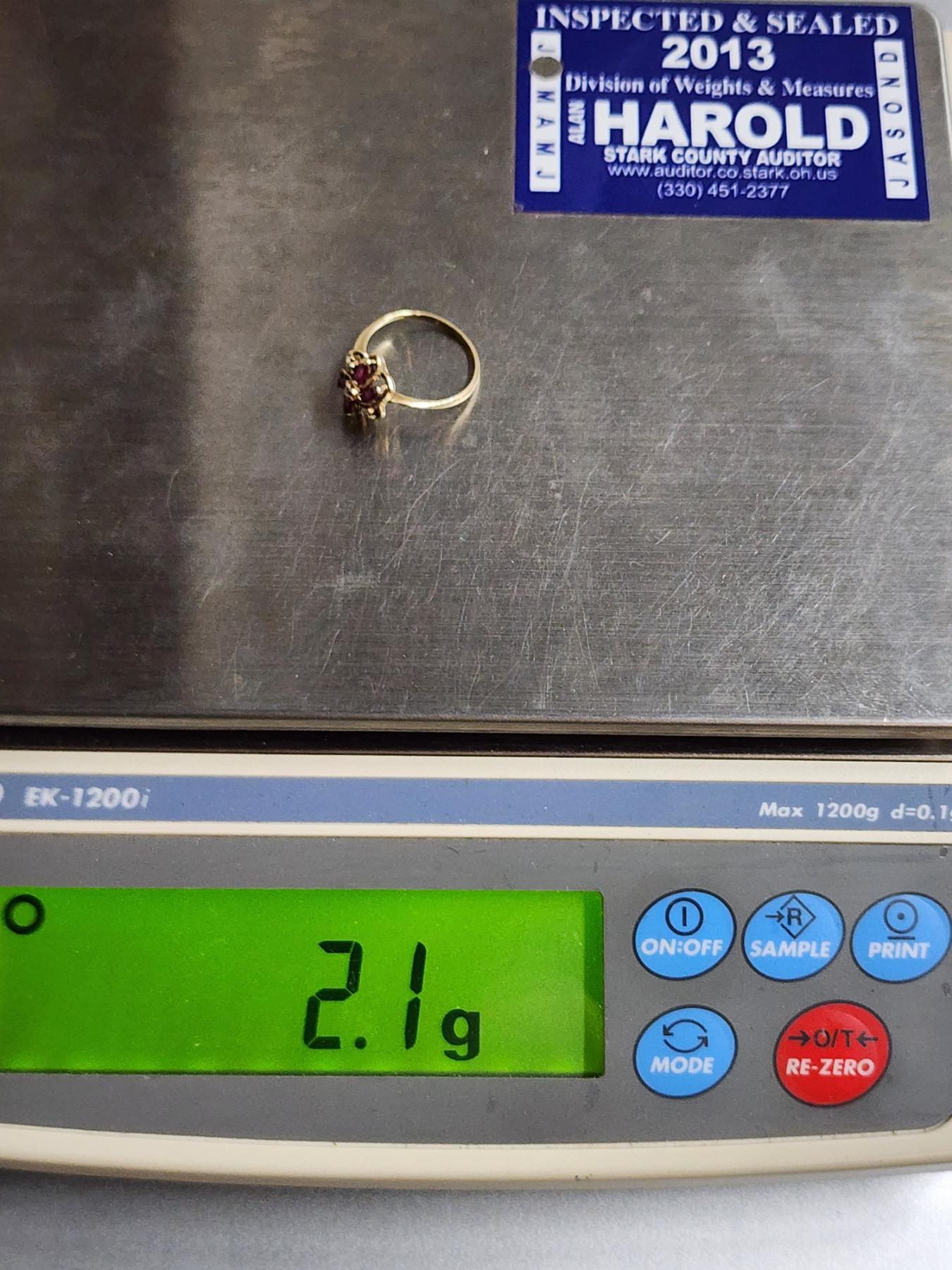 Lovely 14K Gold Ring Sized 7 Featuring Red & Clear Stones Weighing 2.1 Grams