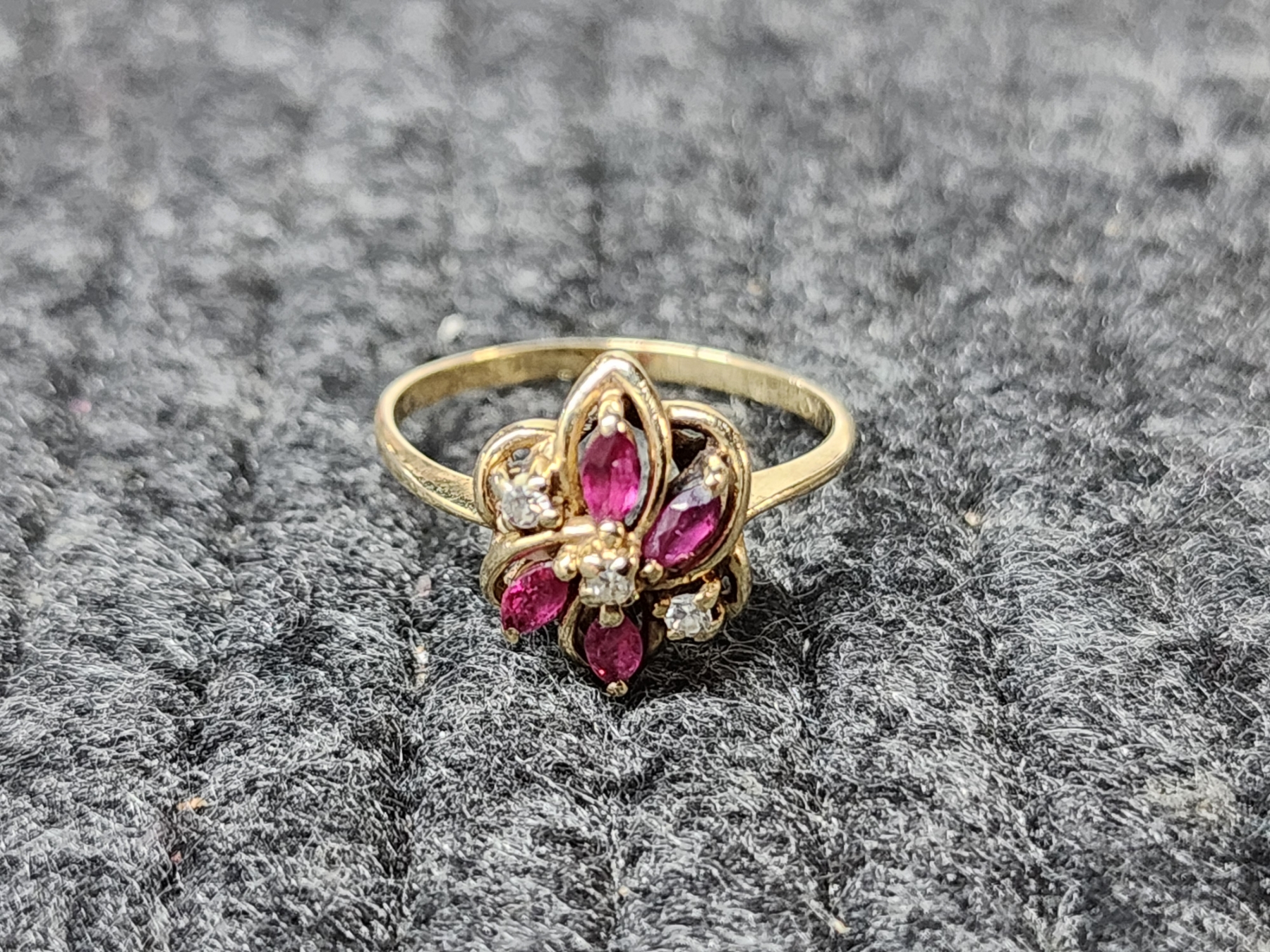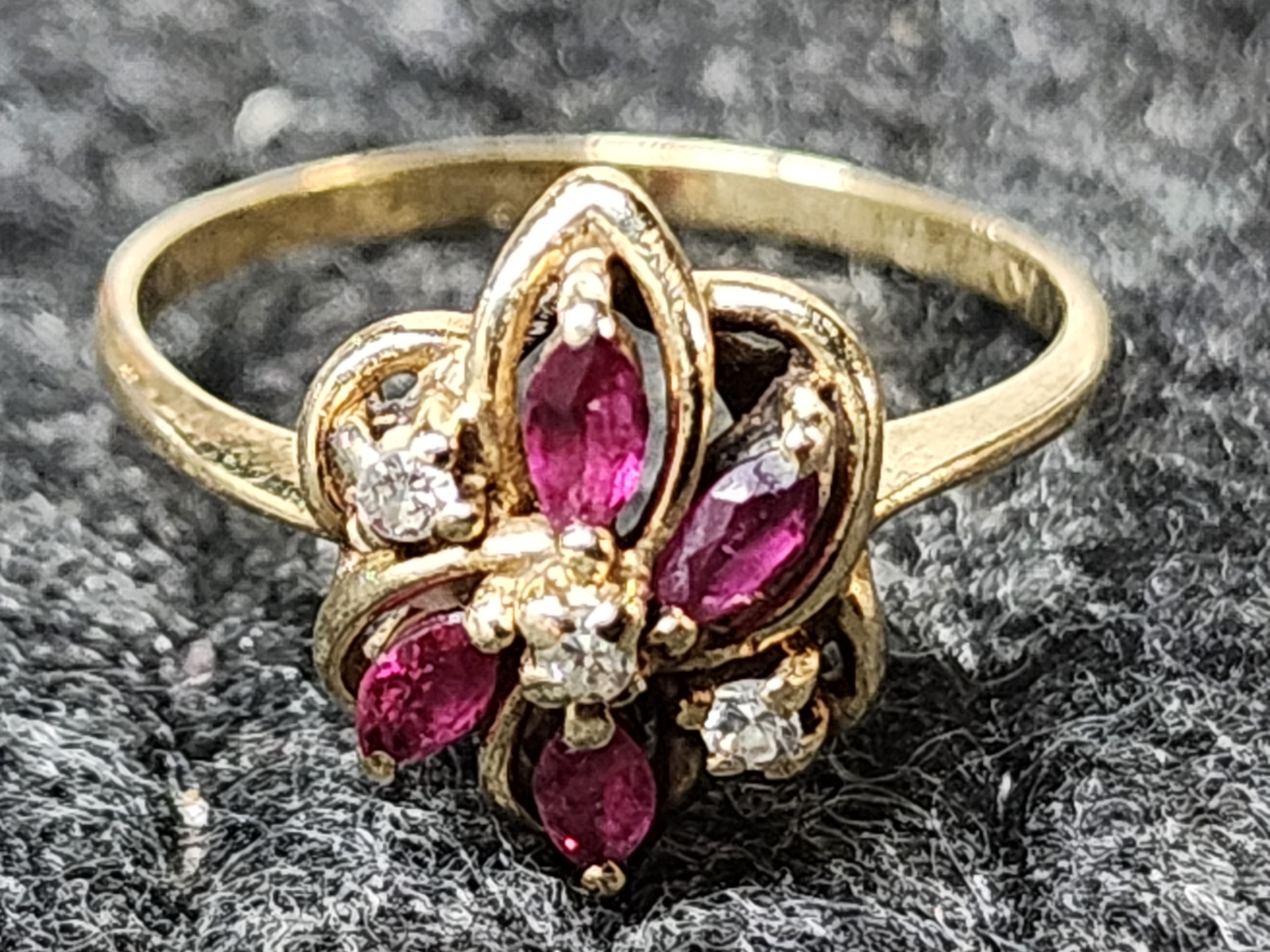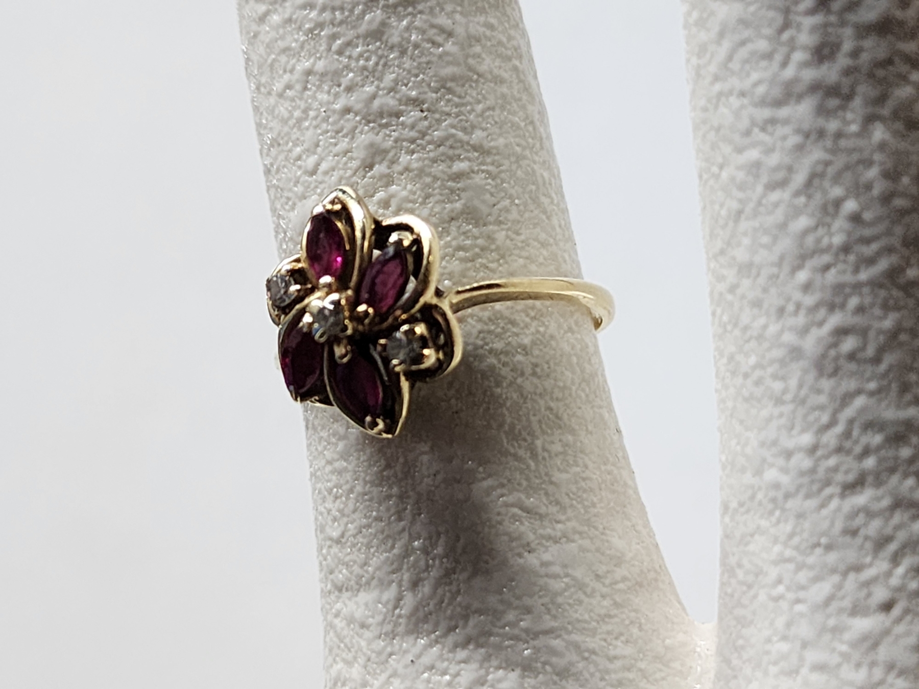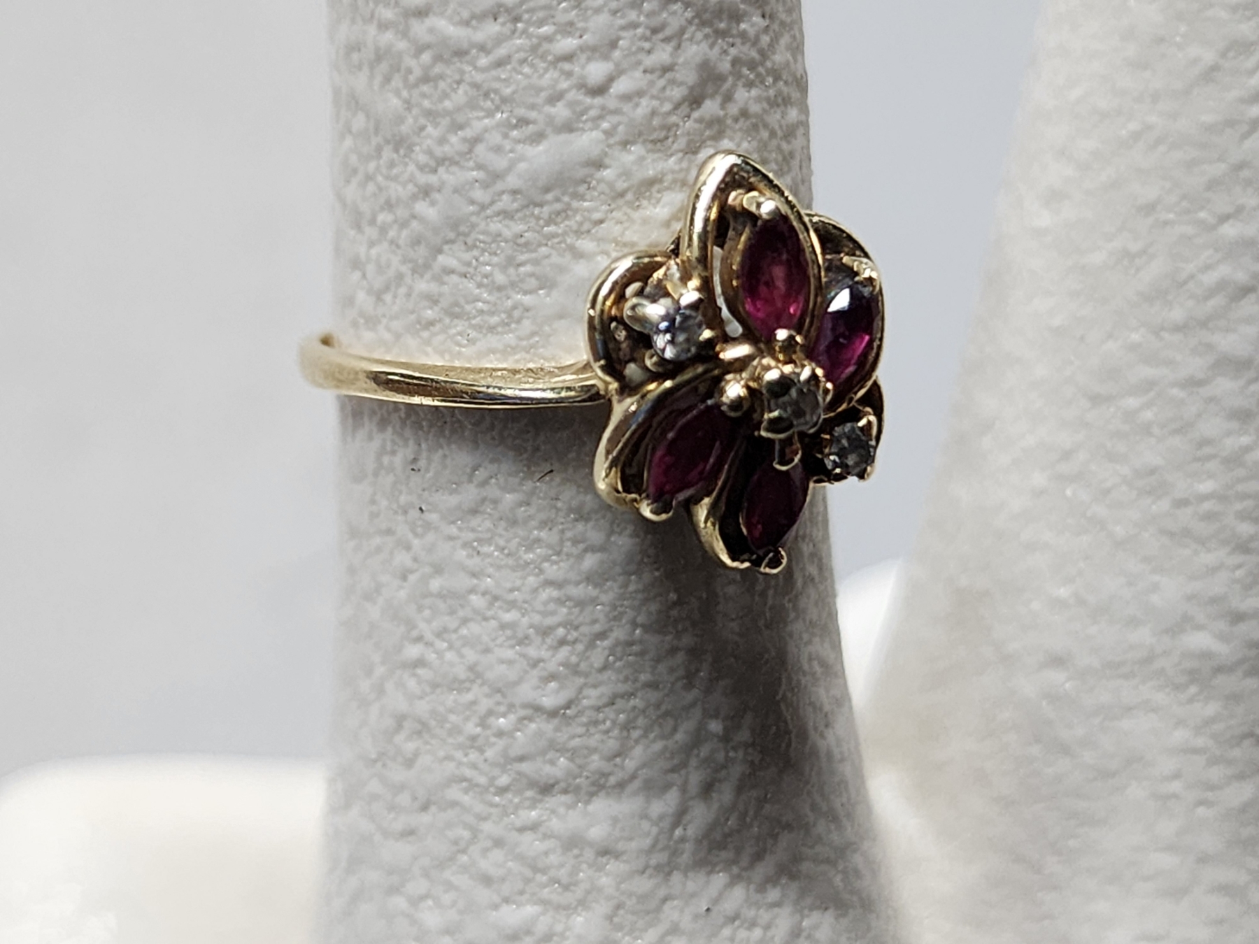 Lovely 14K Gold Ring Sized 7 Featuring Red & Clear Stones Weighing 2.1 Grams