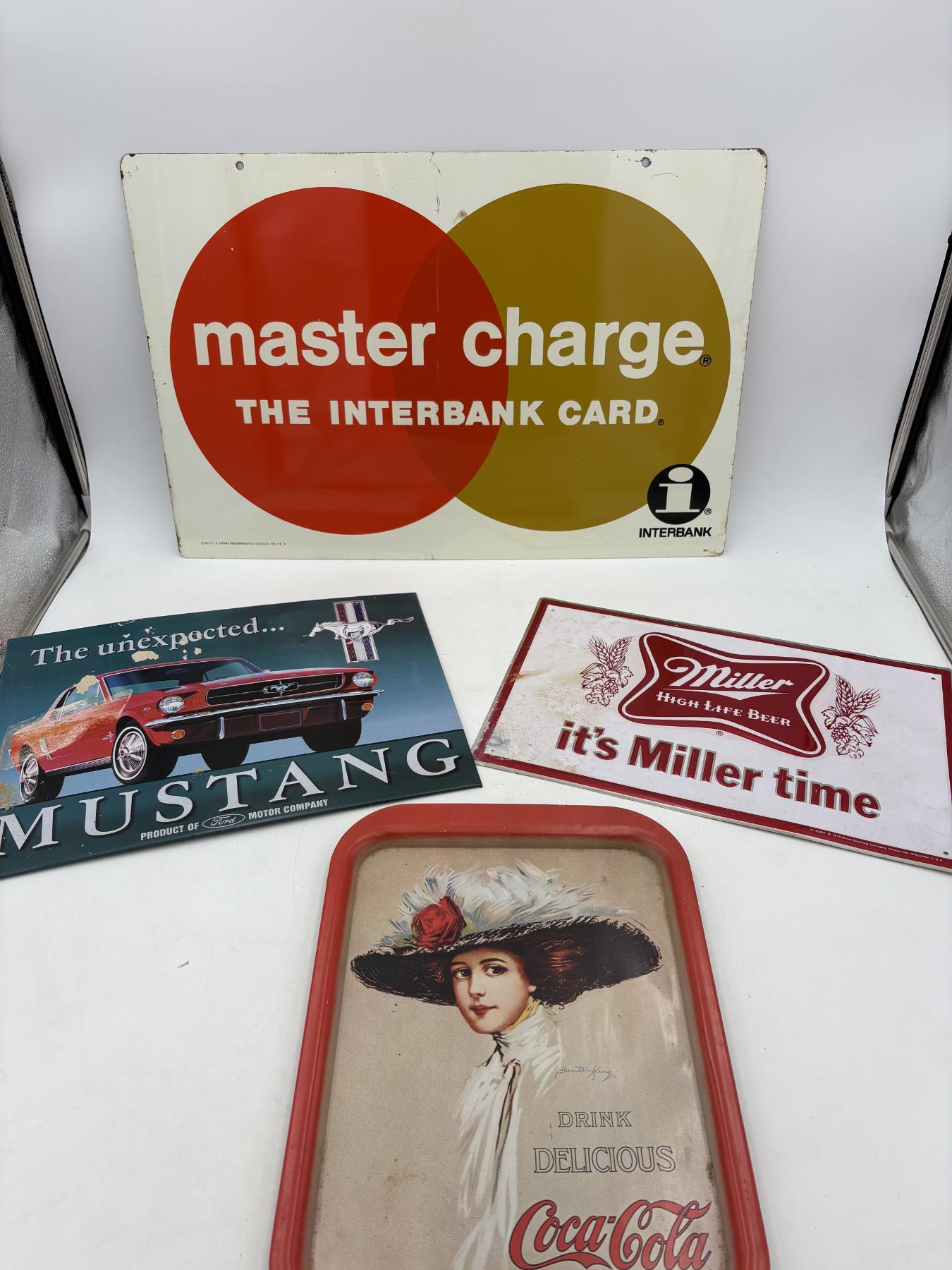 Mastercharge The Interbank Card Metal Sign - Mustang & It's Miller Time Metal Sign - Coca-Cola Tray