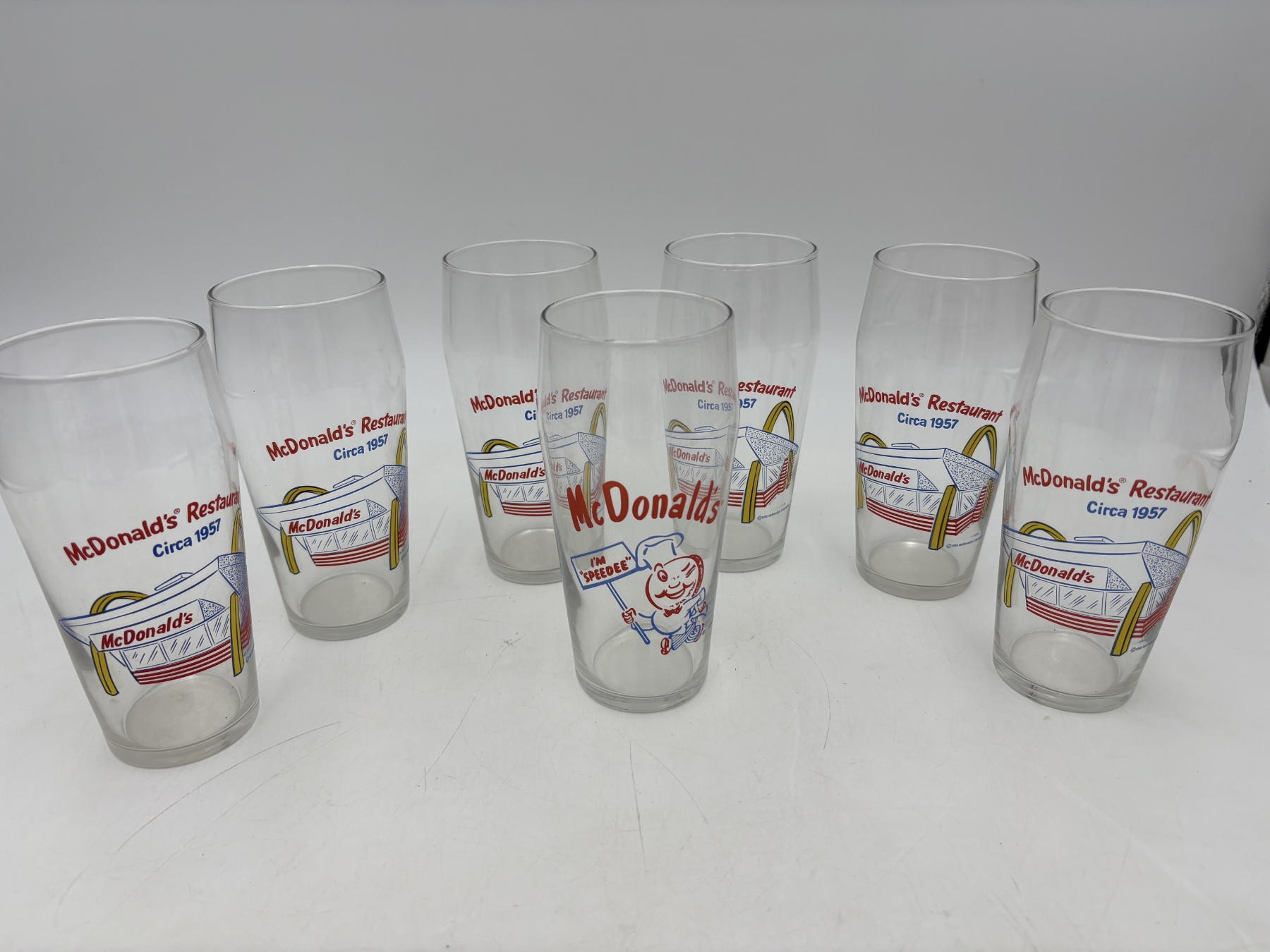 McDonald's Restaurant Circa 1957 Collectible Glasses - 7 Total - I'm Speedee Glass