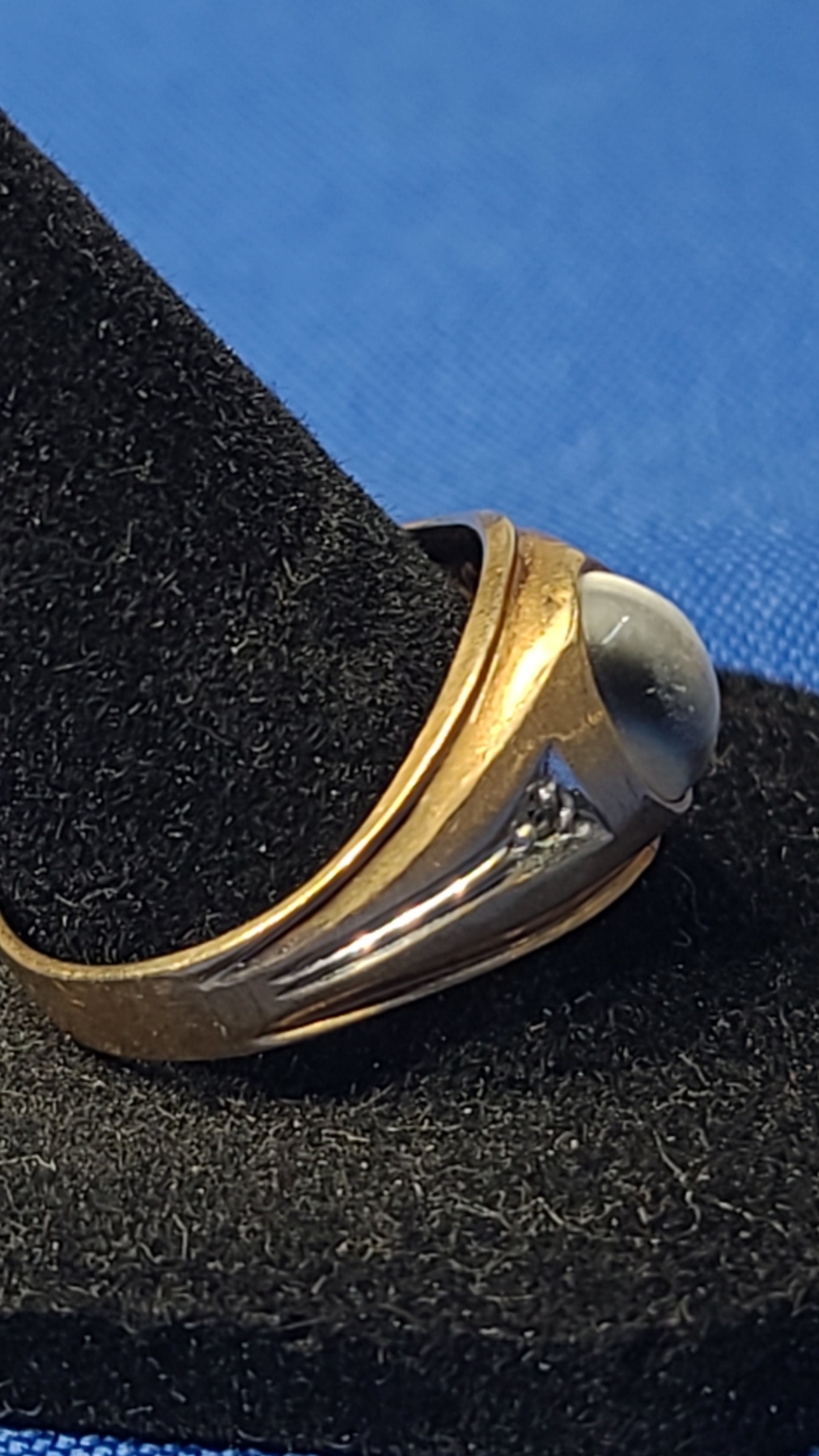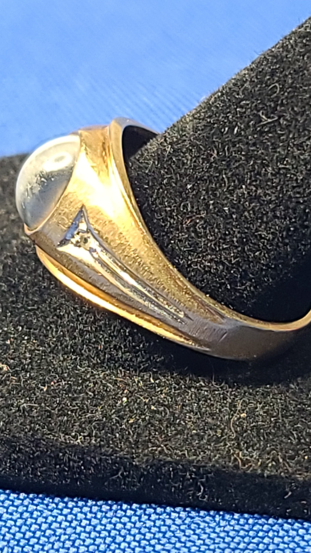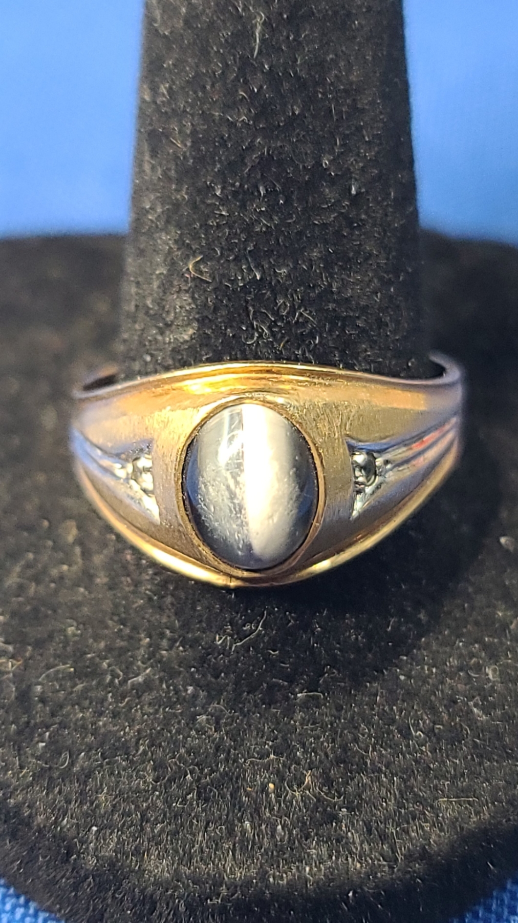 Men's 10K Gold Black Cats Eye Ring - Size: 10.5 - Weight: 4.1g