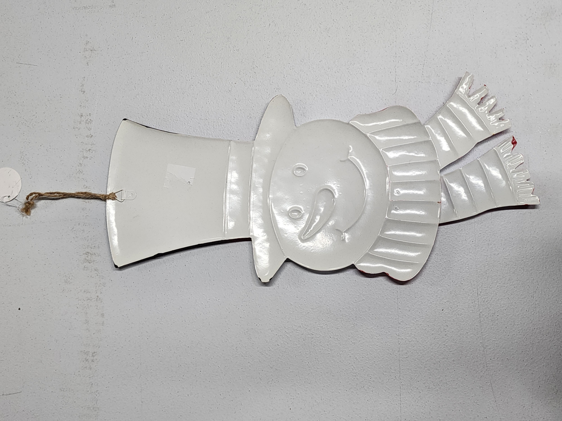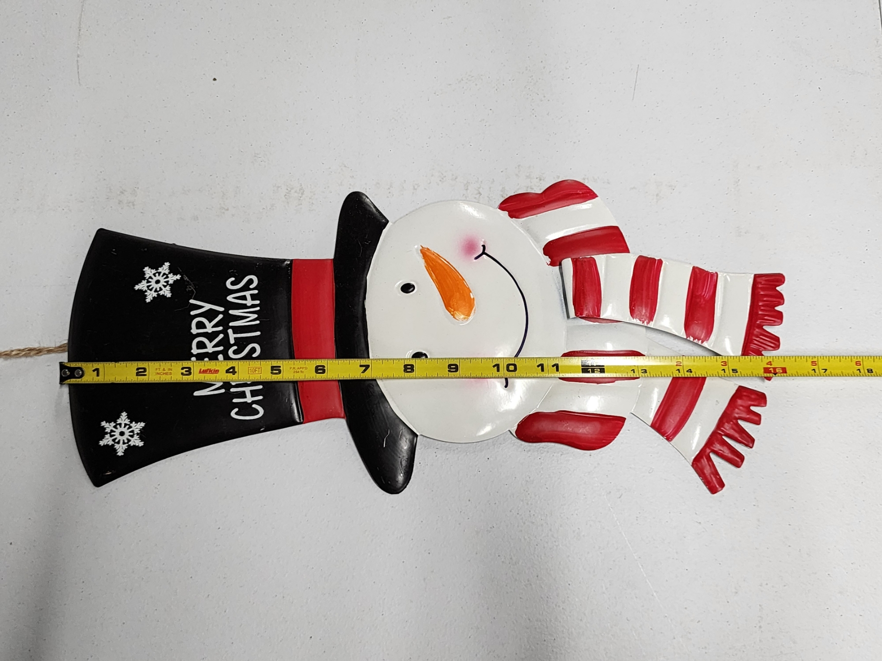 Merry Christmas Snowman Metal Hanging Sign - 19in Tall