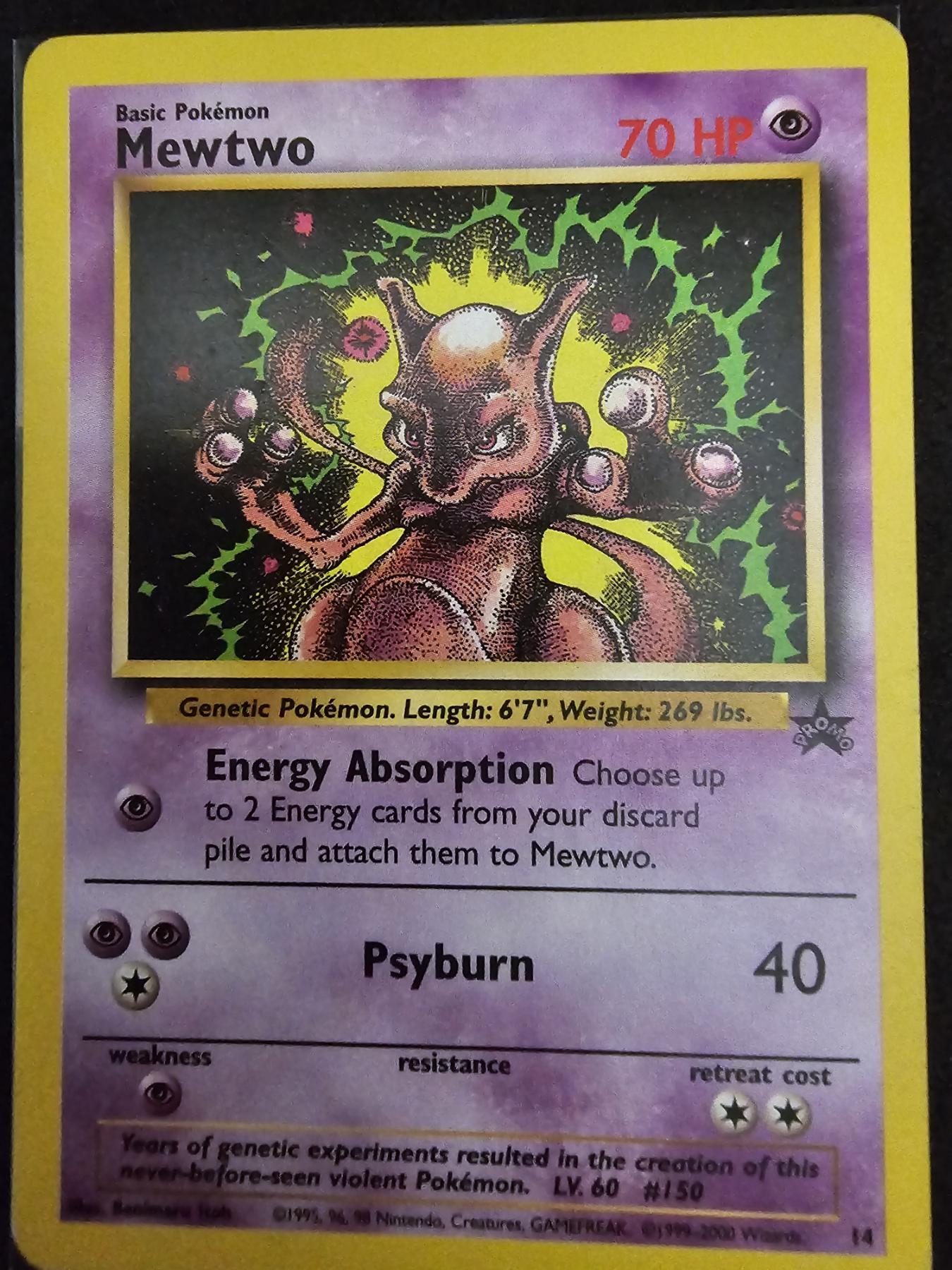 Mewtwo #14 Black Star Promo Vintage Rare Pokemon Trading Card - Comes with Protective Sleeve, GREAT CONDITION!!! PLACE YOUR BID AND CATCH 'EM ALL TODAY!!!