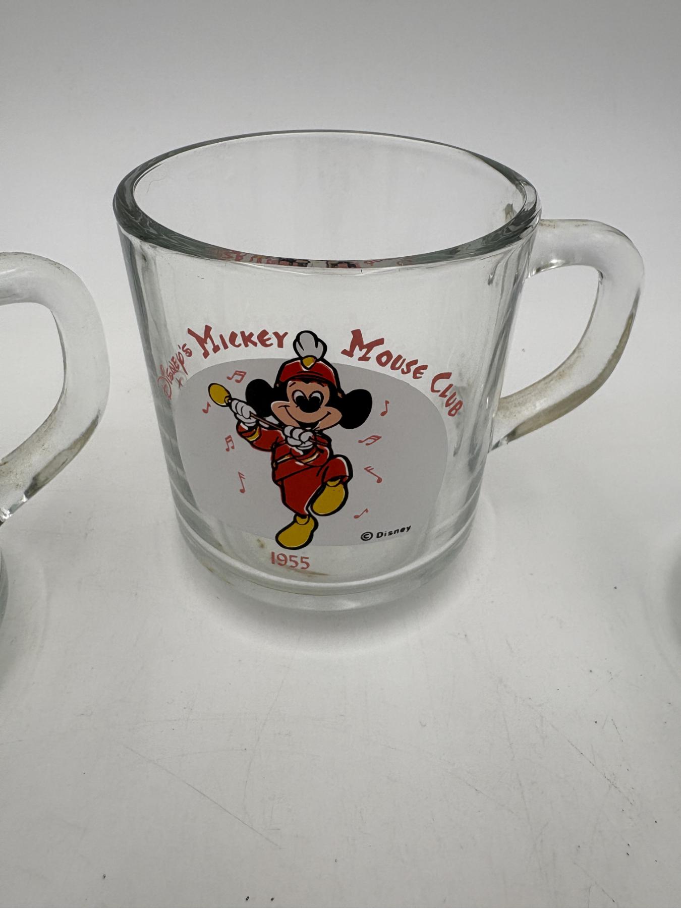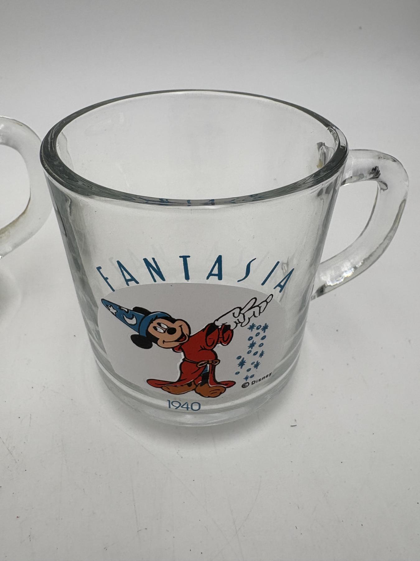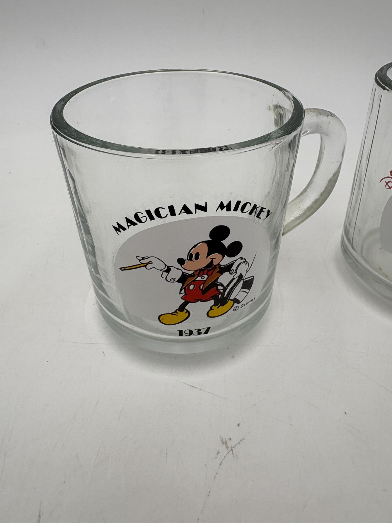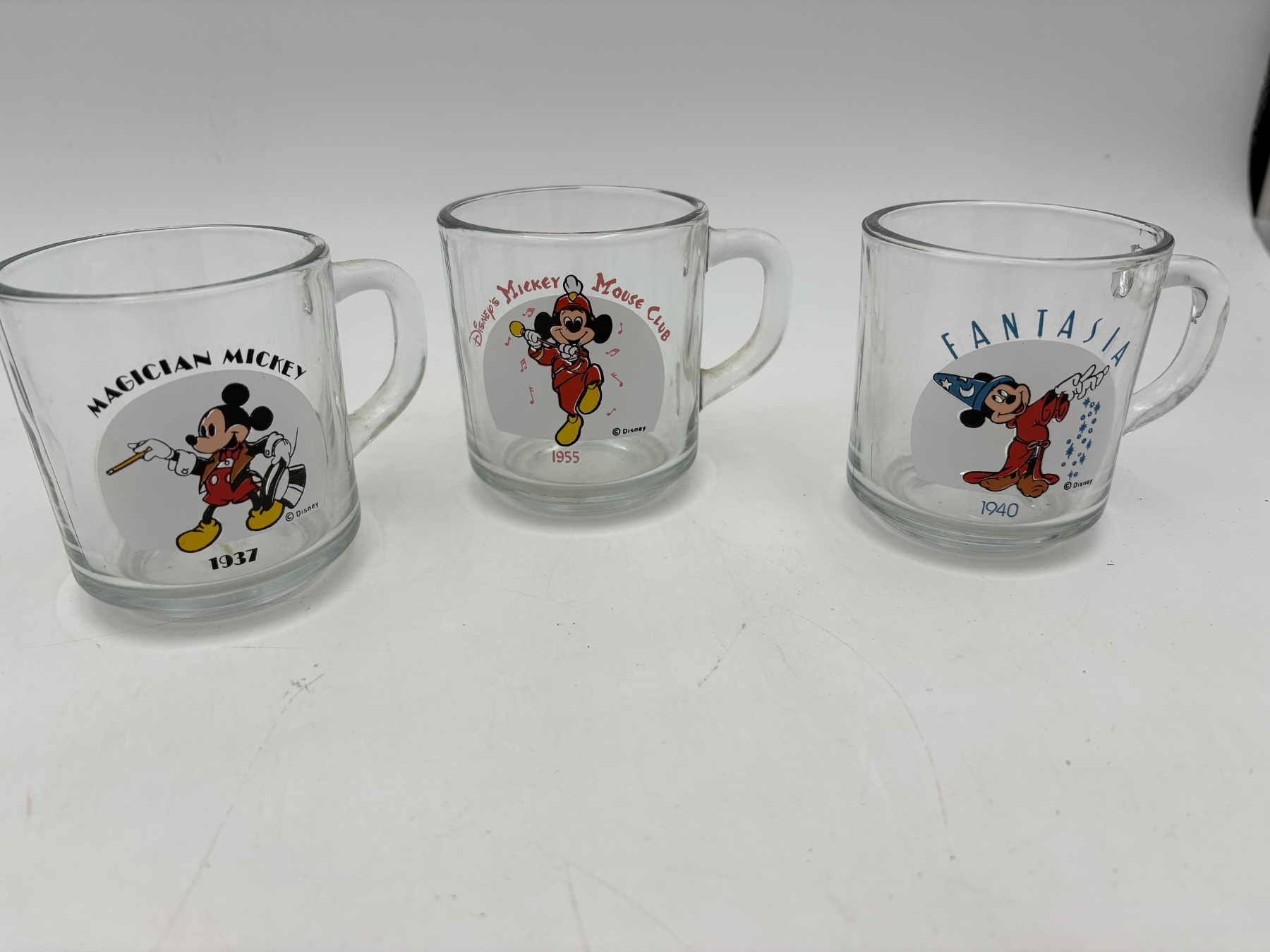 Mickey Mouse Glass Mugs - Fantasia 1940 - Mickey Mouse Club 1955 - Magician Mickey 1937