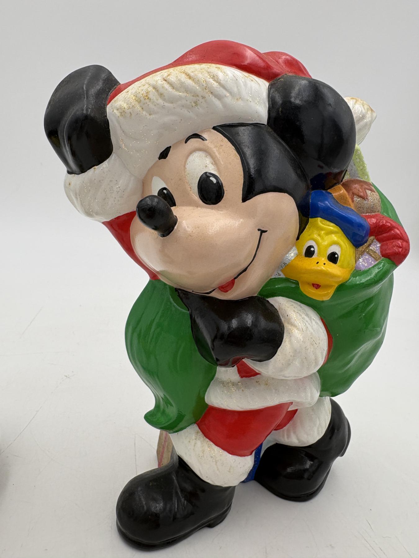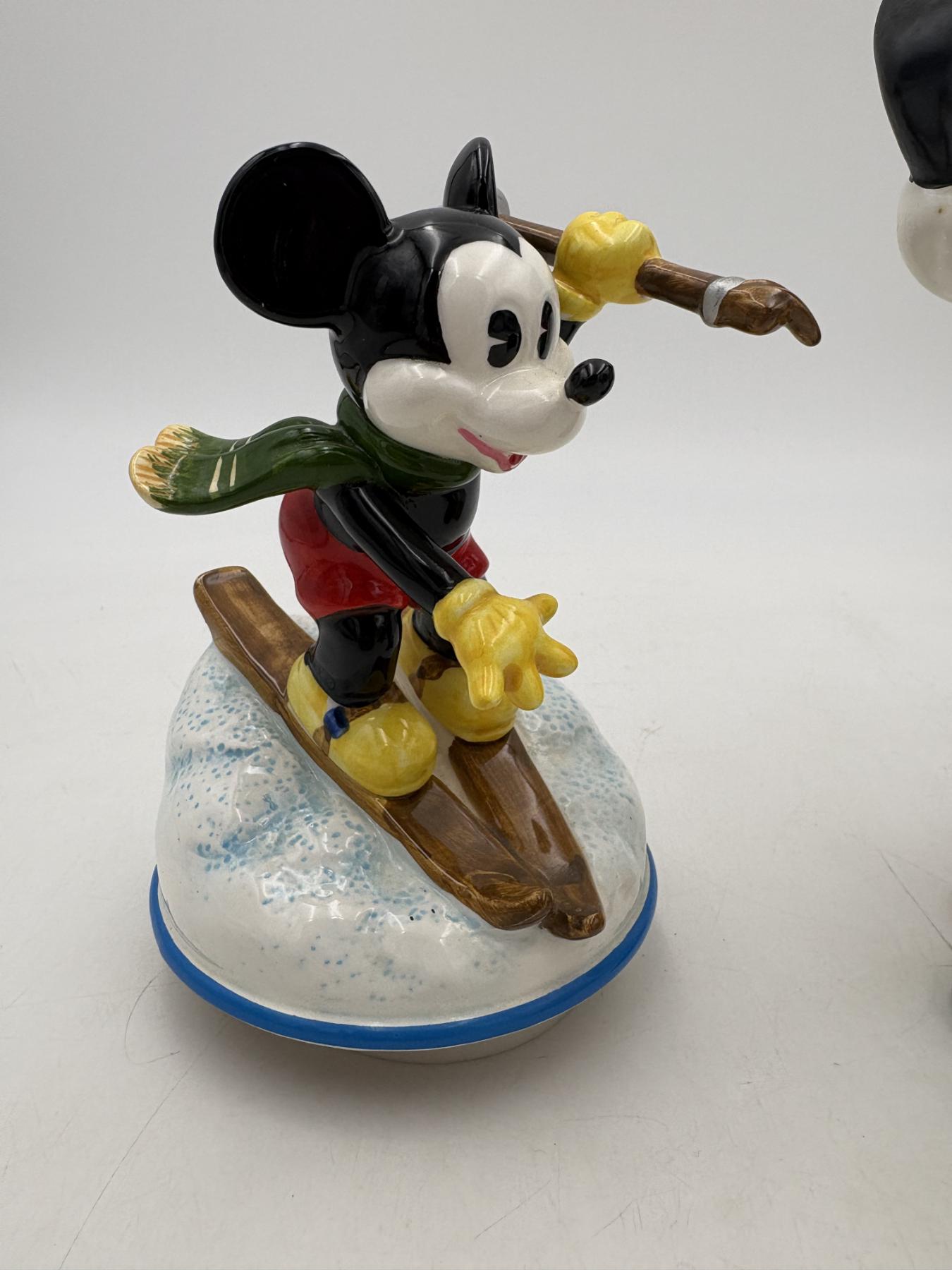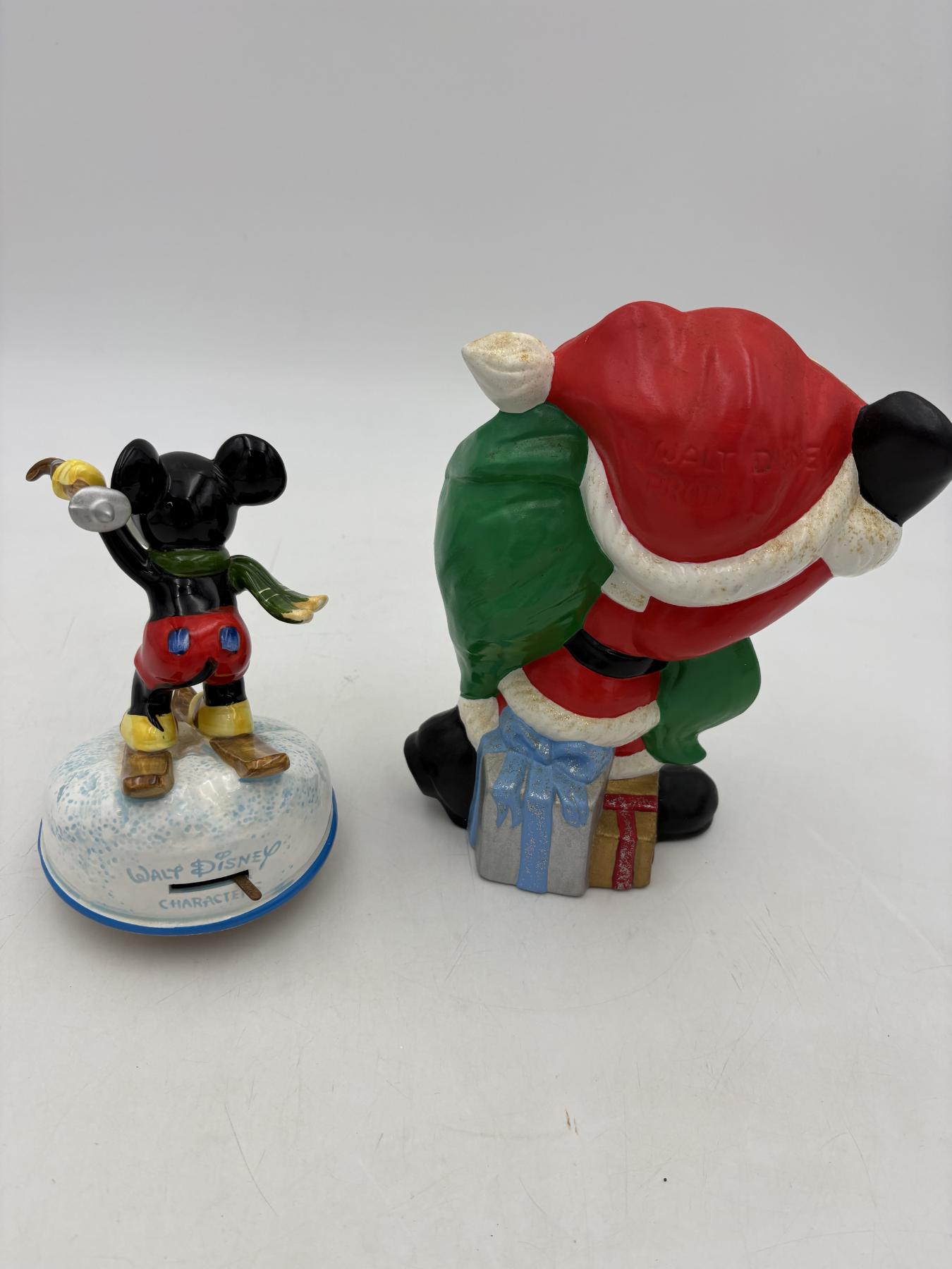 Mickey Mouse Santa with Bag of Toys with Donald Duck in it - Mickey Mouse Skiing Musical Box - Does work! - Santa = 9 inches - Skiing = 6.5 inches