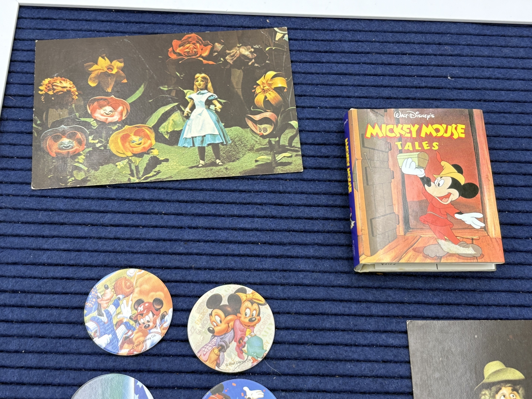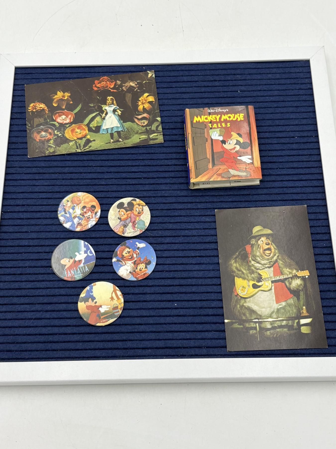 Mickey Mouse Tales Book - 2 Postcards - 1 Alice in Wonderland - Country Bear Jamboree - 4 Disney Pogs - Mickey & Minnie - Goofy - Etc.
