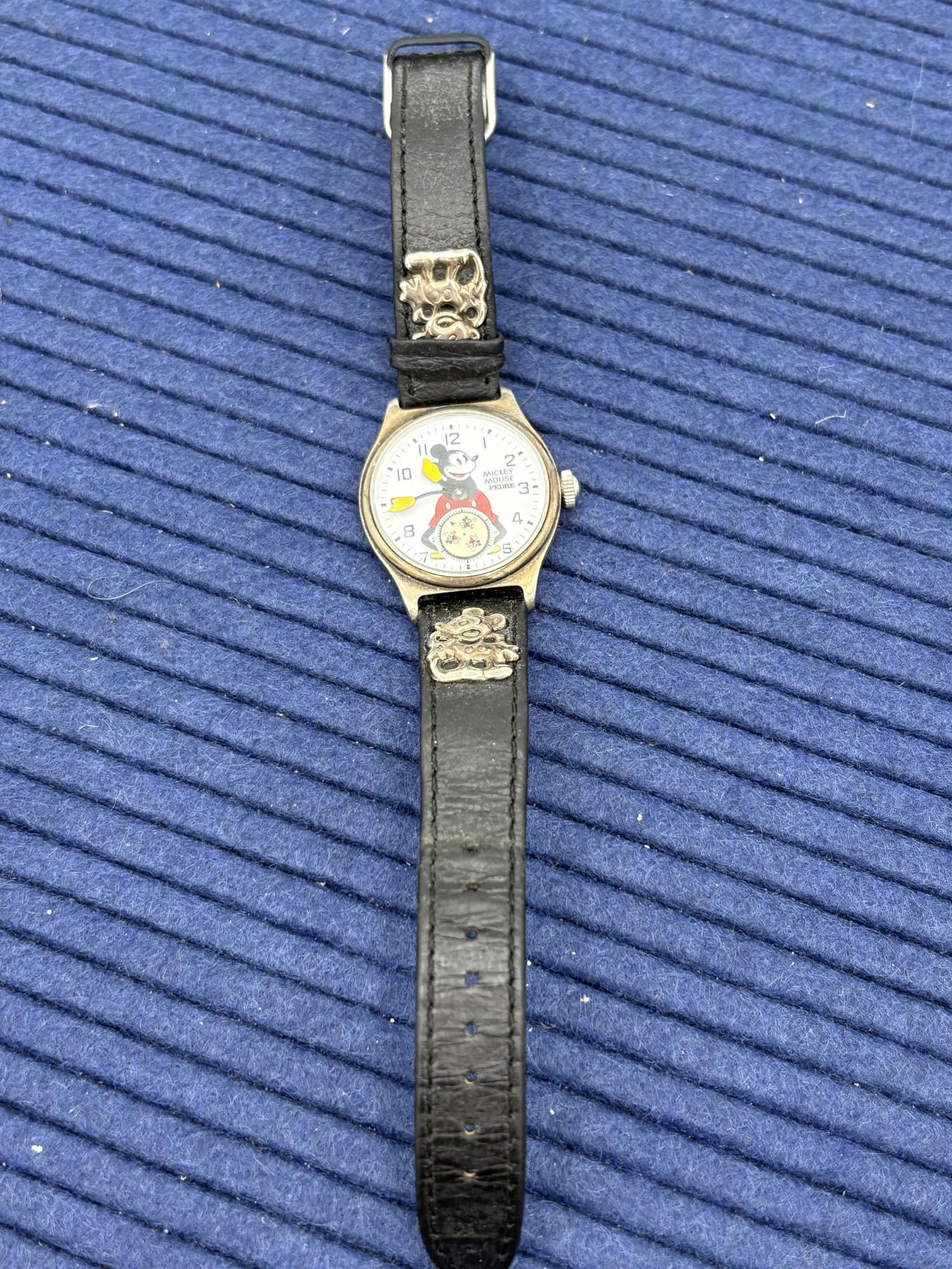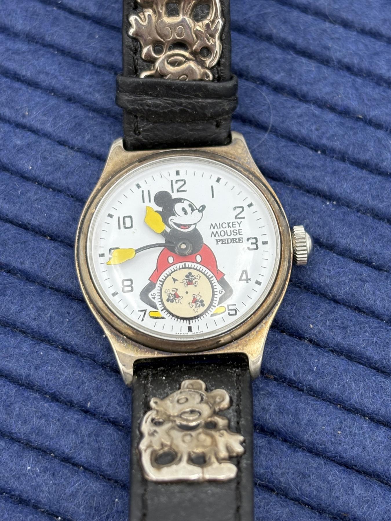 Mickey Mouse Watch by Pedre - Arms with time - Etched with Mickey in the bands - The Disney Store - Genuine Pigskin