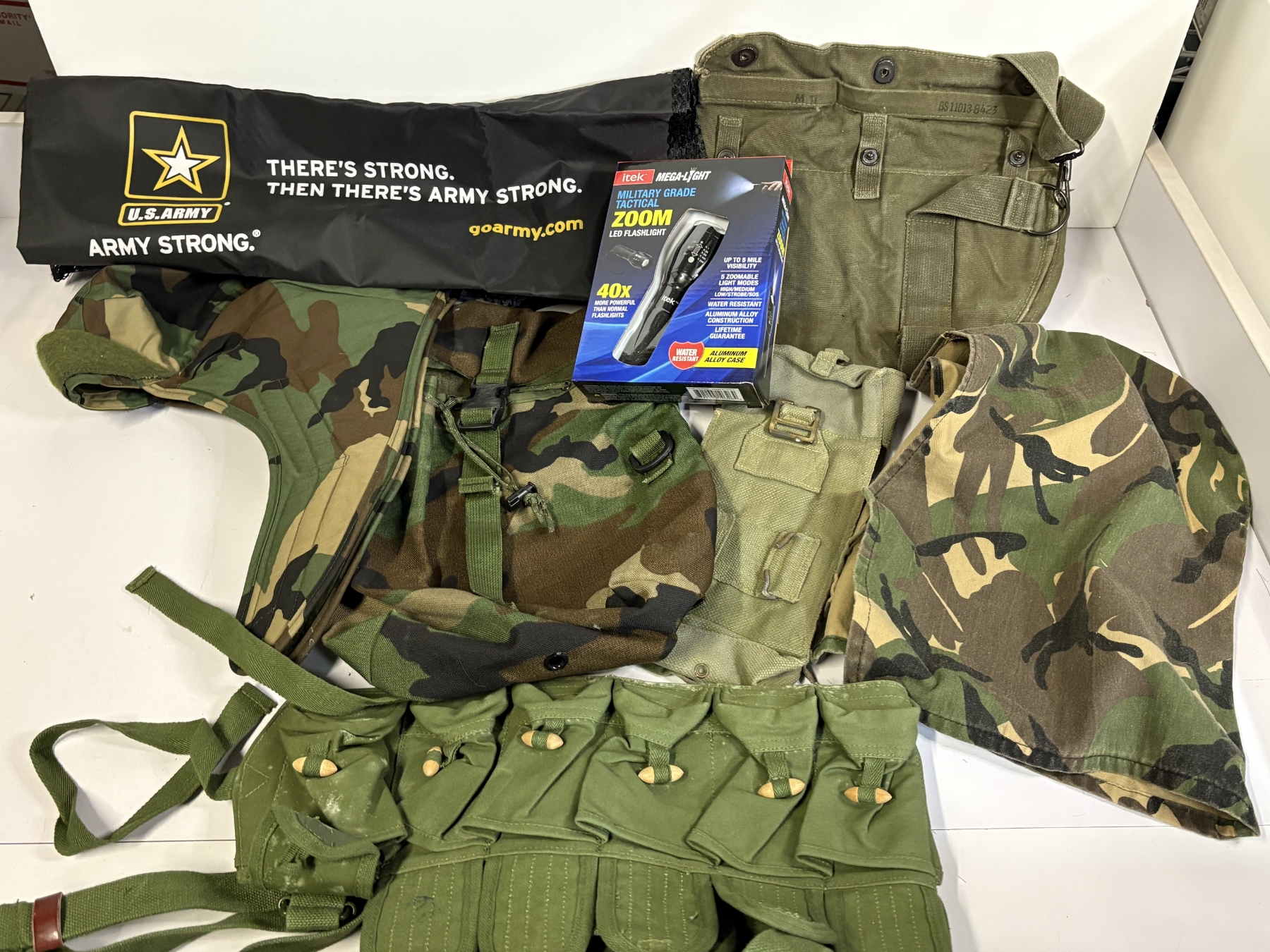 Military Gear - Army Strong - Military Grade LED Flashlight - Field Protective Mask - Storage - Hats