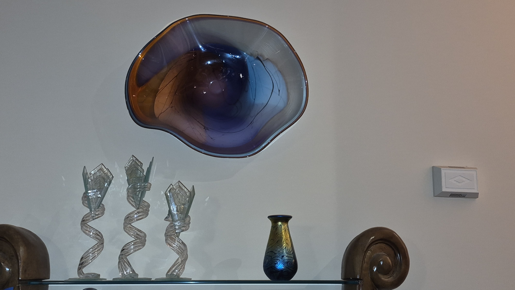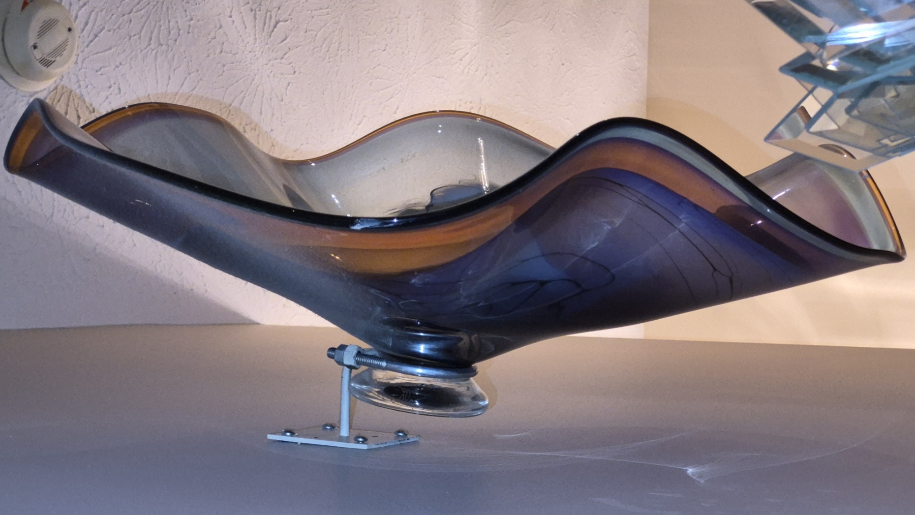 Modern Large 27 x 22 Free Form Blown Glass Bowl - Mounted In Special Wall Holder Included - We will Remove for pickup