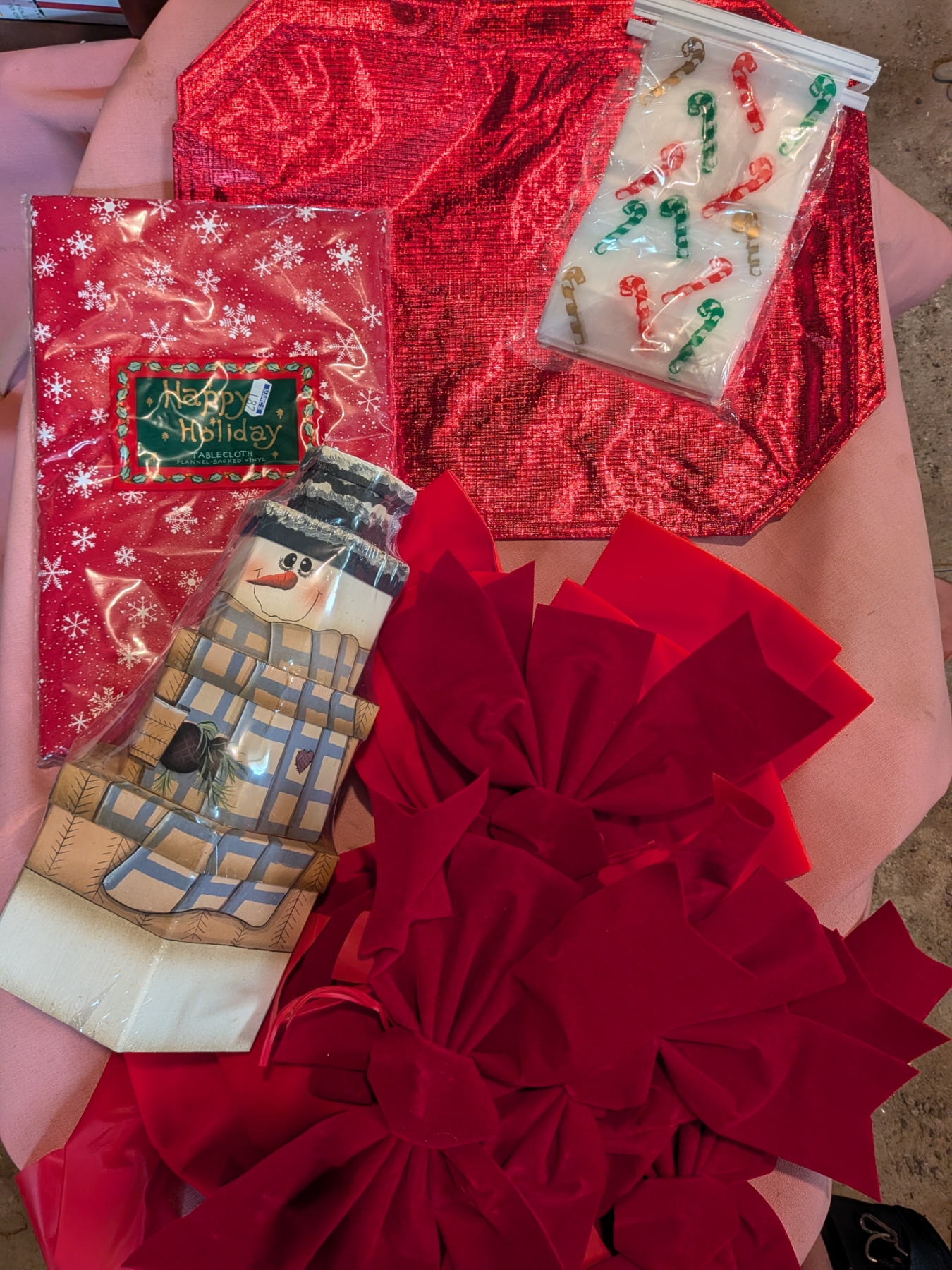 Mostly New Holiday Items, Including 4 Packs Of Garland, 14" Tree, Velvet Ribbons, Placemats, Ornamen