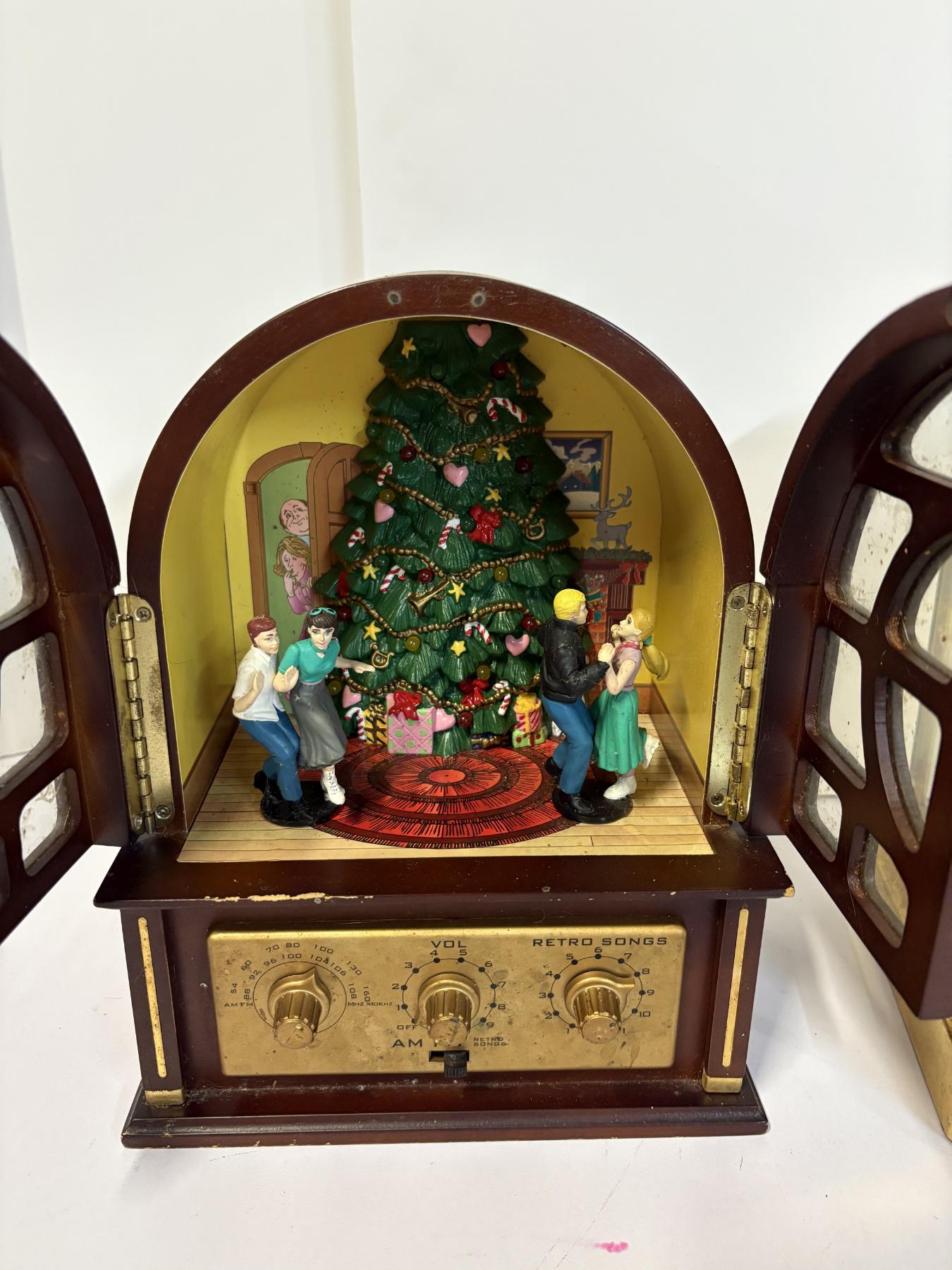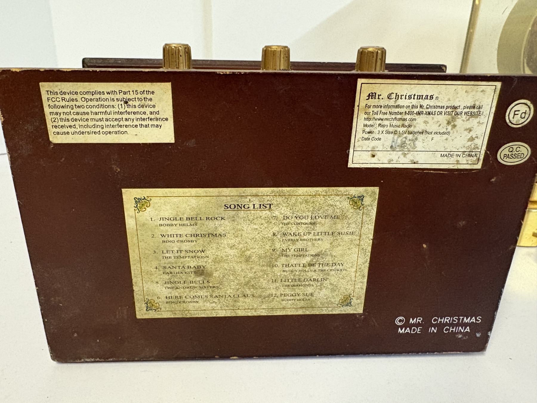 Mr. Christmas Animated Retro Music Radio - 1950s jukebox design with animated dancing couples visible behind the glass panels