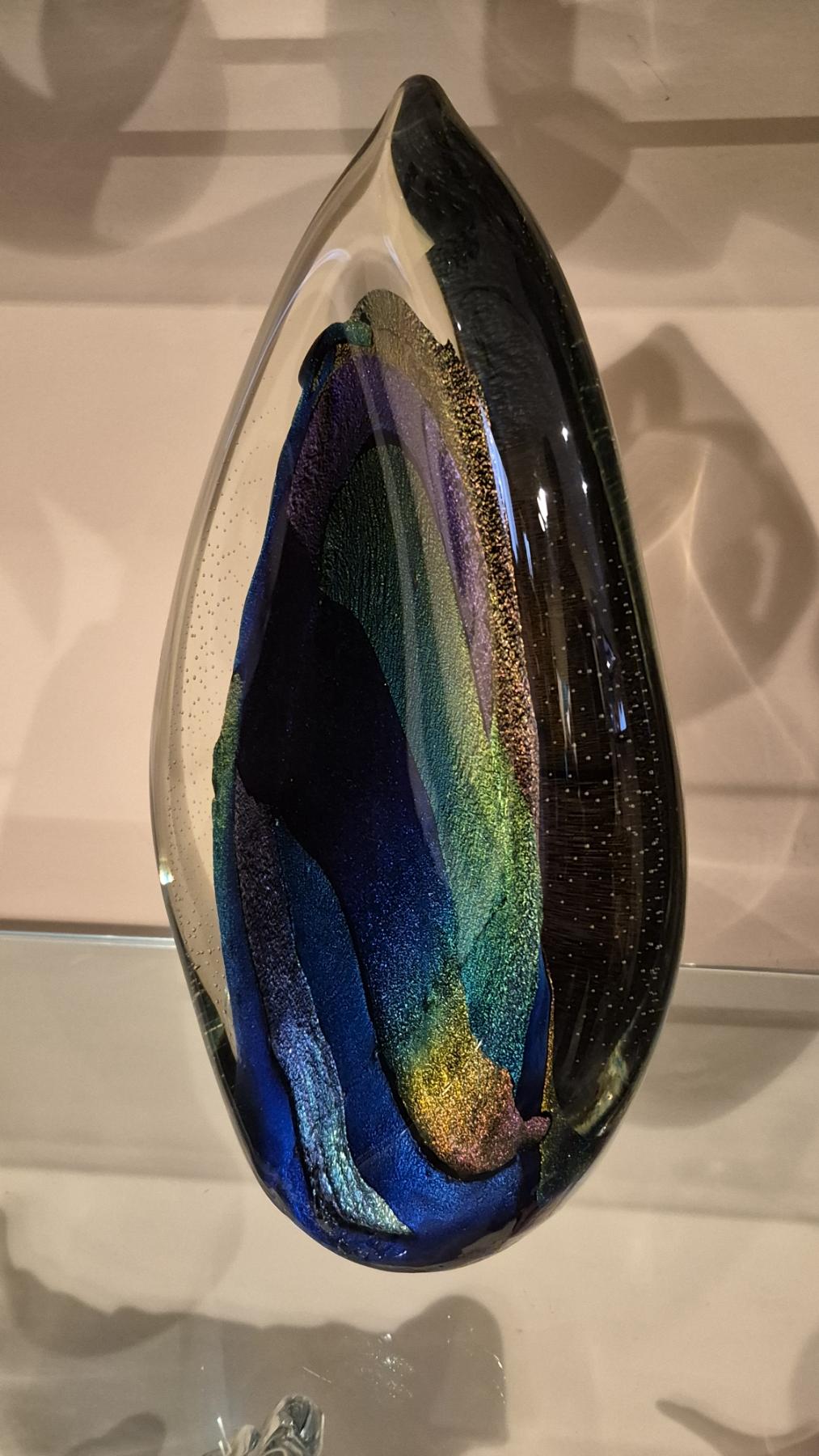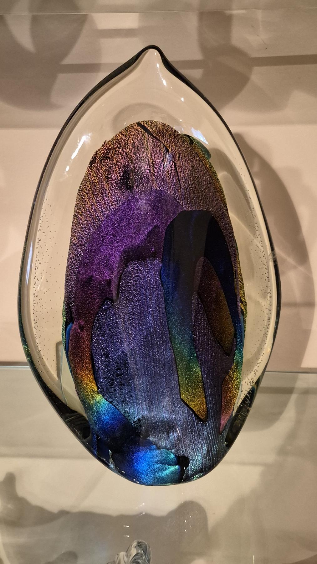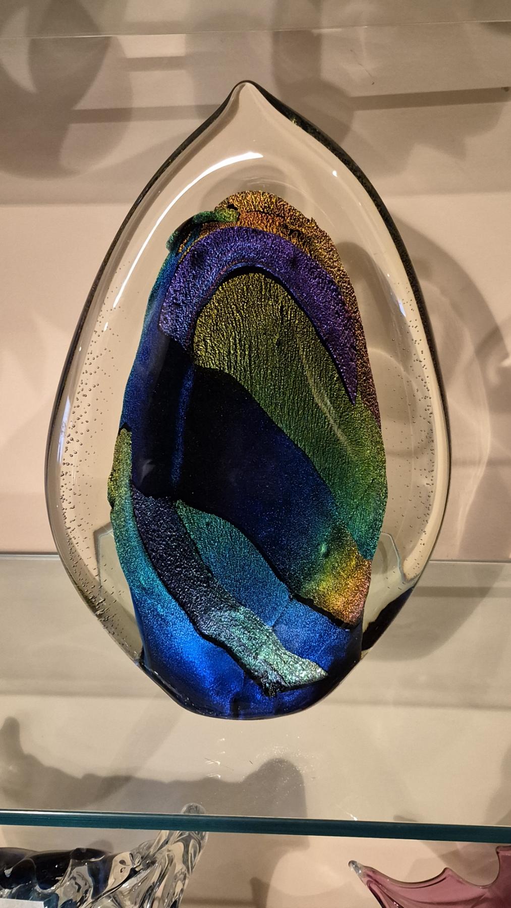 Multi Color & Crystal Art Glass Sculpture 13 1/2" bt 9" As Shown - Excellent
