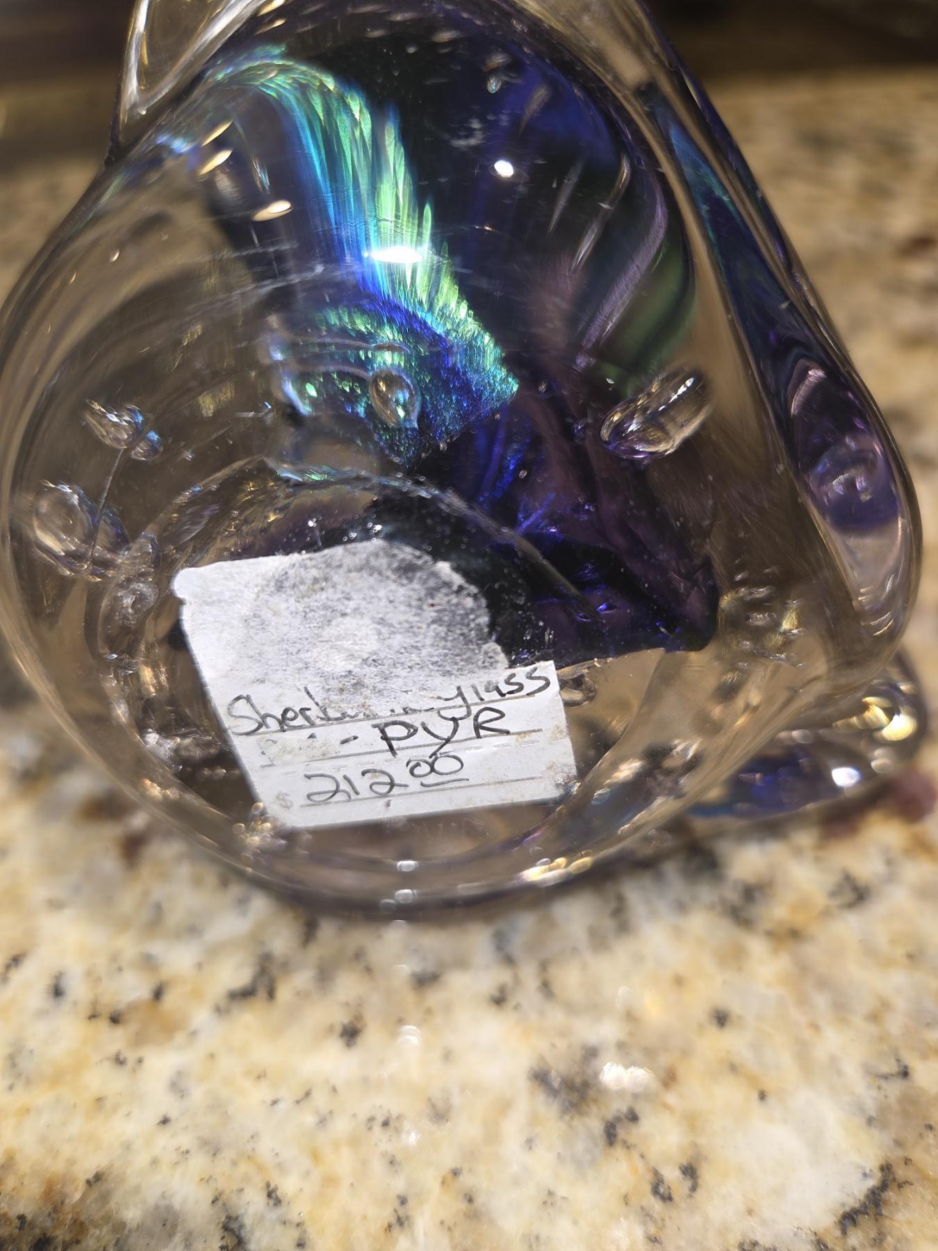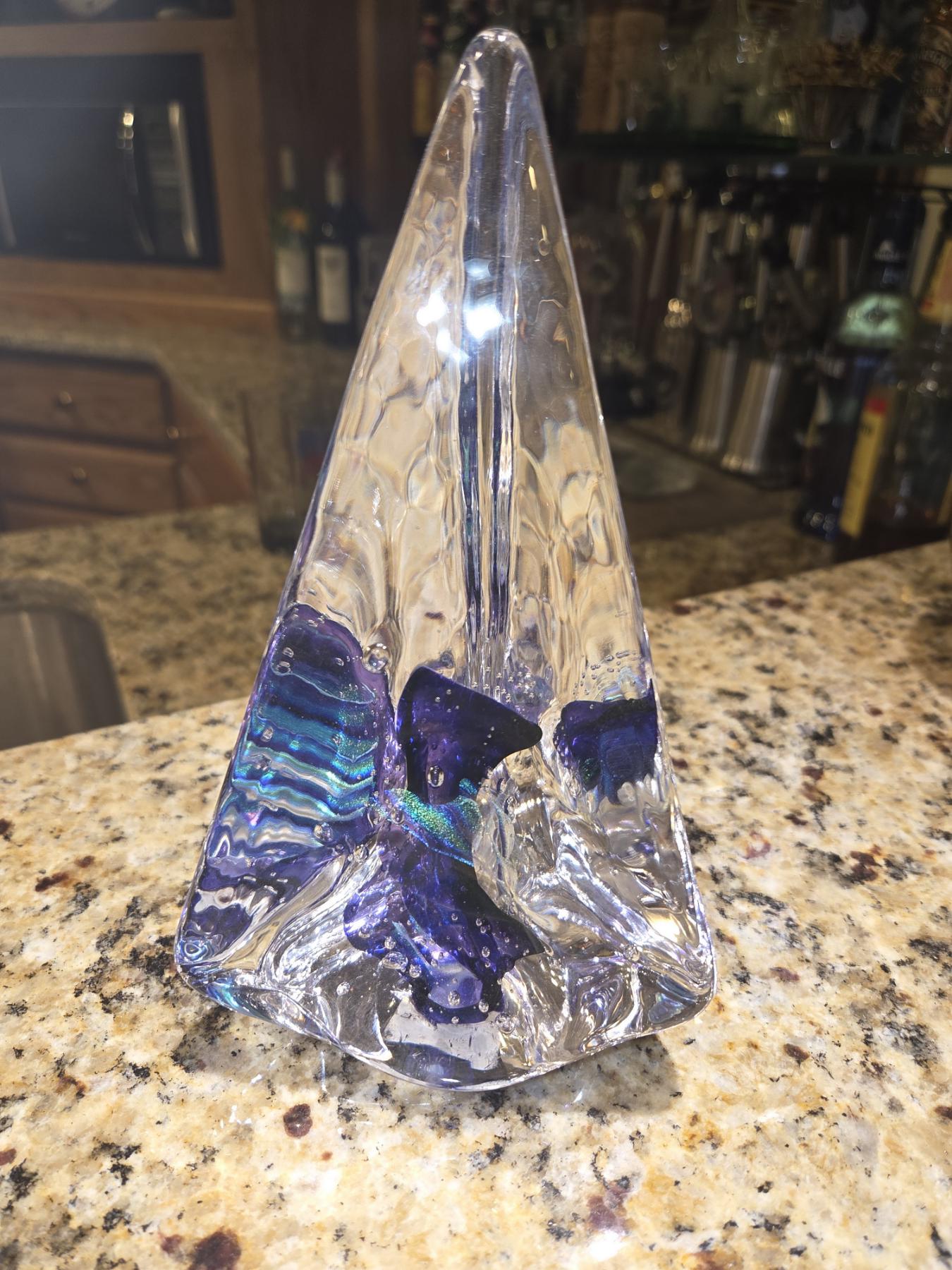 Murano Glass Pyramid With Cobalt Blue & Turquoise Coloring Swirled Throughout