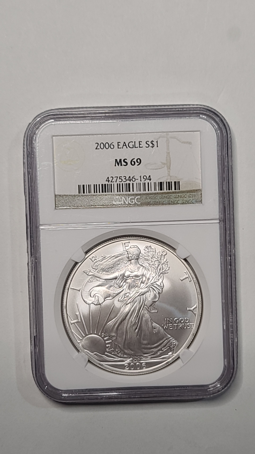 NGC 2006 MS 69 1 Troy Ounce .999 Fine Silver American Eagle Dollar