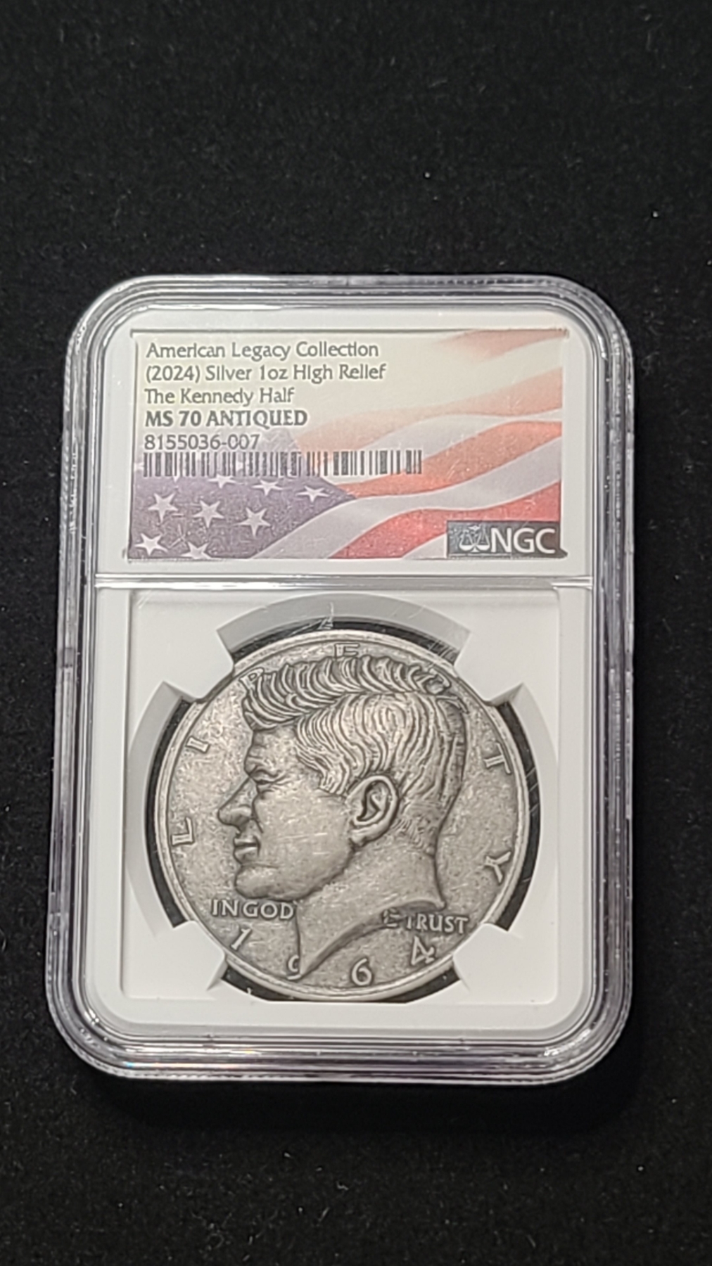 NGC American Legacy Collection 2024 Silver 1 oz High Relief Kennedy Half MS 70 Antiqued Coin