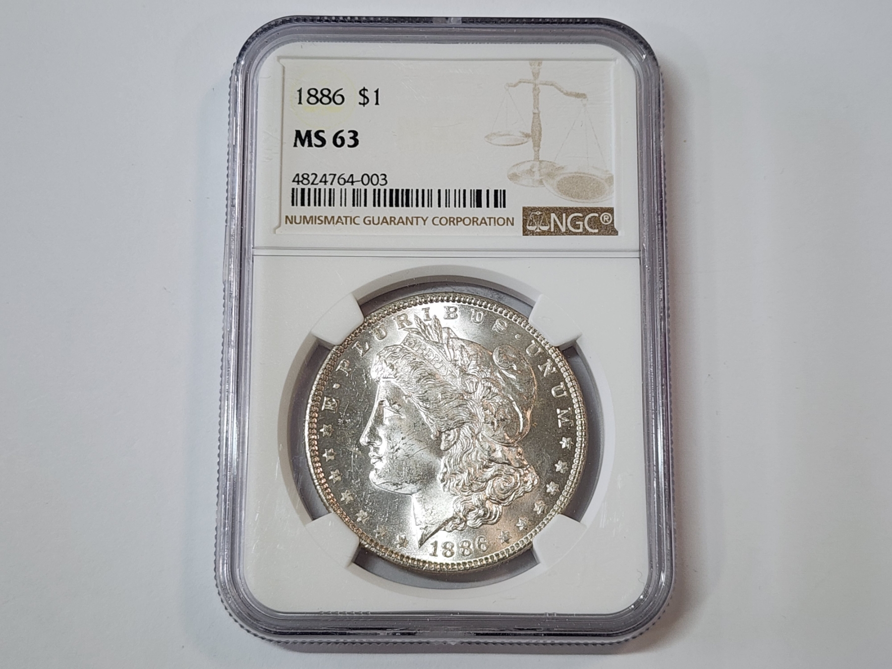 NGC MS 63 1886 90% Silver Morgan Dollar