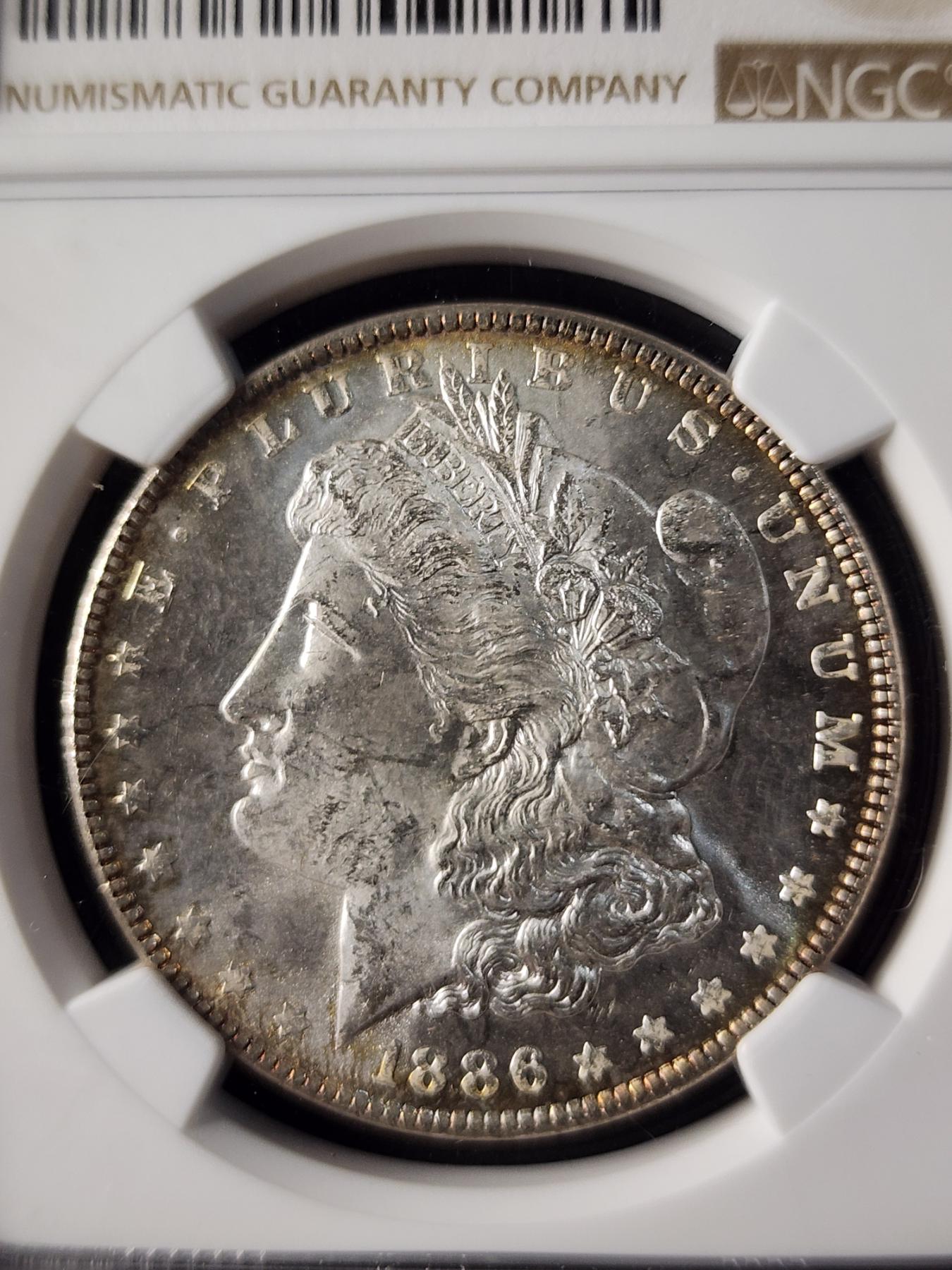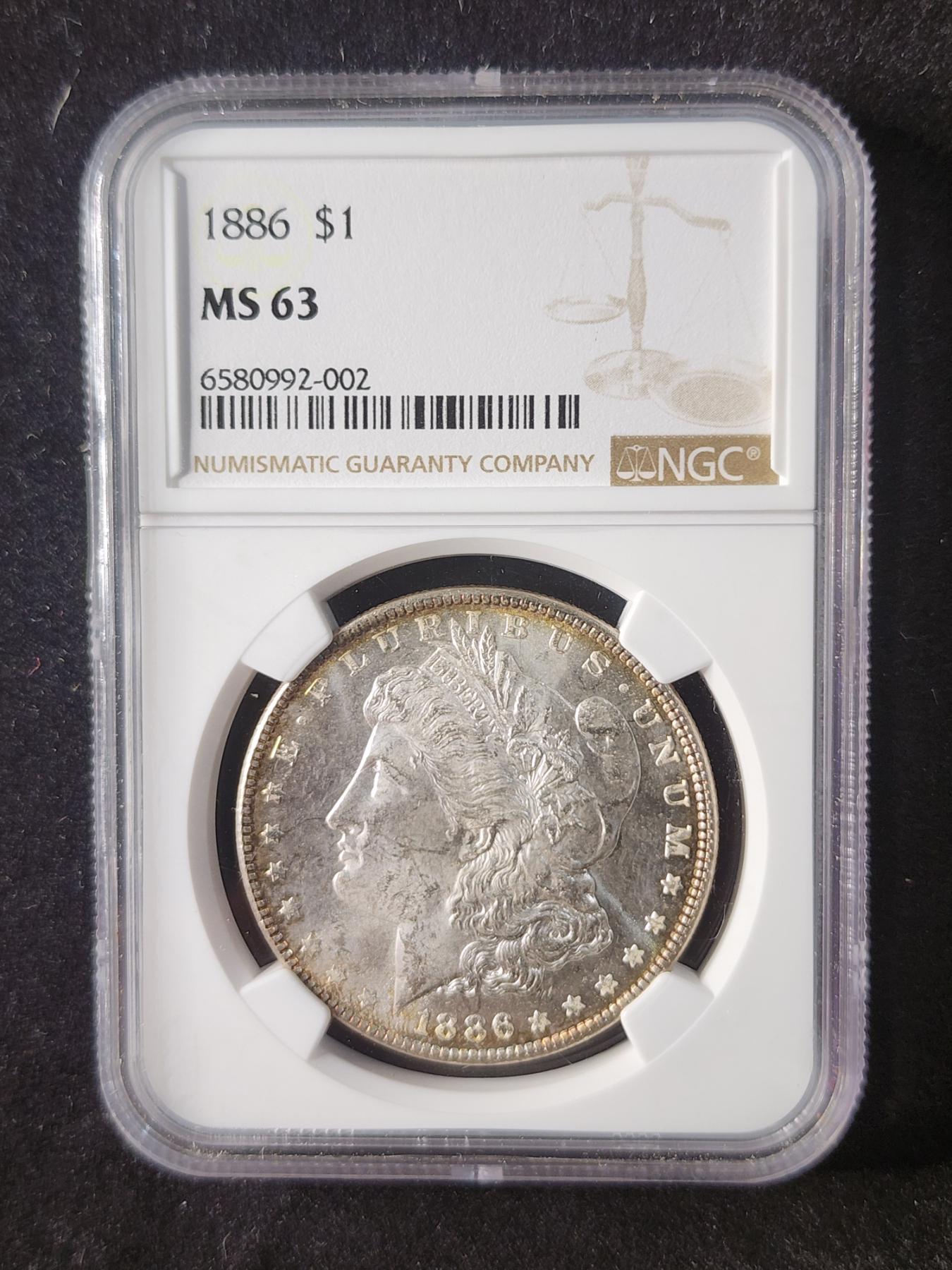 NGC MS63 1886 Morgan Silver Dollar - Nice Toning on Rim!