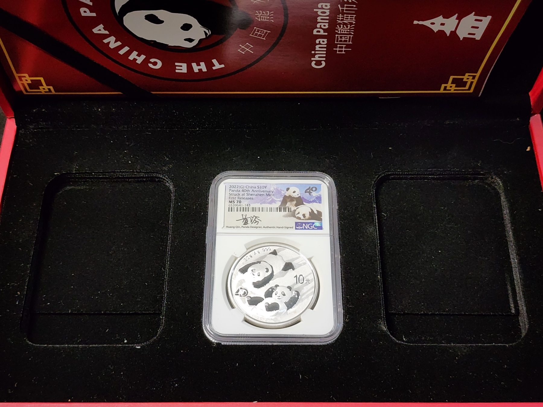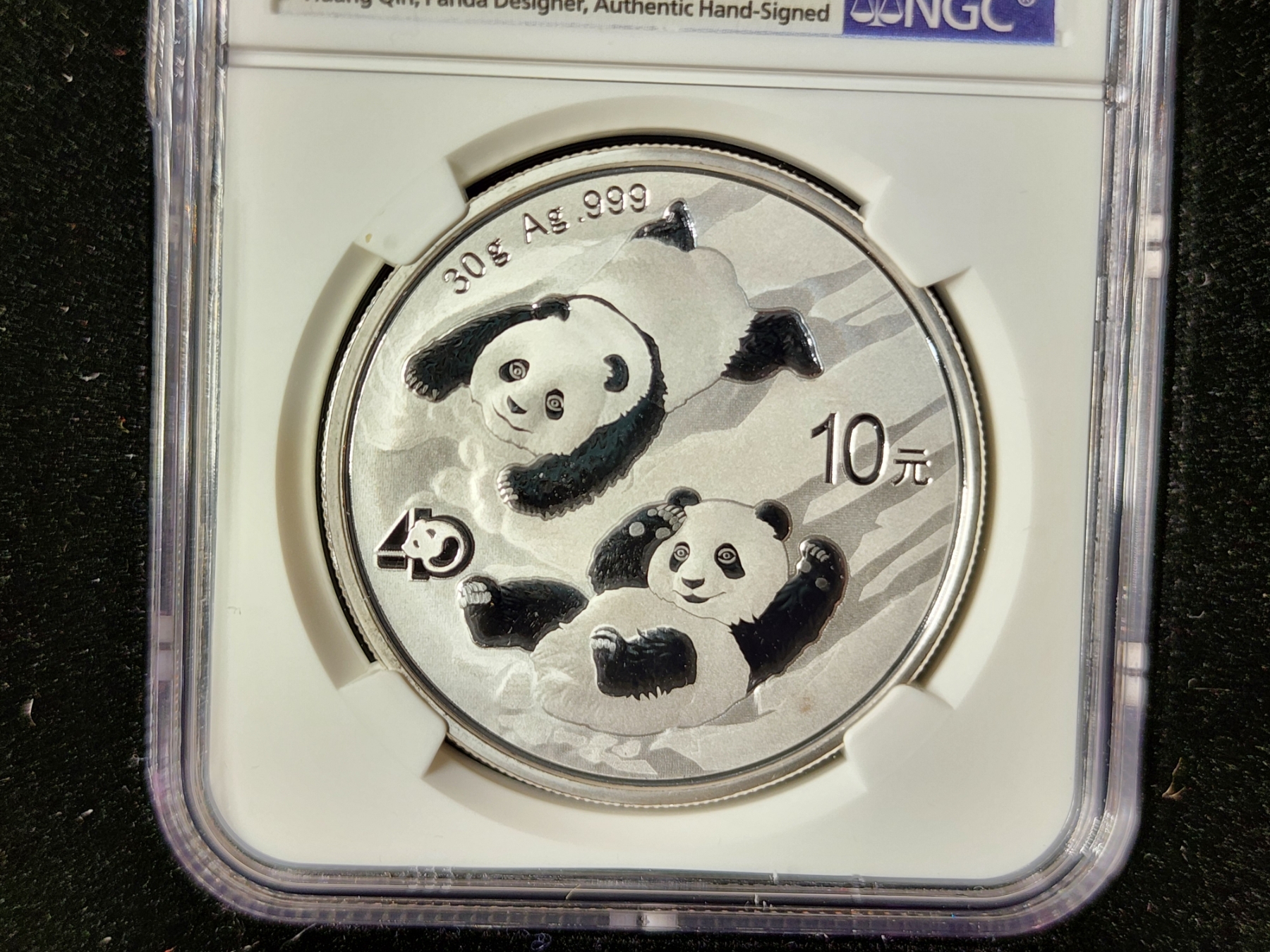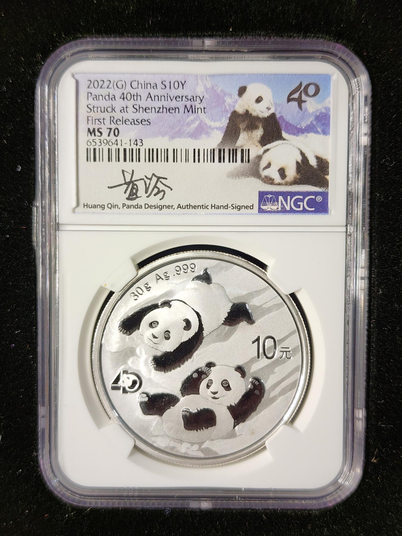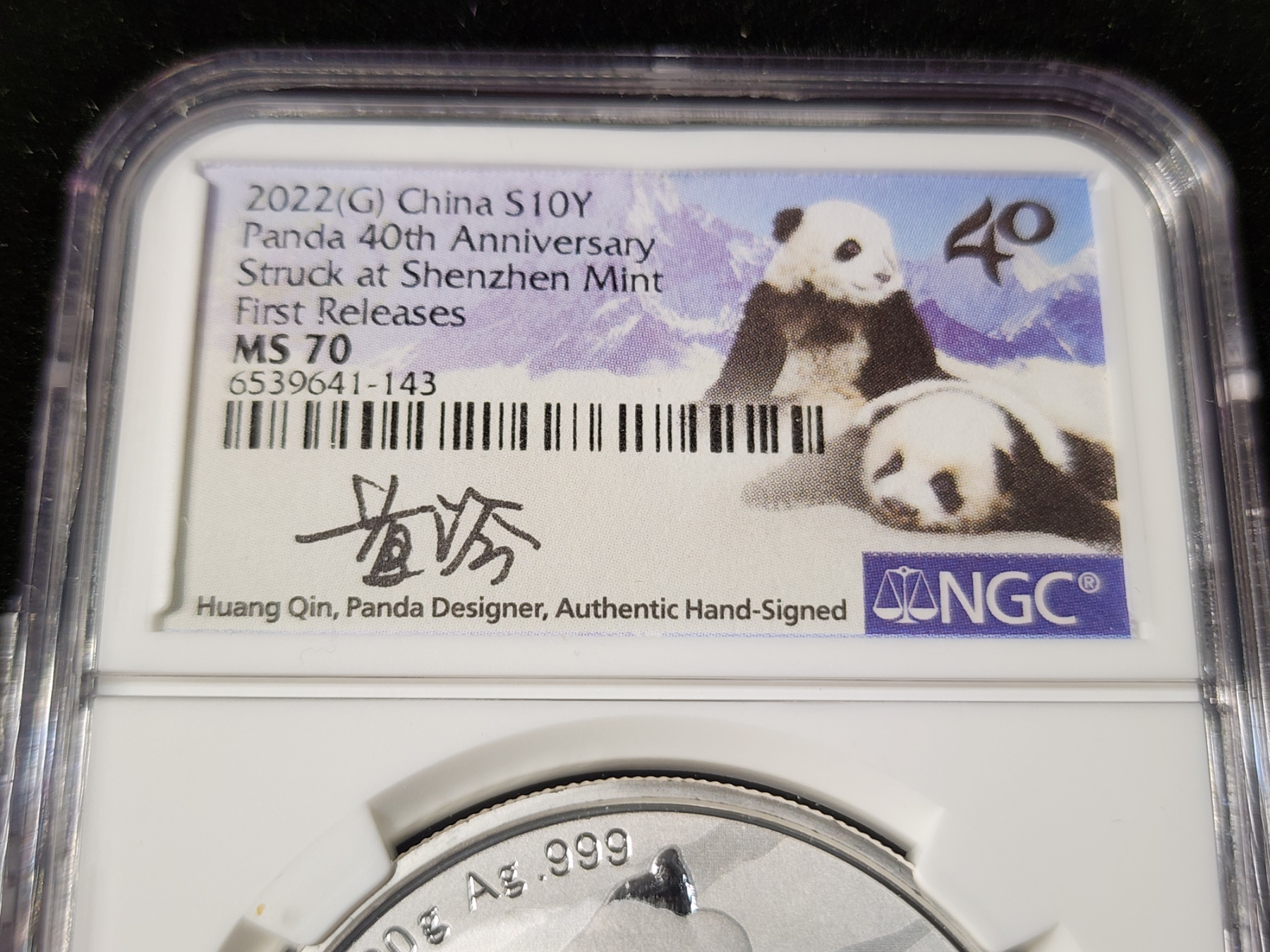 NGC MS70 2022-G China 30 Gram Silver Panda 40th Anniversary - Struck at Shenzhen Mint! First Releases with Authentic Designer Hand Signed Autograph! Comes With Display Box!