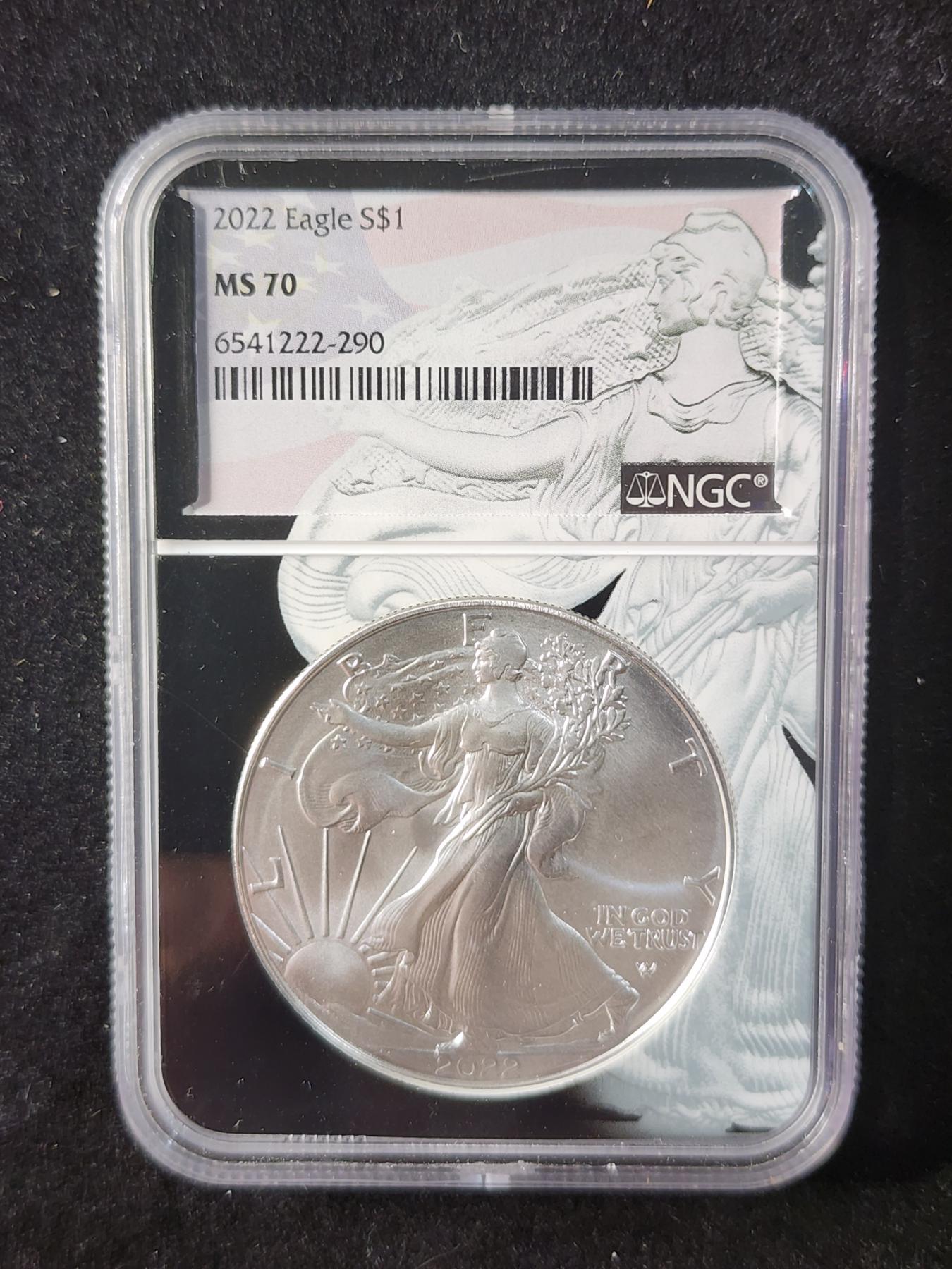 NGC MS70 2022 Silver 1 Oz American Eagle in Unique Slab Holder